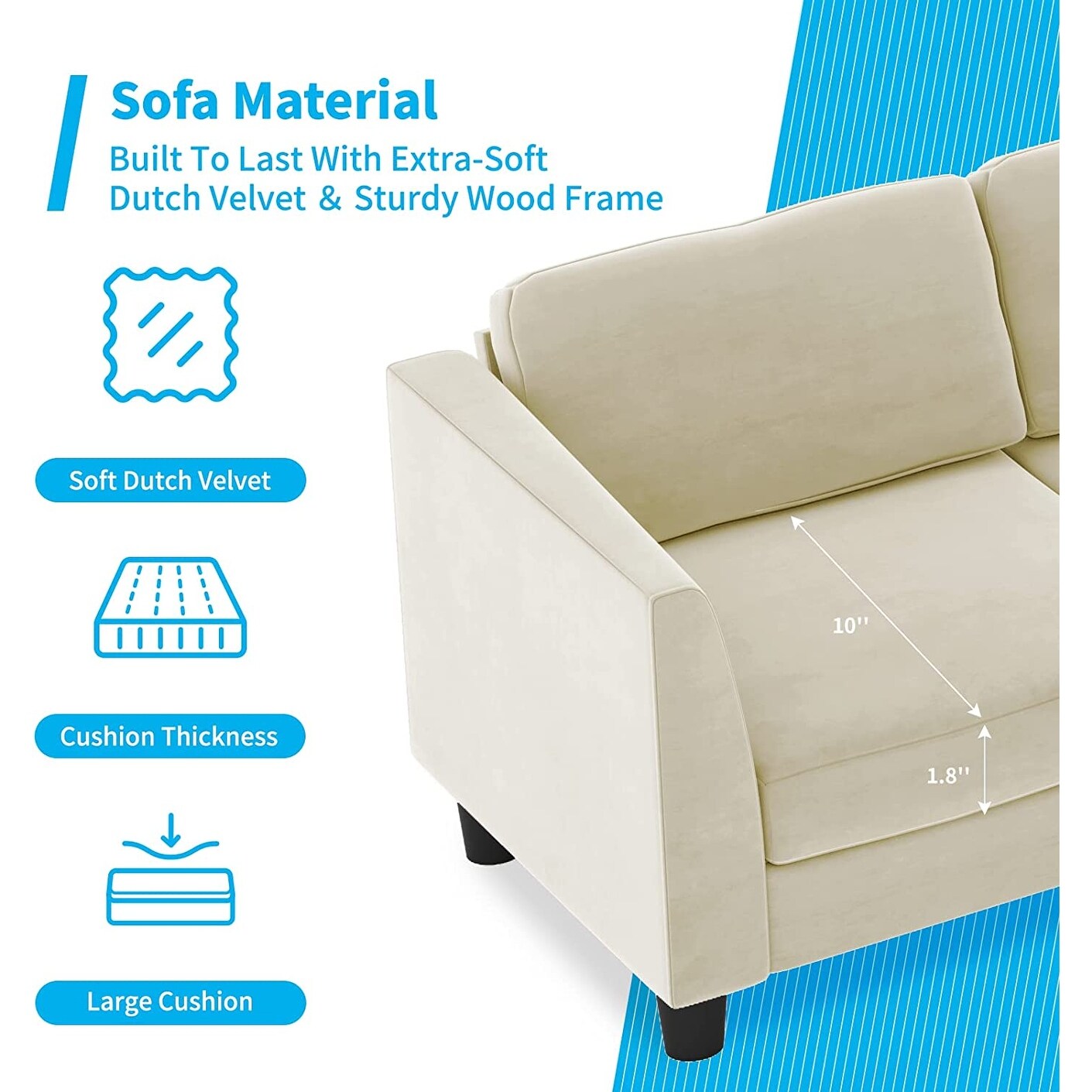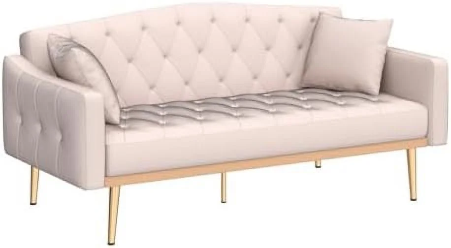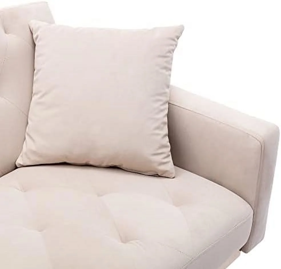 CoSoTower Modern Velvet Sofa Couch Bed With Armrests And 2 Pillows For Living Room And Bedroom, White