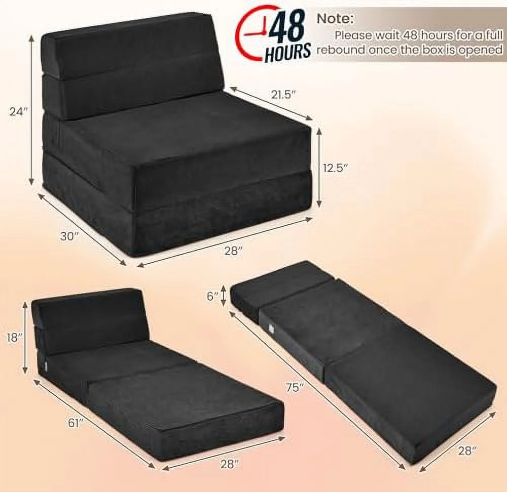 Ucloveria Ottoman Sleeper Chair Bed, Soft Tufted Velvet Folding Sofa Bed, Convertible Couch Recliner