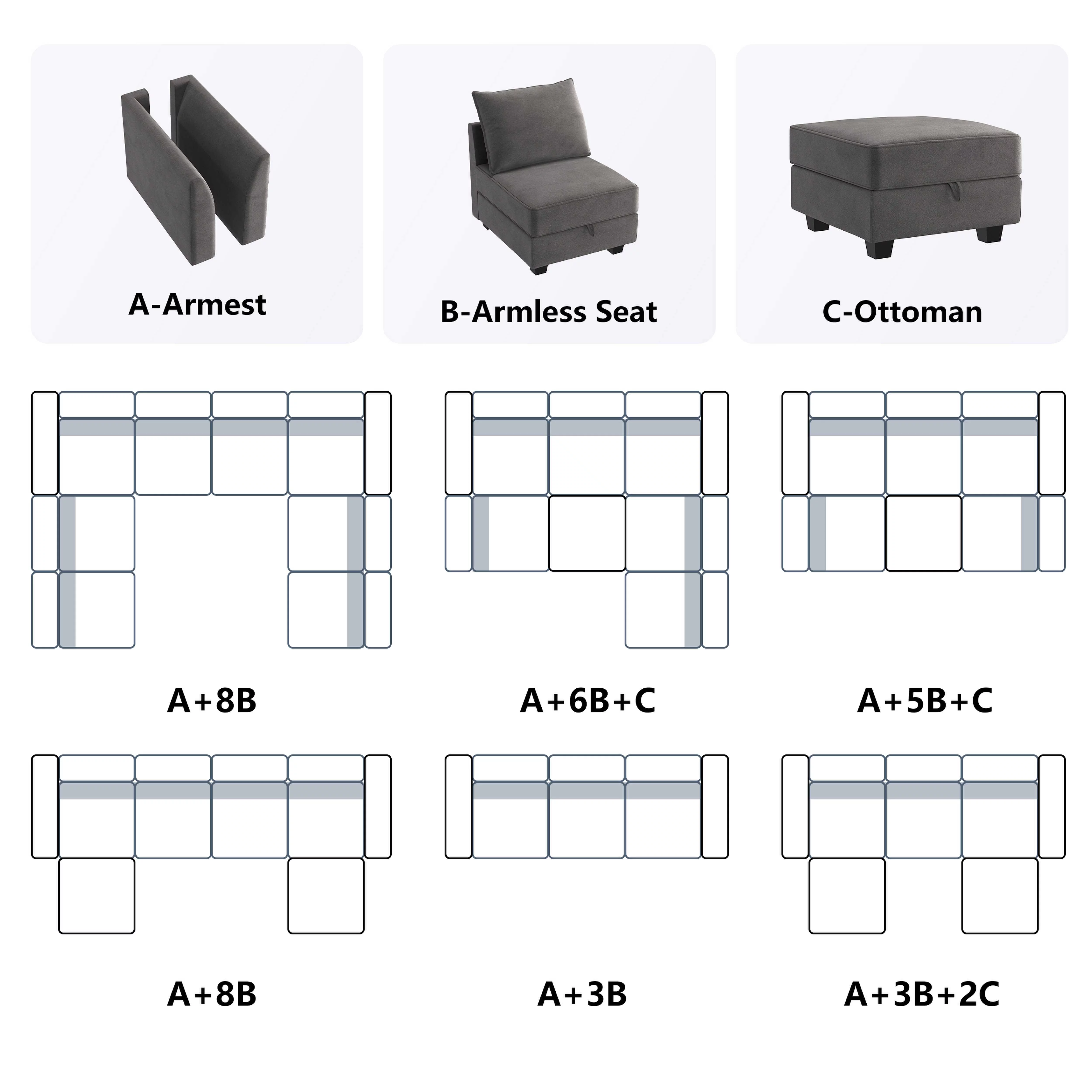 HONBAY Velvet Side Armrest Module for Modular Sectional Sofa Couch Pair of Armrests, Dull Grey