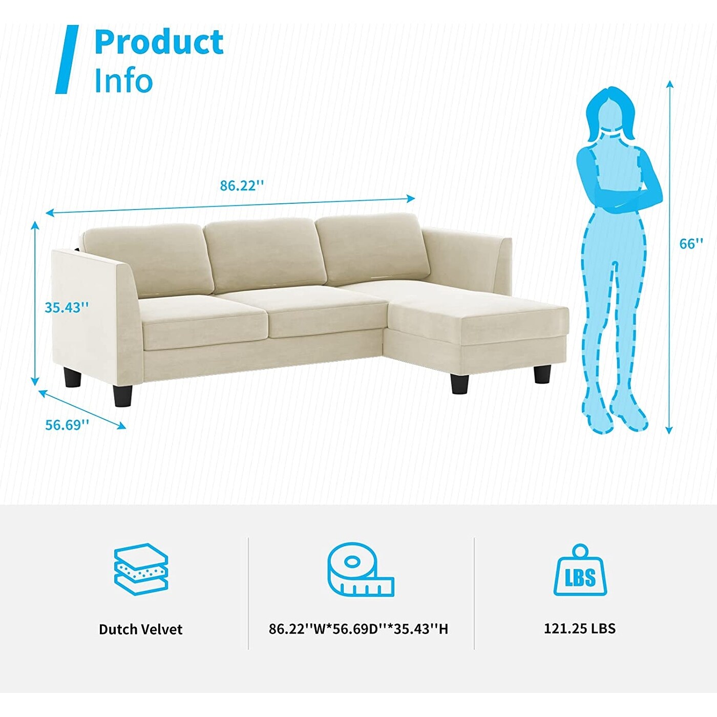 Mixoy Convertible Sectional Sofa,L Shaped Couches with Reversible Chaise Cream