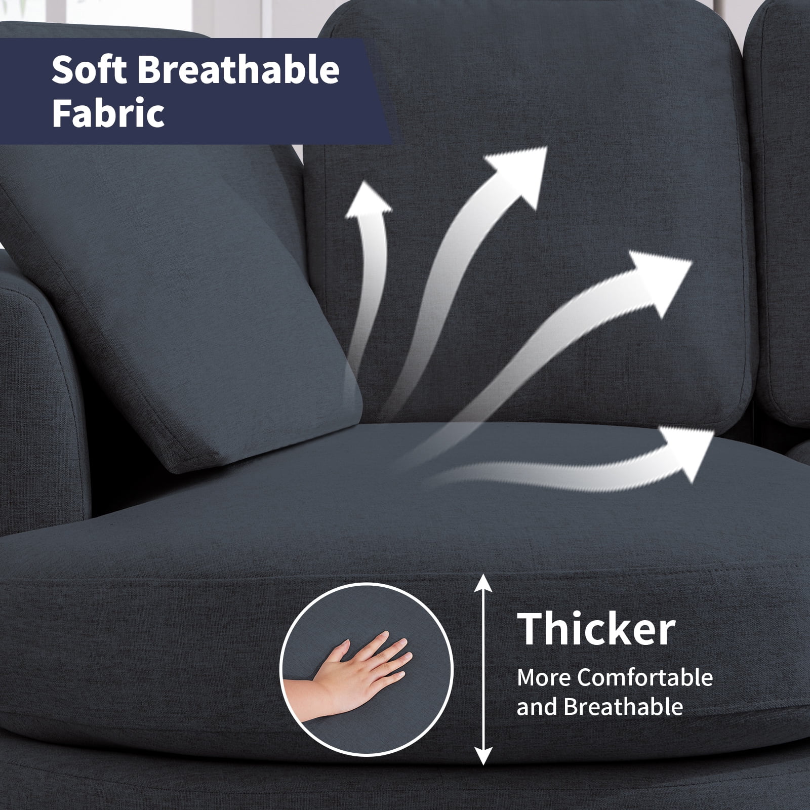 Convertible Sectional Sofa Couch with Storage Ottoman, L-Shaped Wide Reversible Chaise with Linen Fabric(Deep Grey)