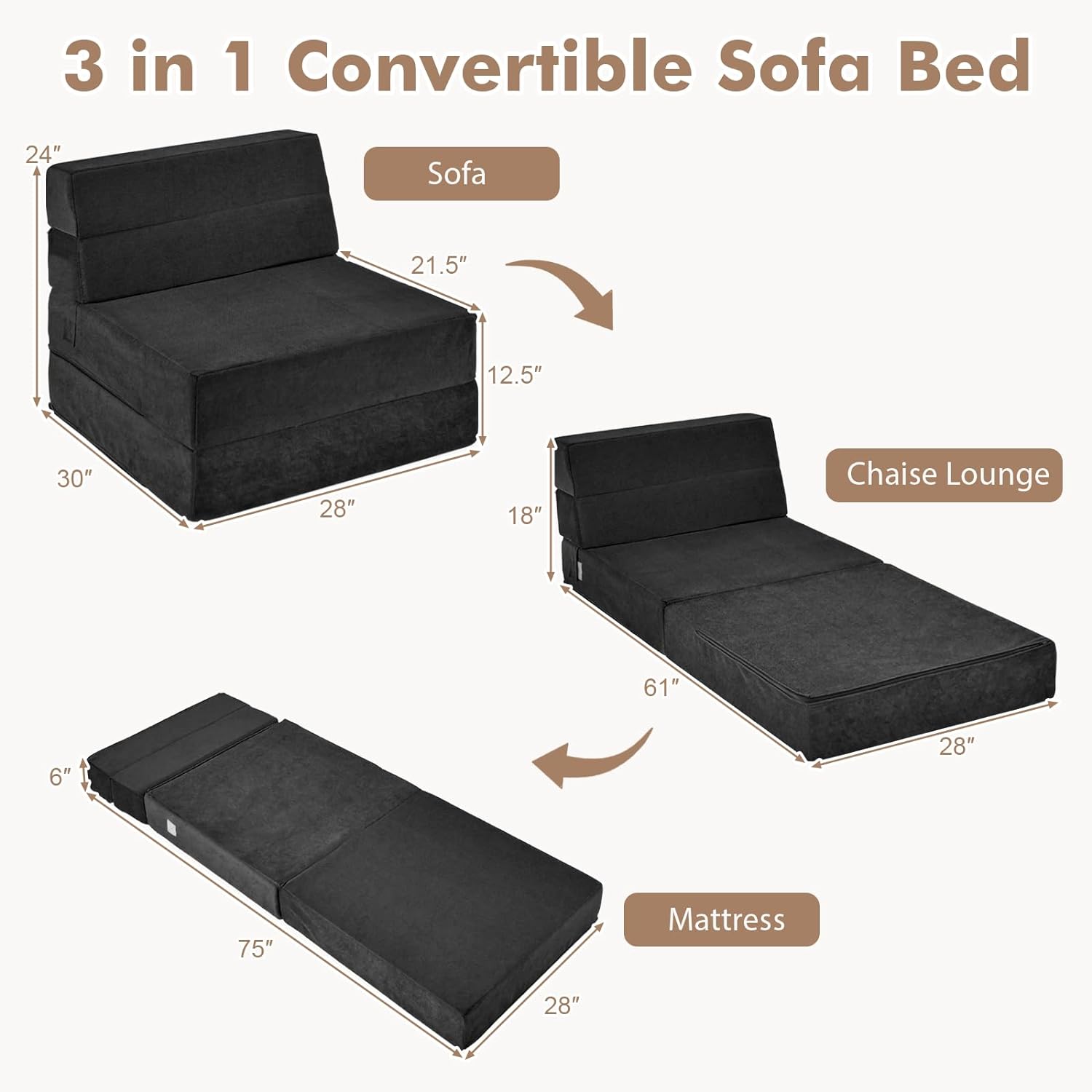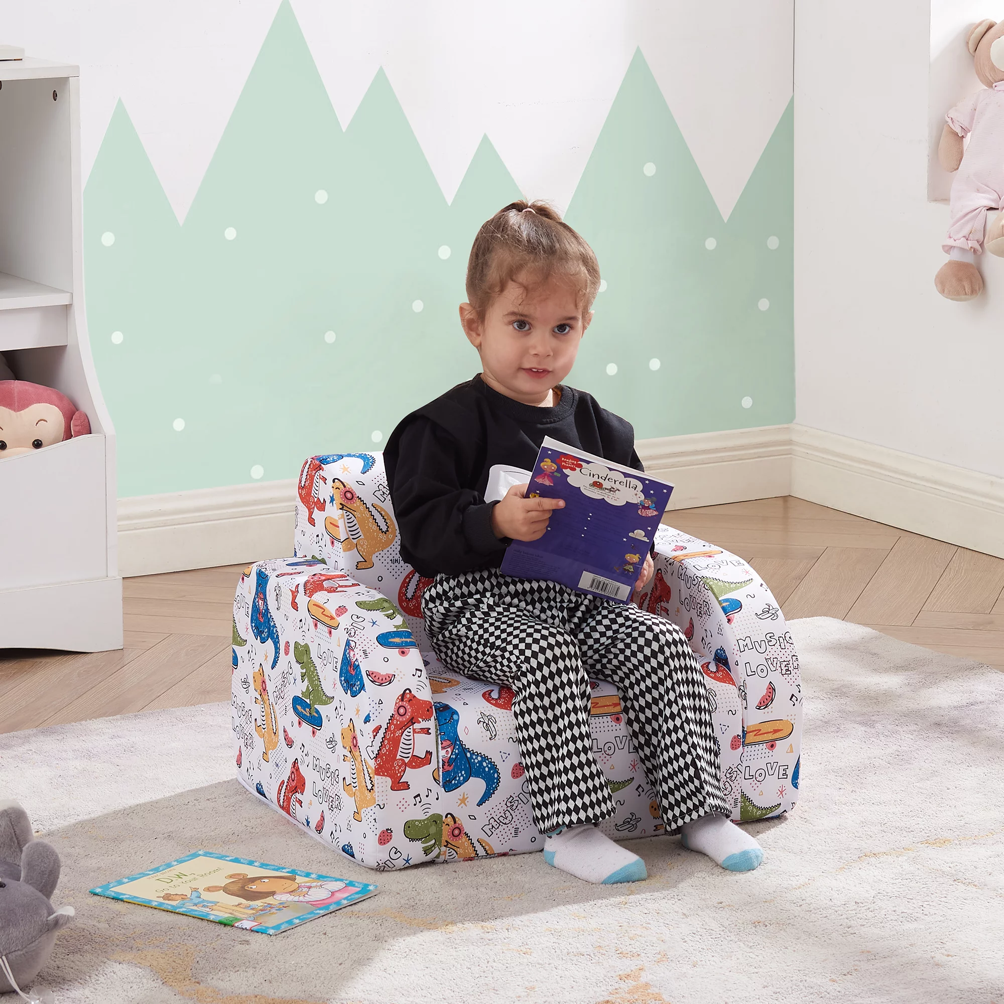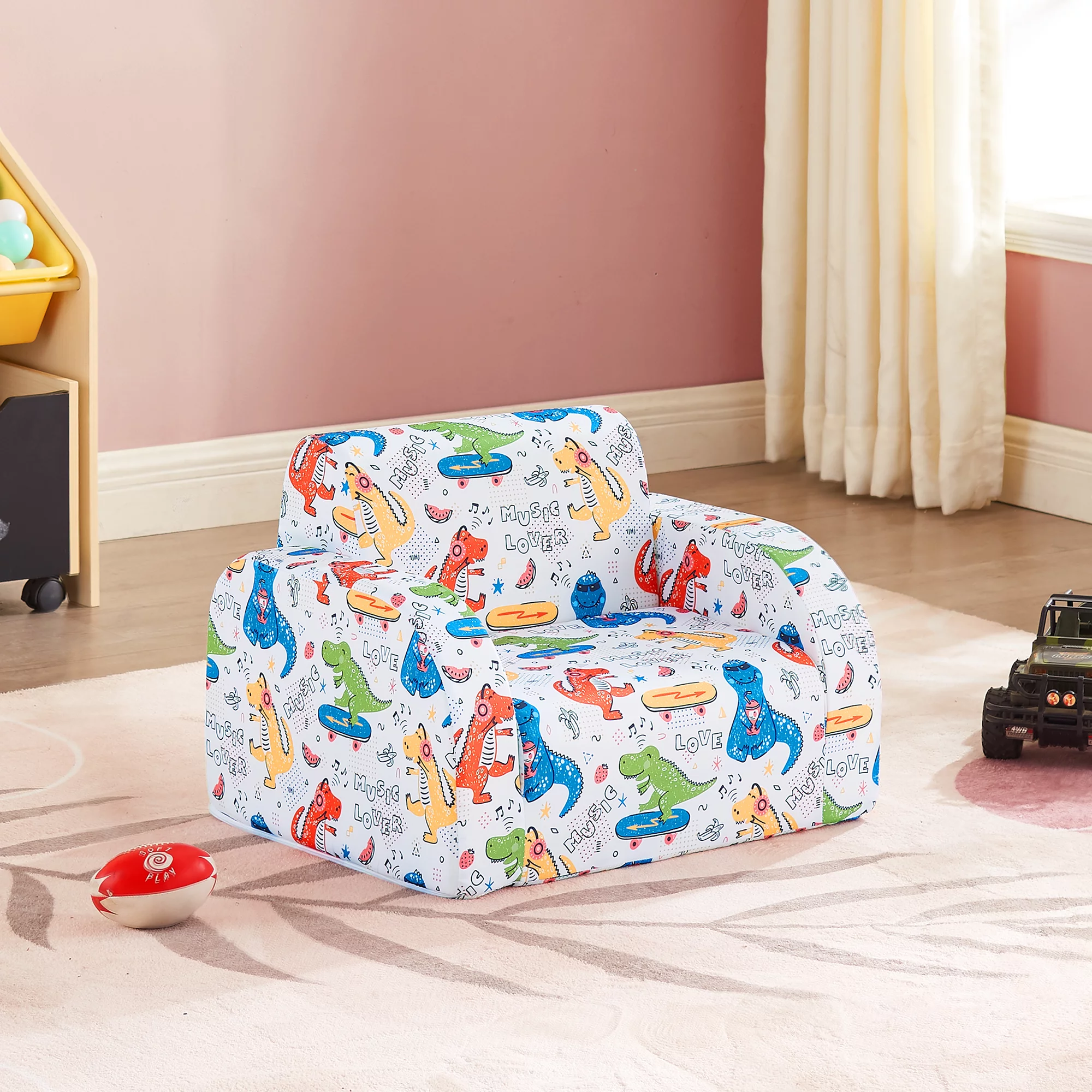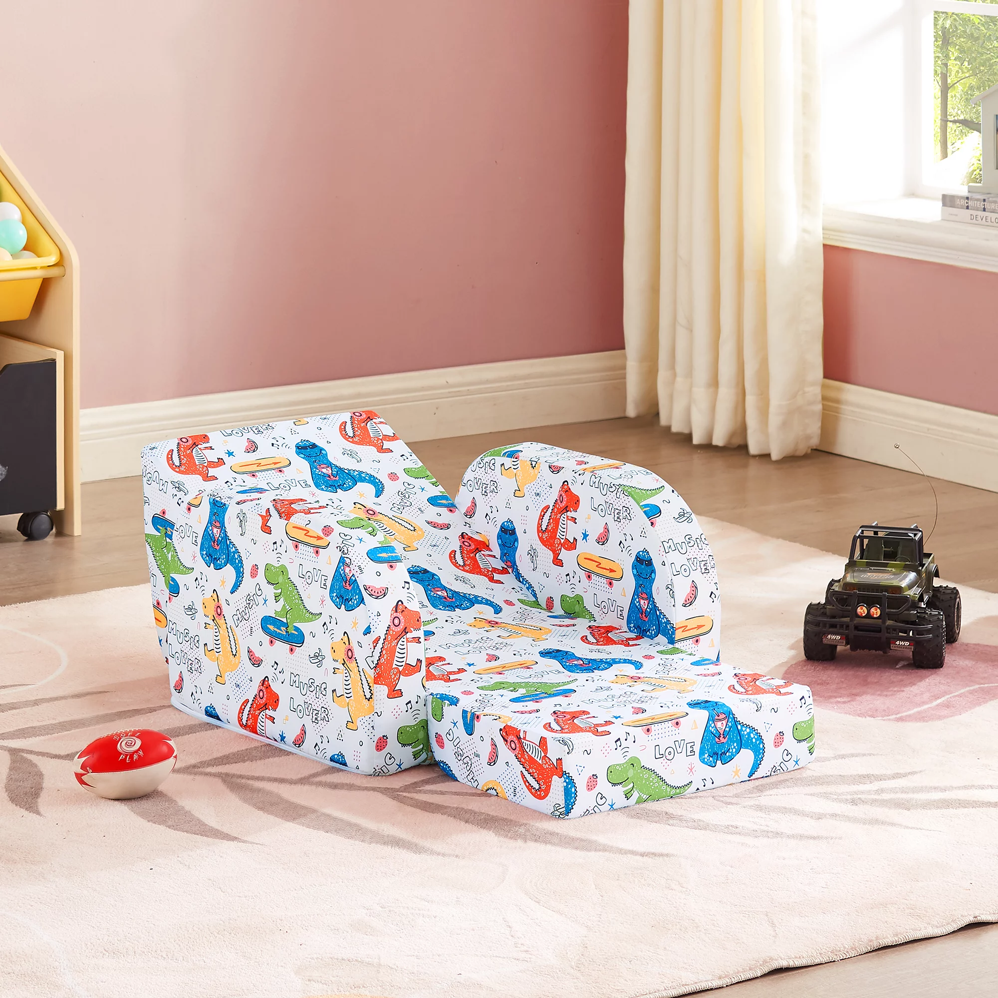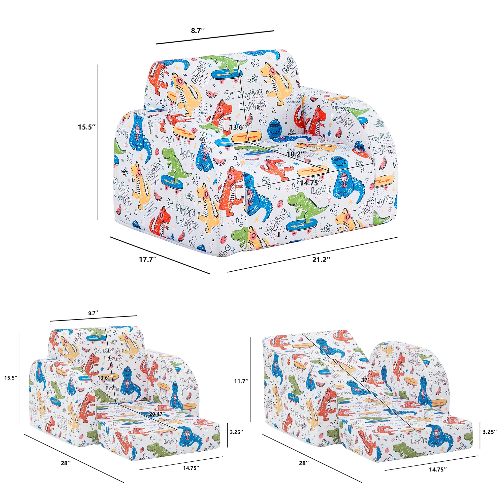 Ulax Furniture 3-in-1 Convertible Kids Sofa Couch, Children Flip-Out Chair Multifunctional Toddler Lounger, White