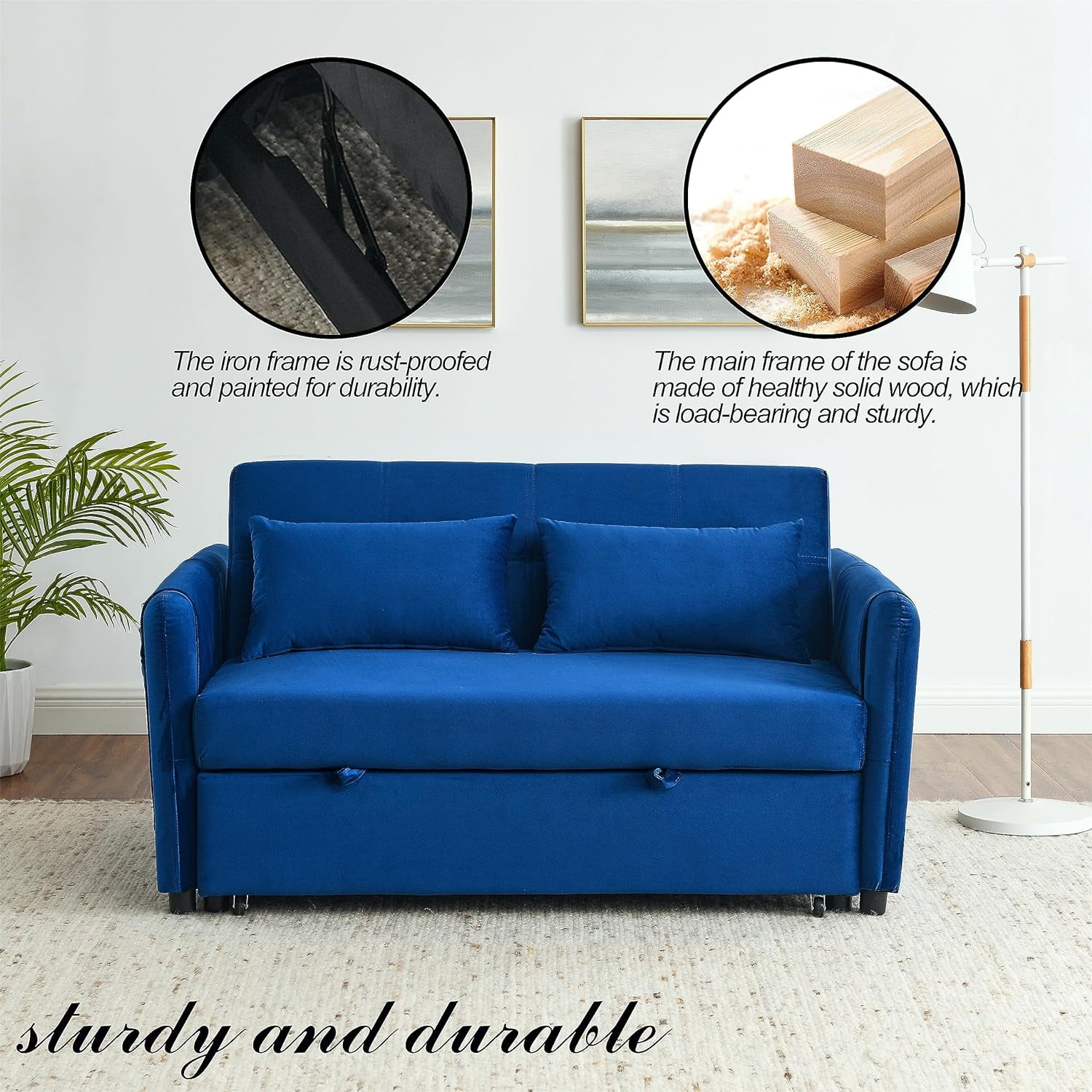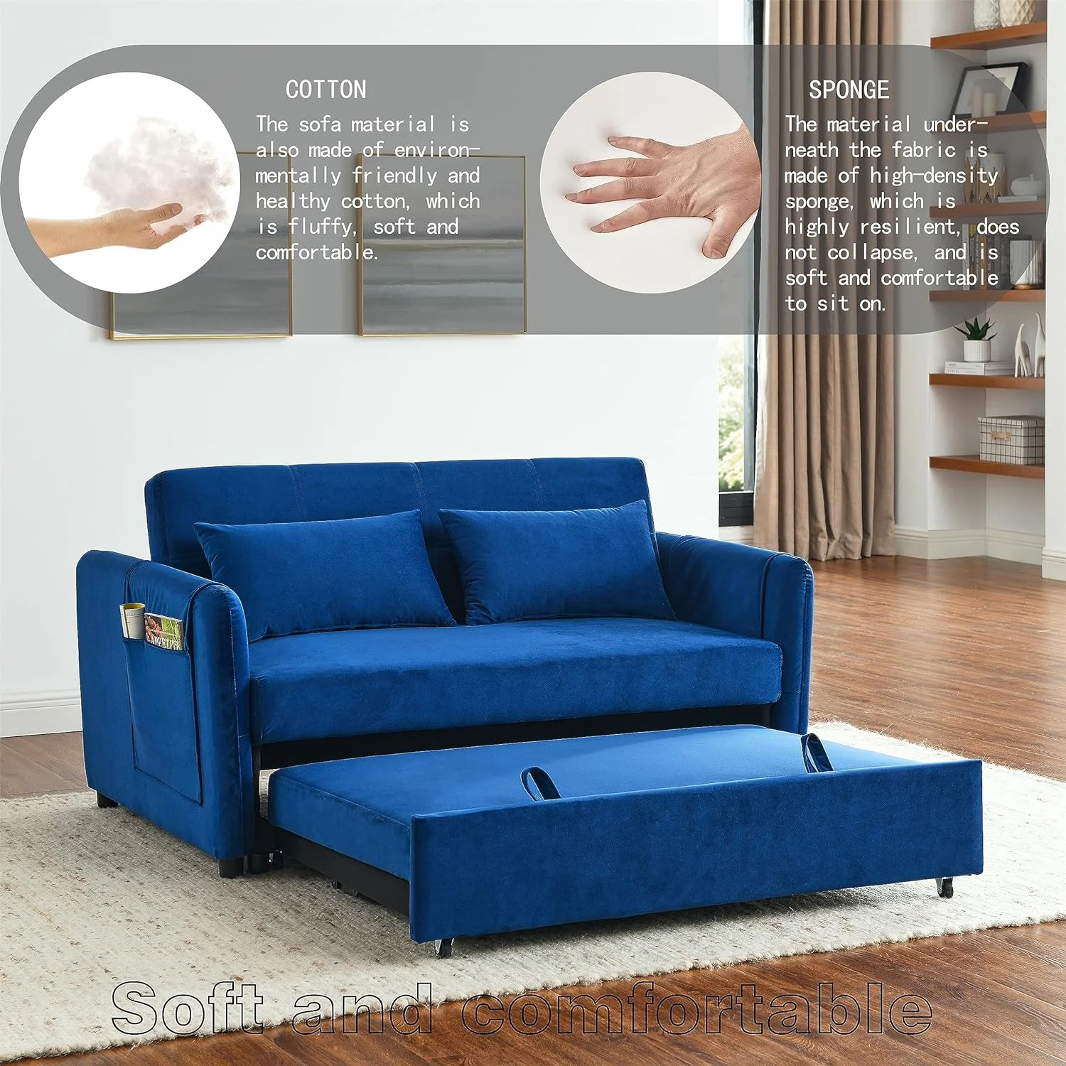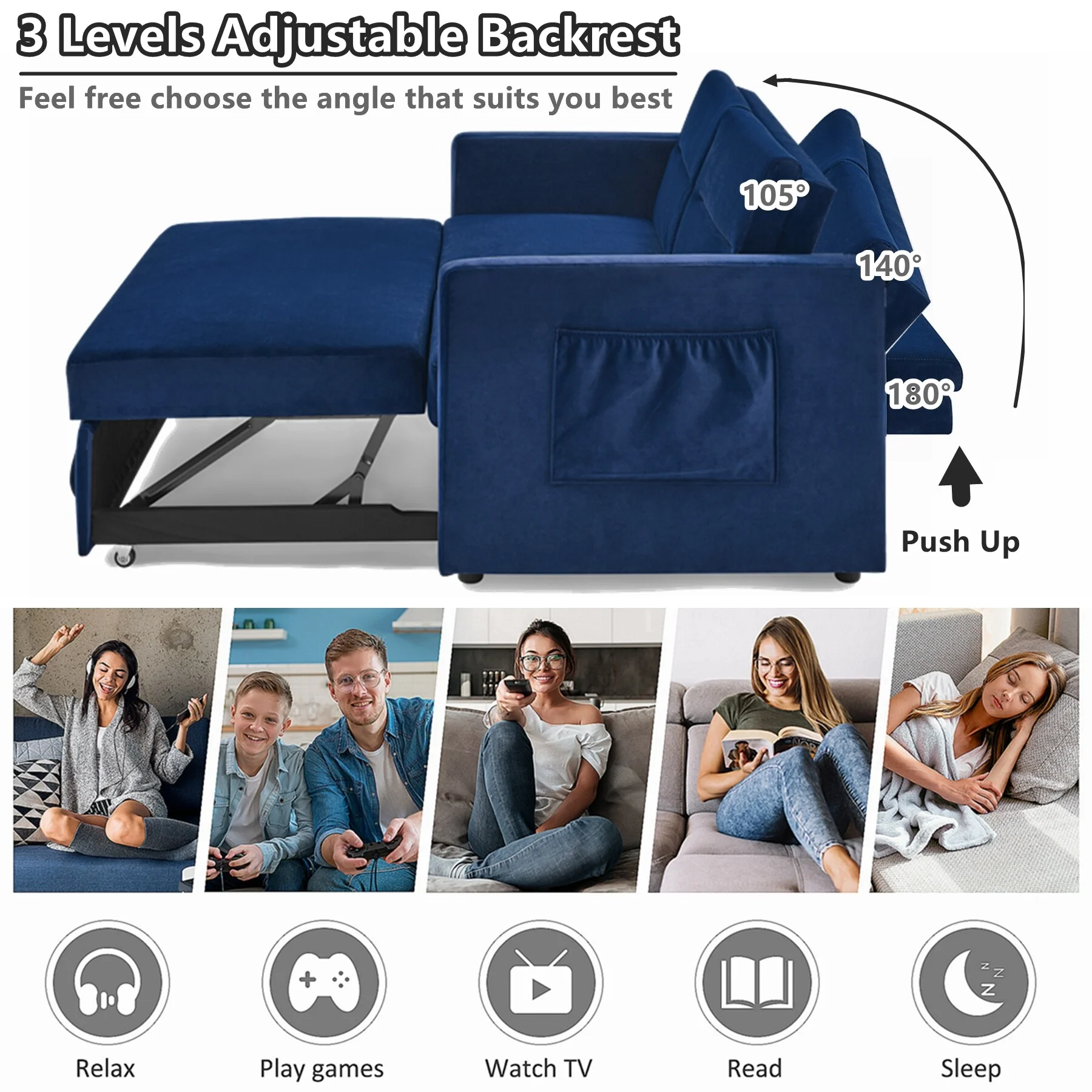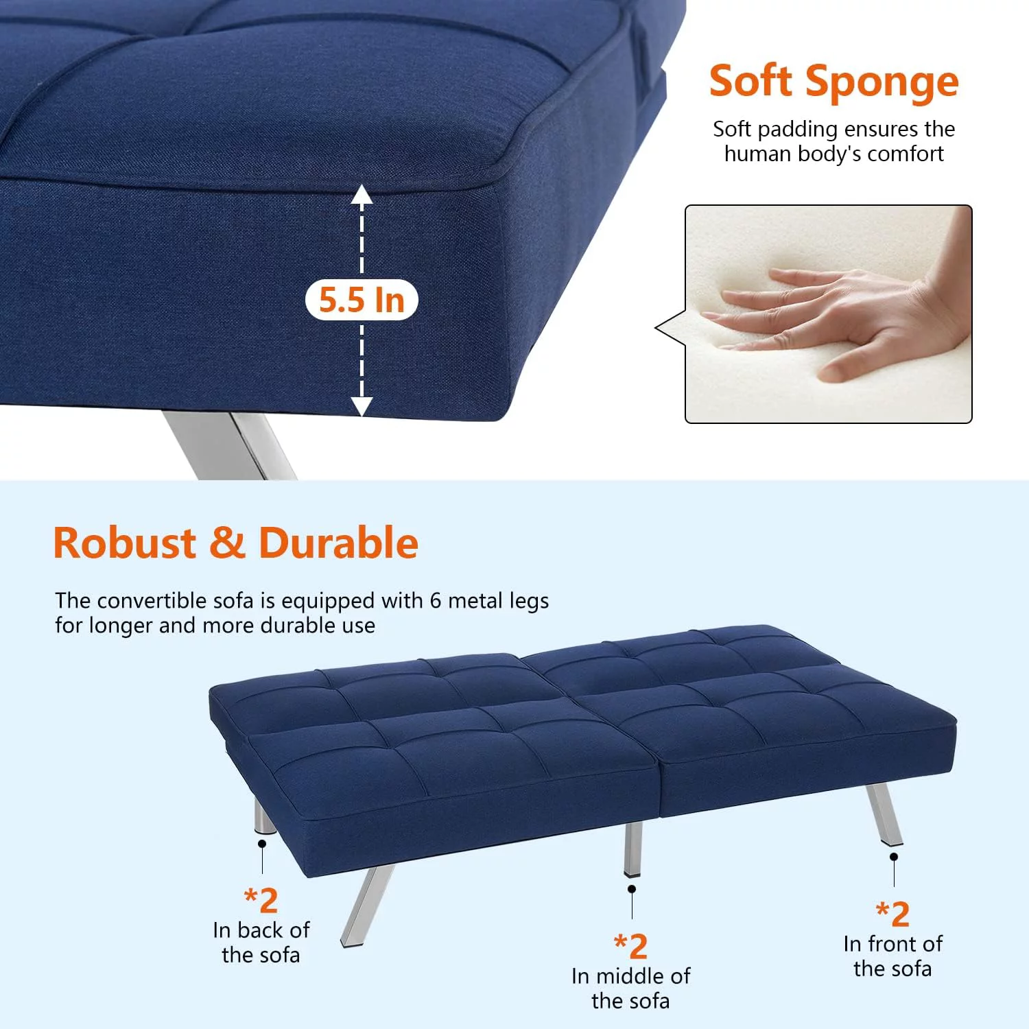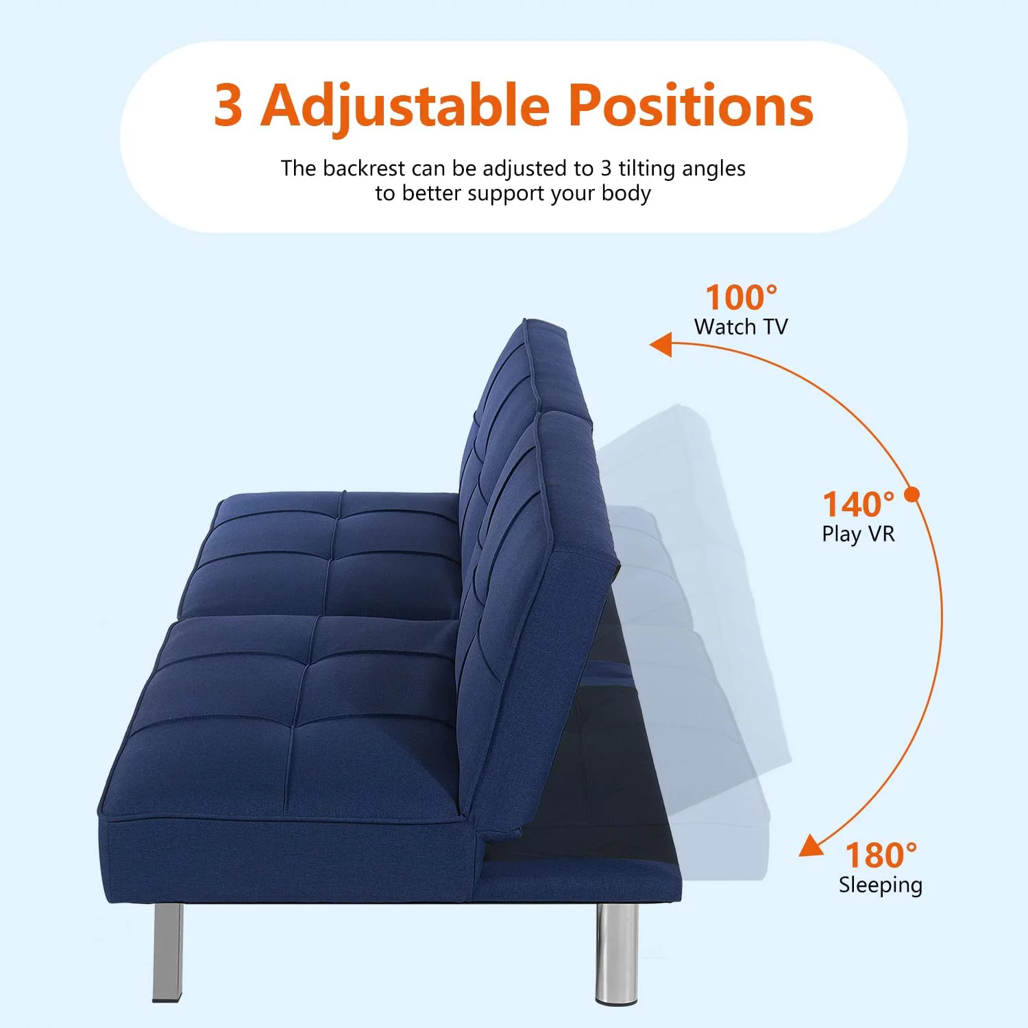 NiamVelo 65.7" Upholstered Sofa Bed Couch Convertible Futon Folding Sleeper Sofa for Living Room, Blue