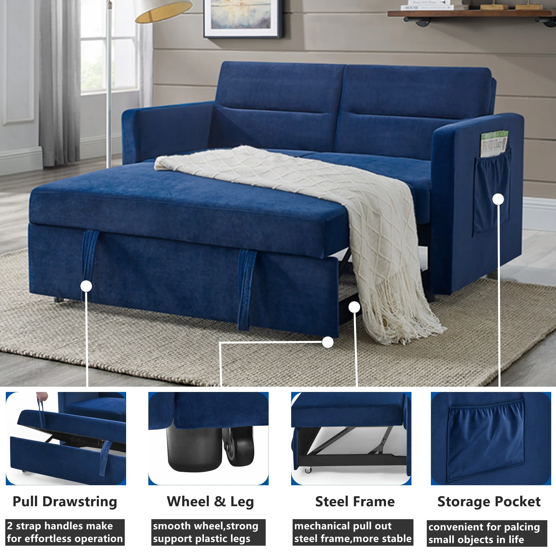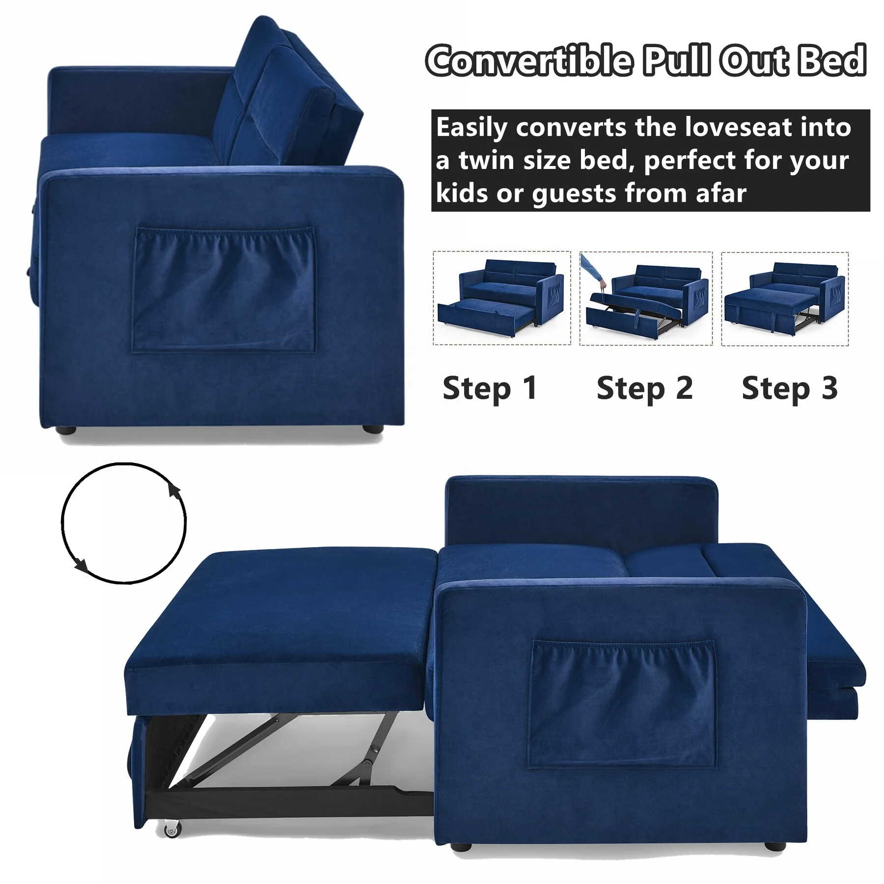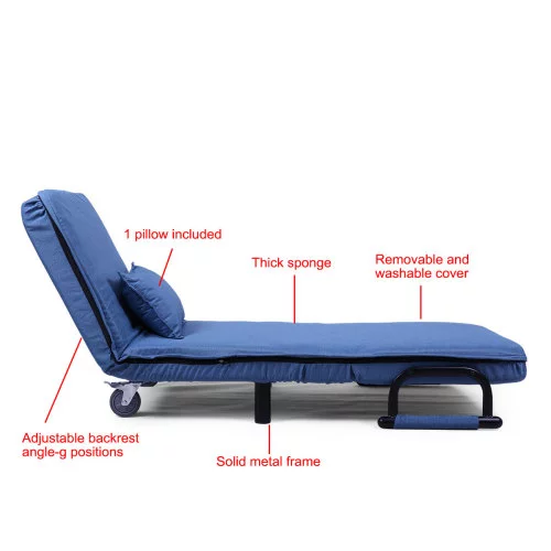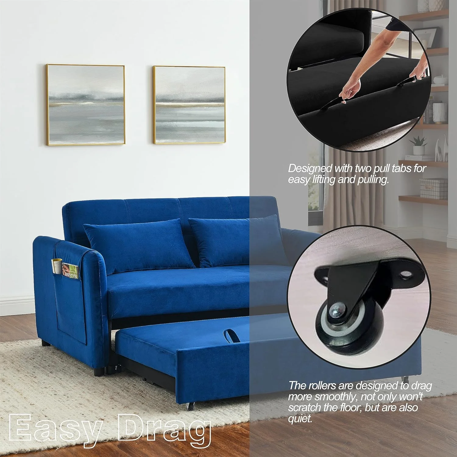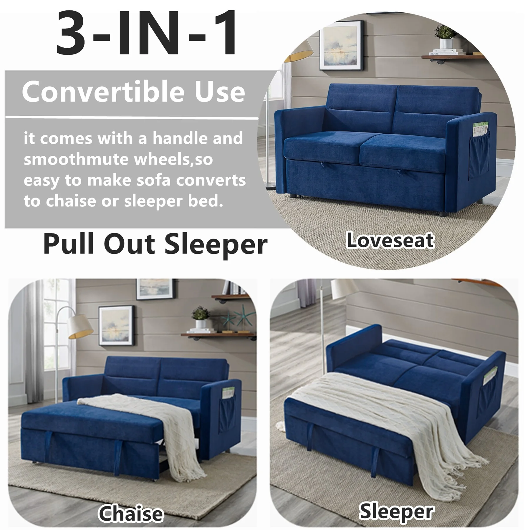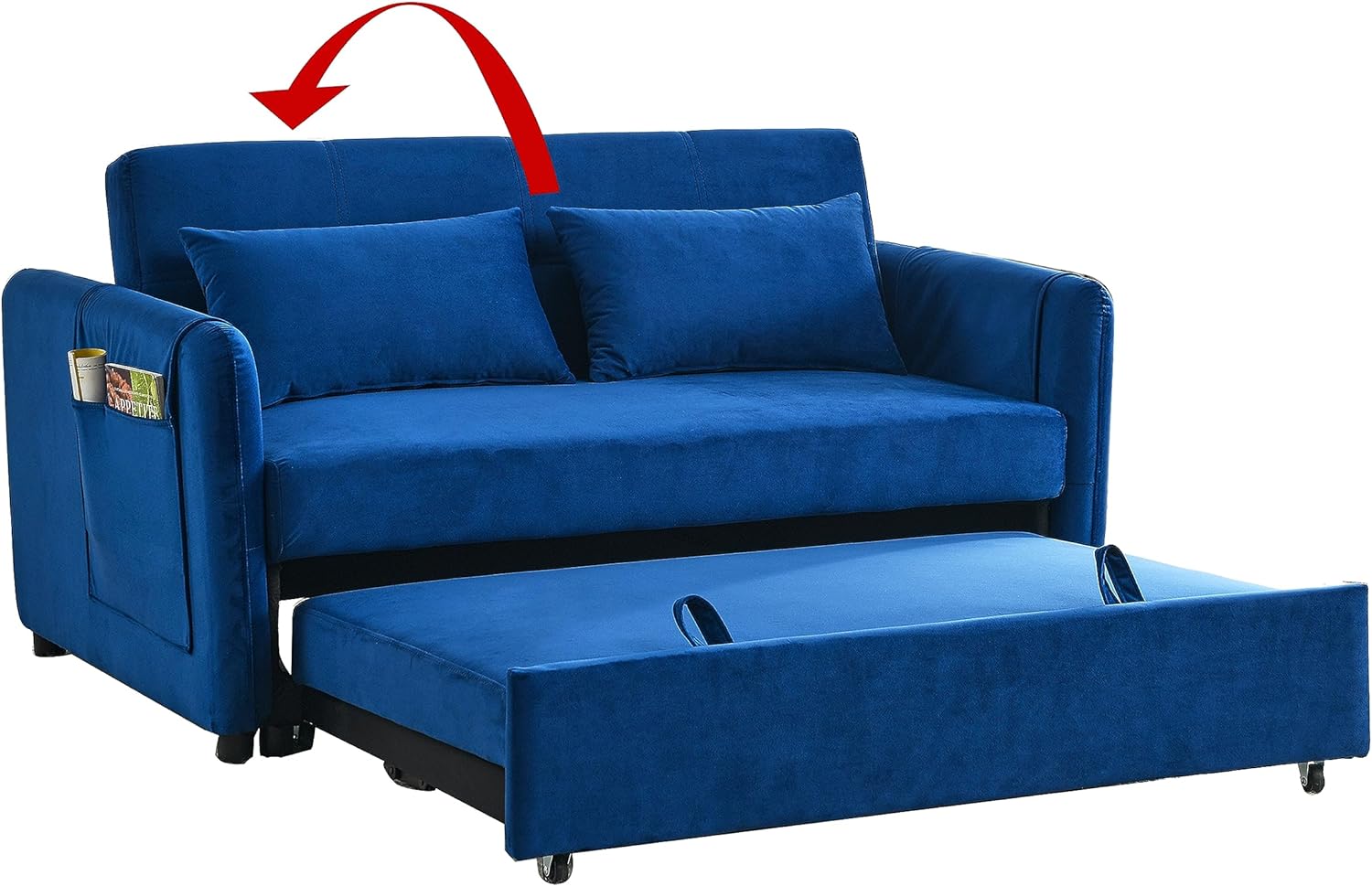 NiamVelo 65.7" Upholstered Sofa Bed Couch Convertible Futon Folding Sleeper Sofa for Living Room, Blue