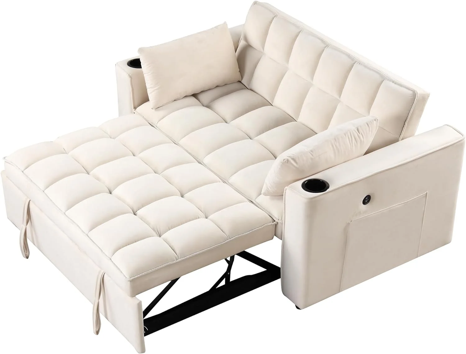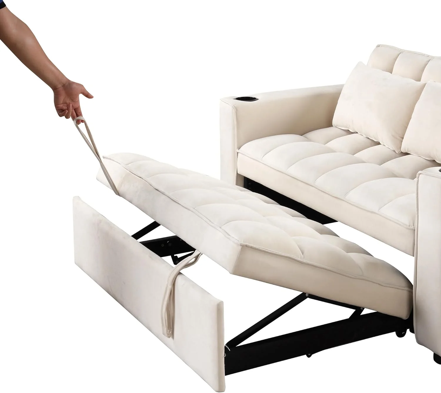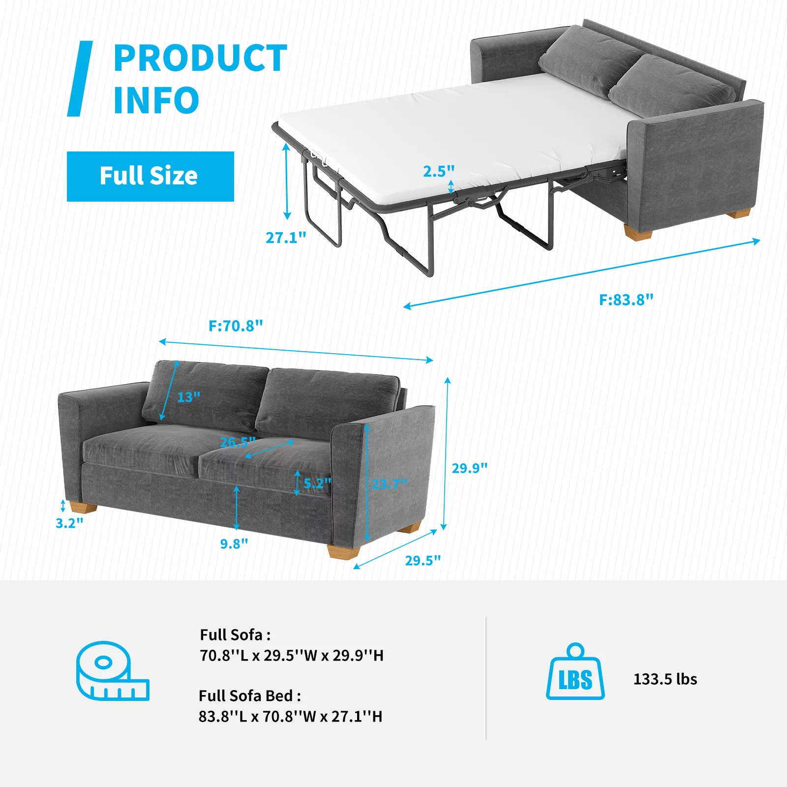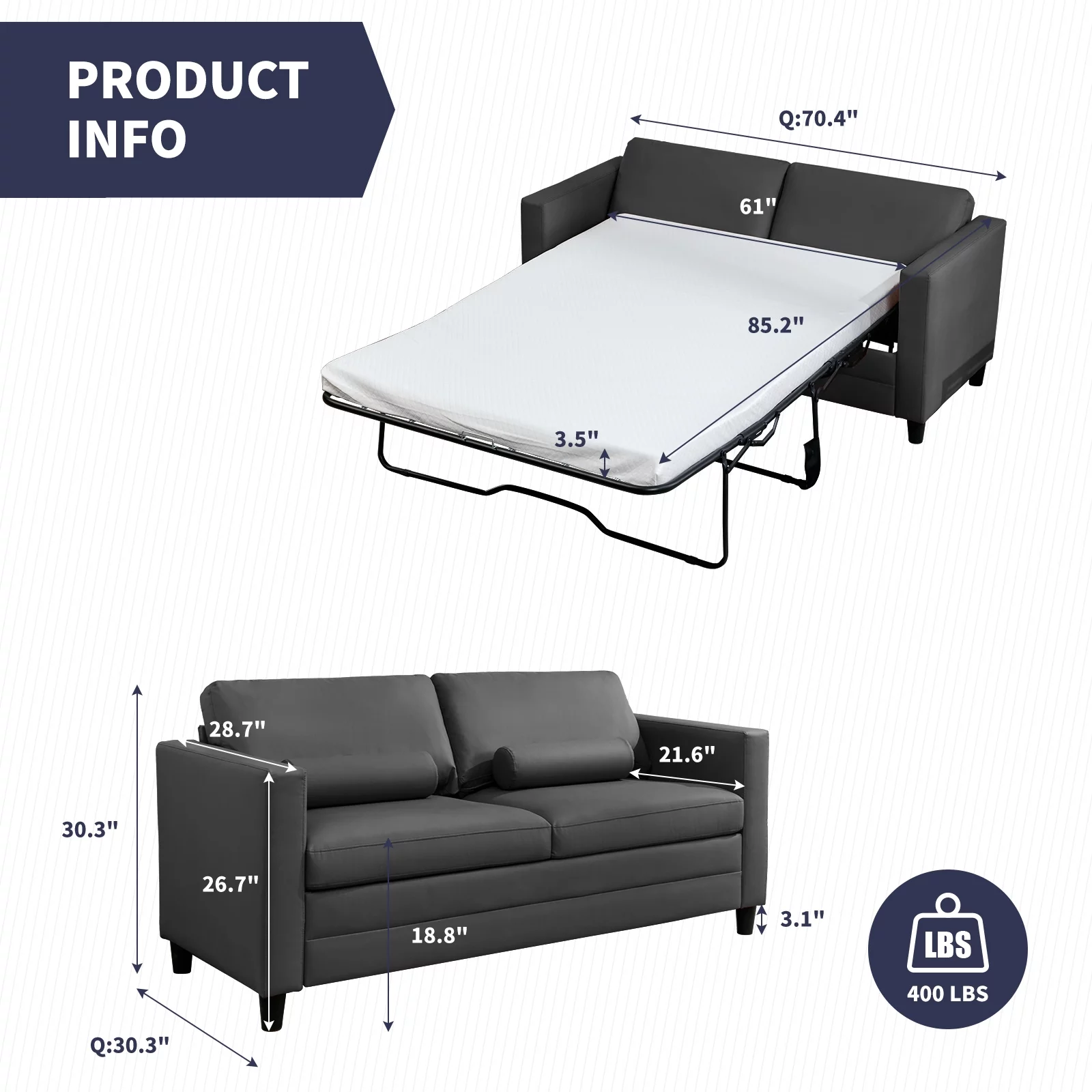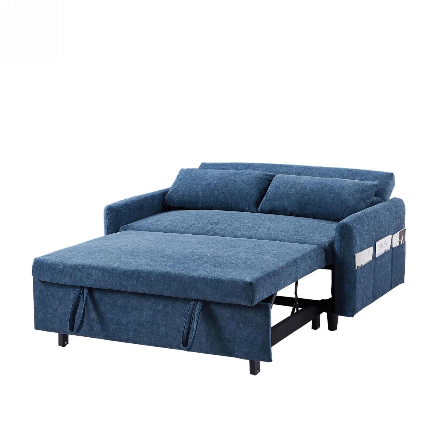 NiamVelo 65.7" Upholstered Sofa Bed Couch Convertible Futon Folding Sleeper Sofa for Living Room, Blue