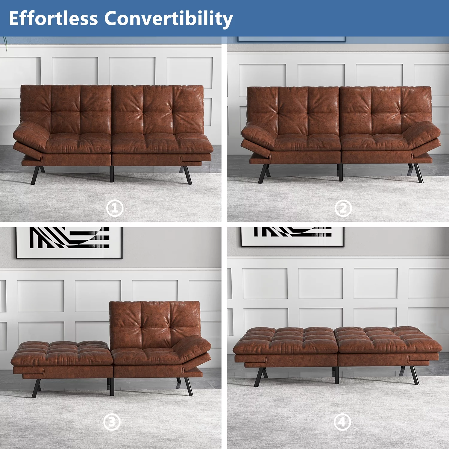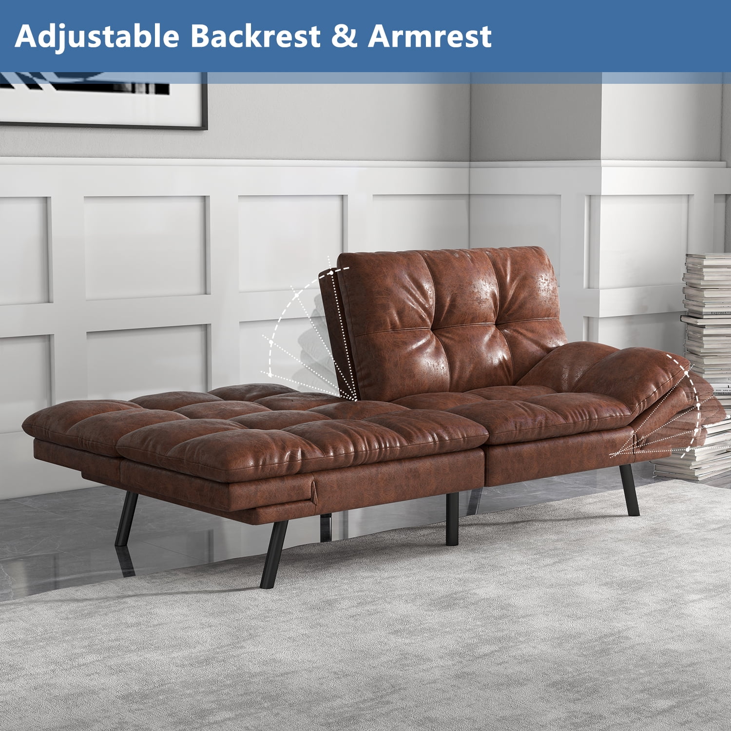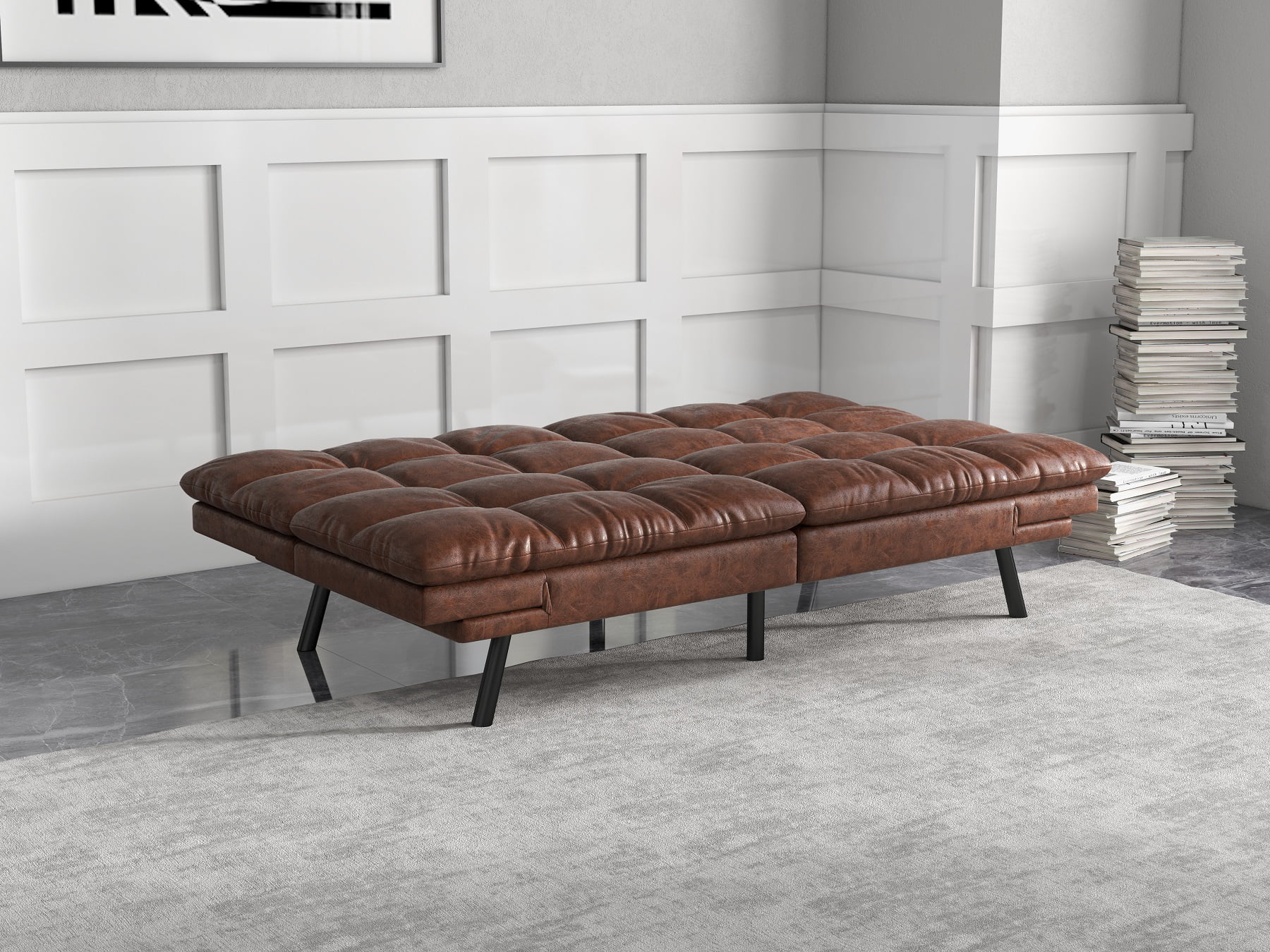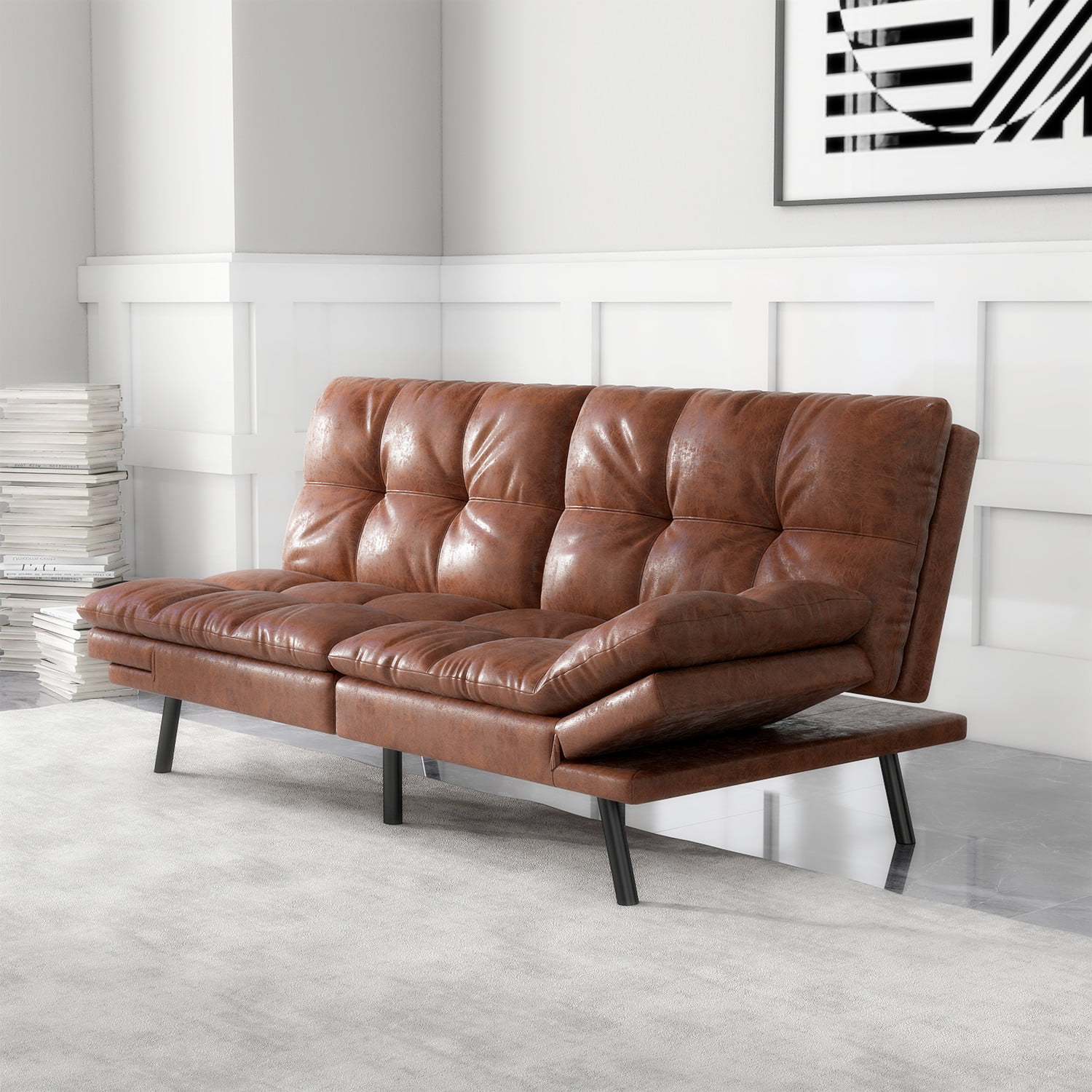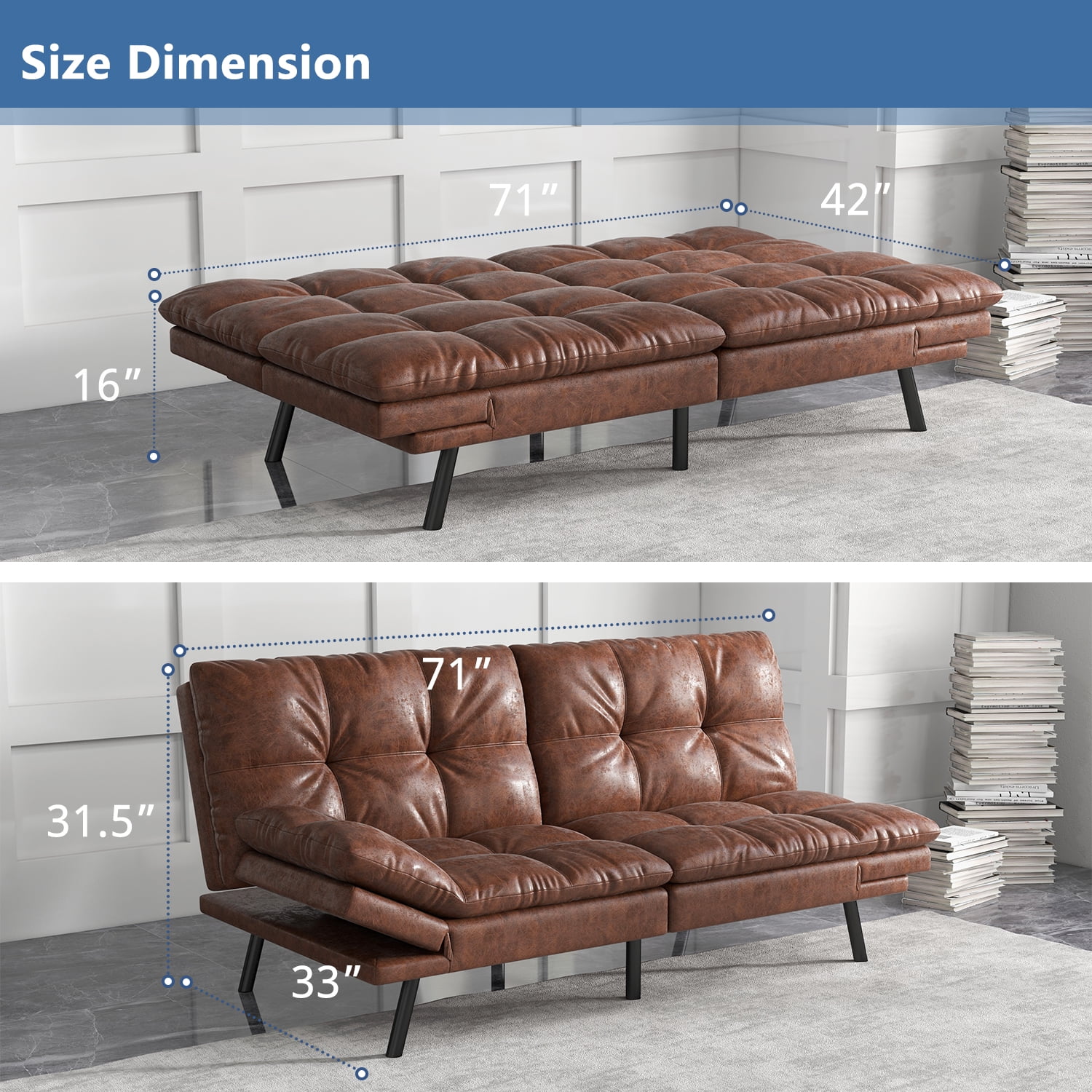 Smiaoer Faux Leather Futon Sofa Convertible Couch Memory Foam Sofa Bed,Brown