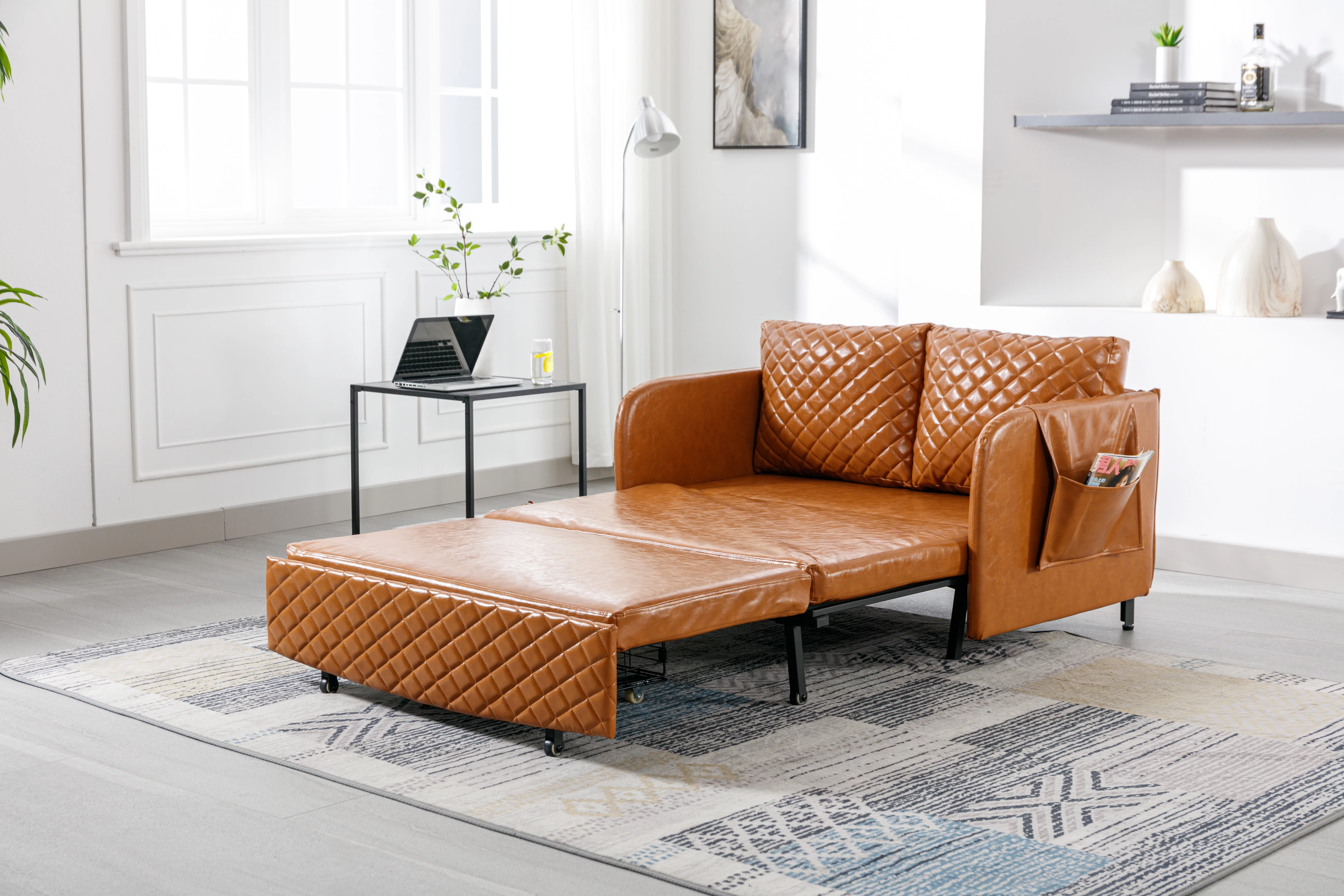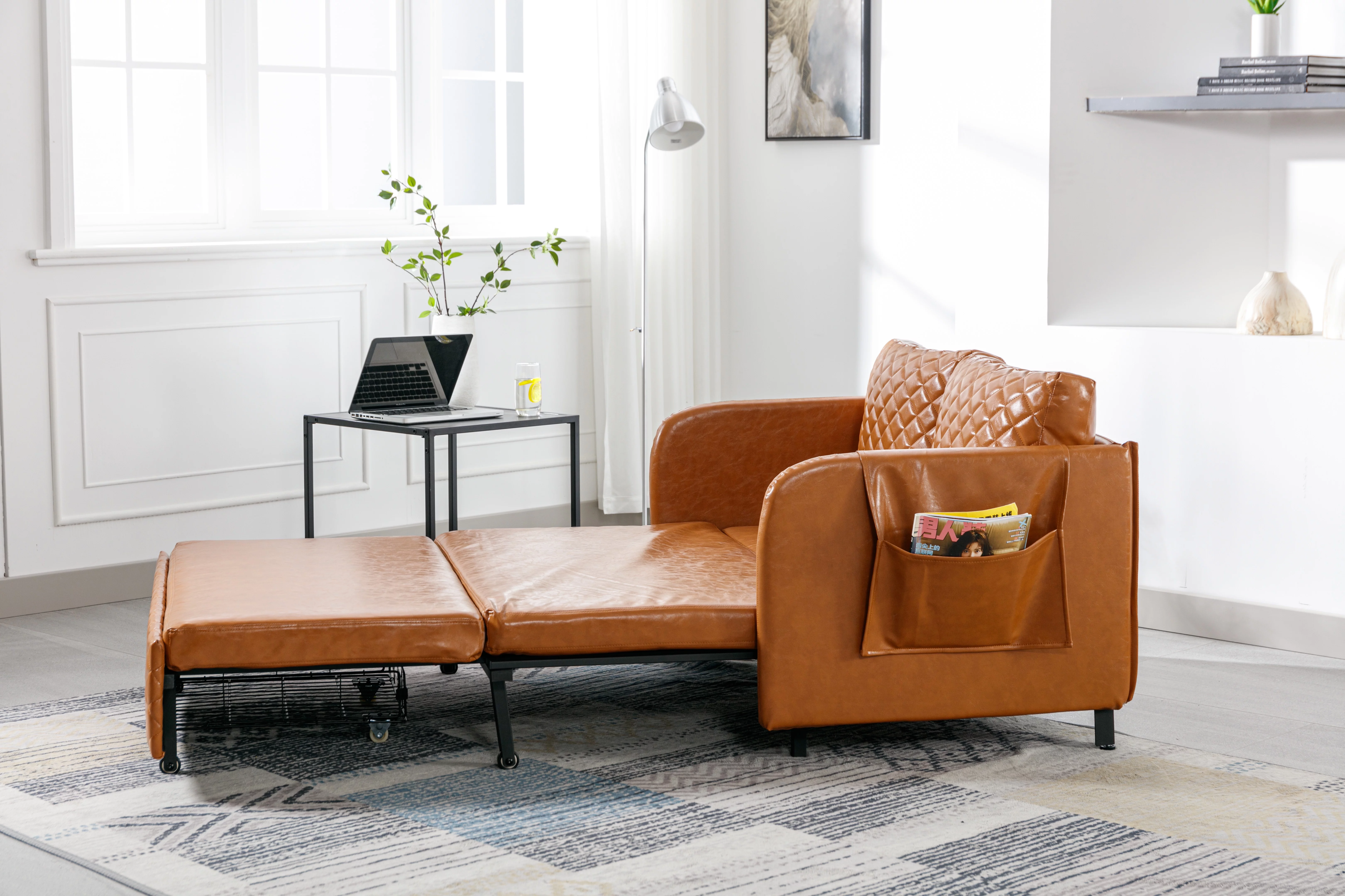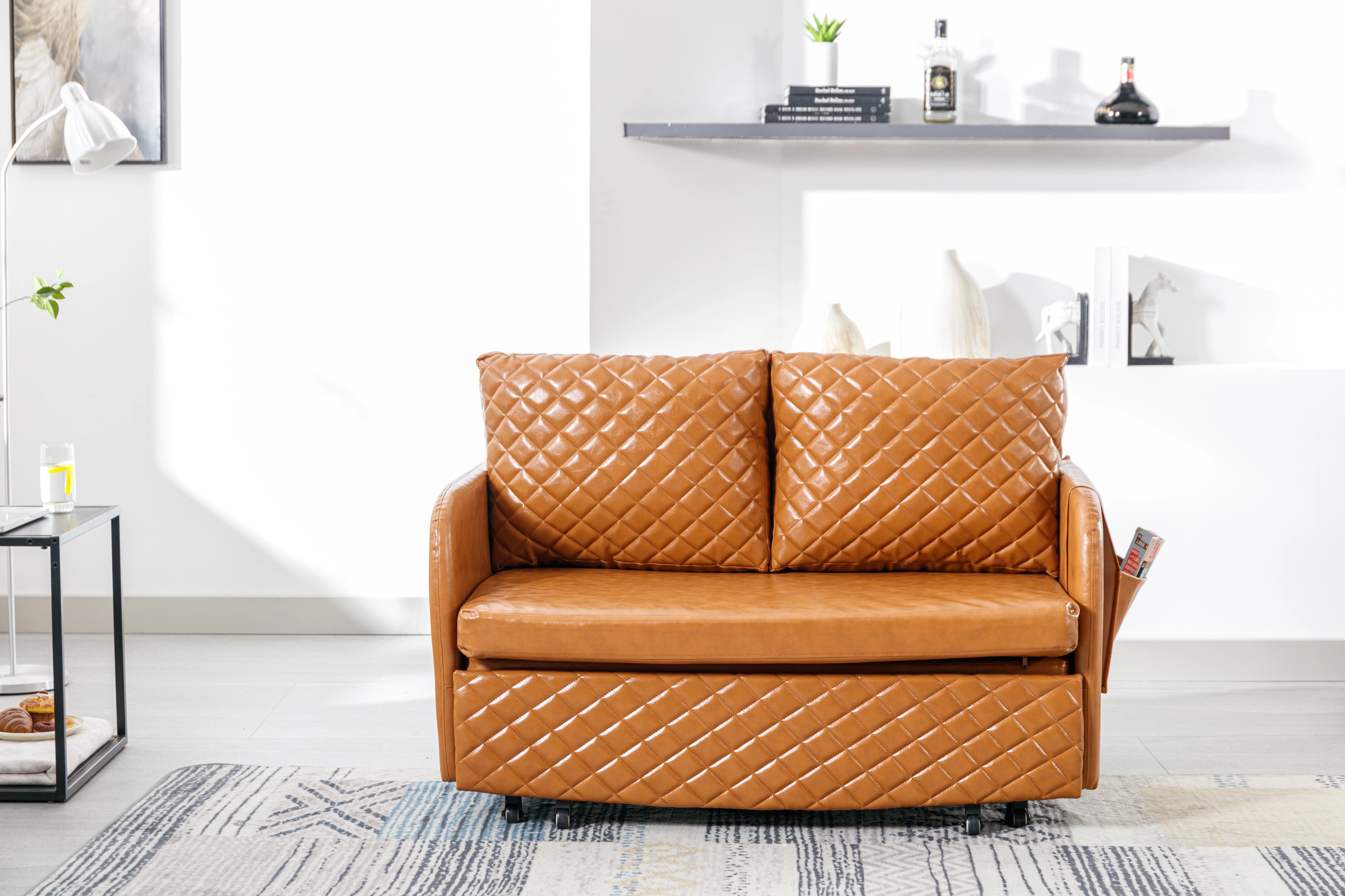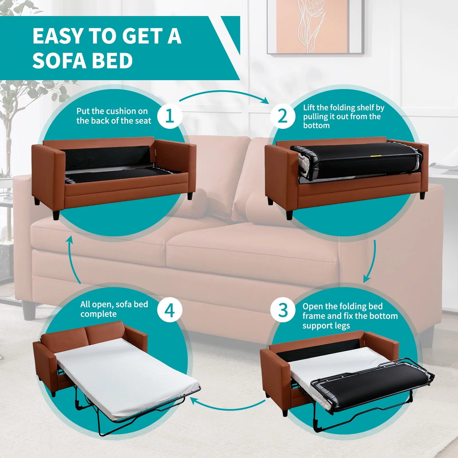 Smiaoer Faux Leather Futon Sofa Convertible Couch Memory Foam Sofa Bed,Brown