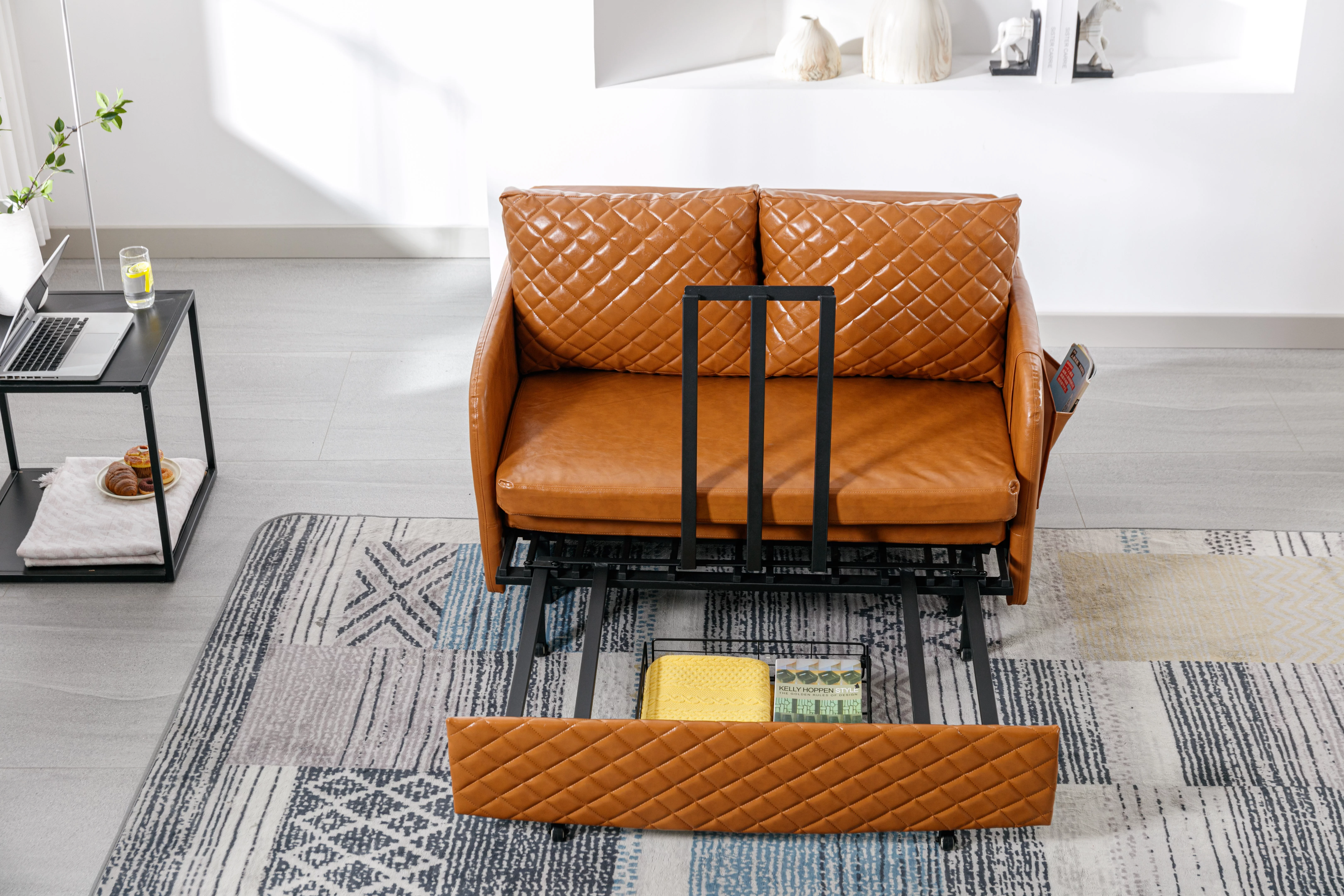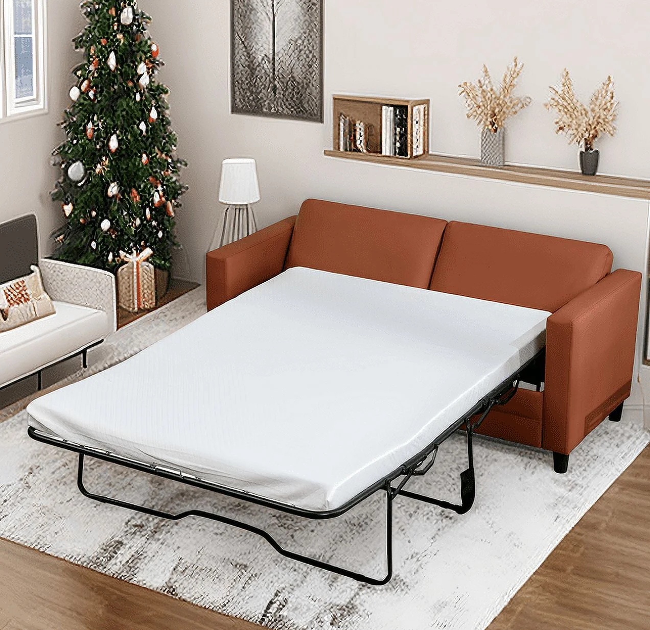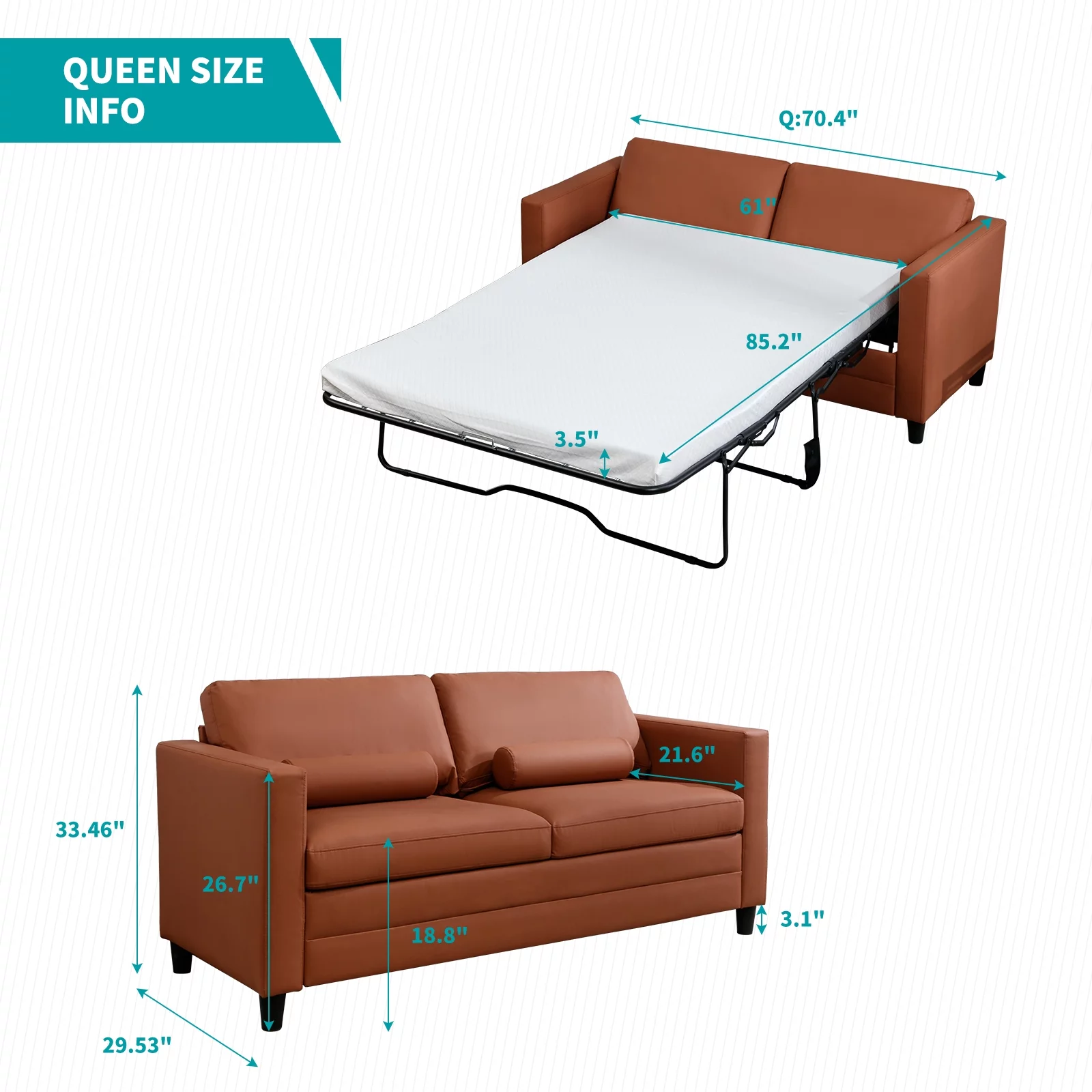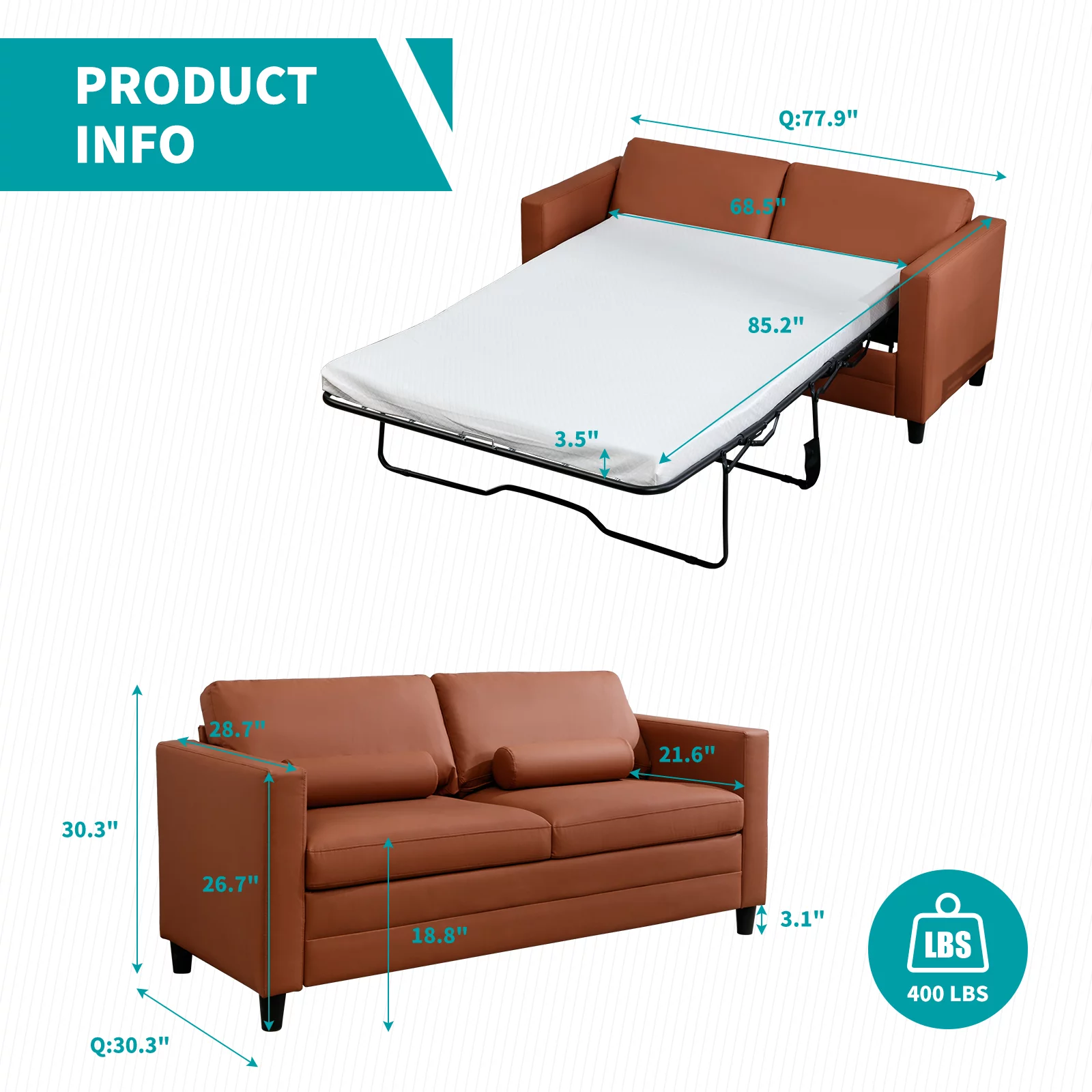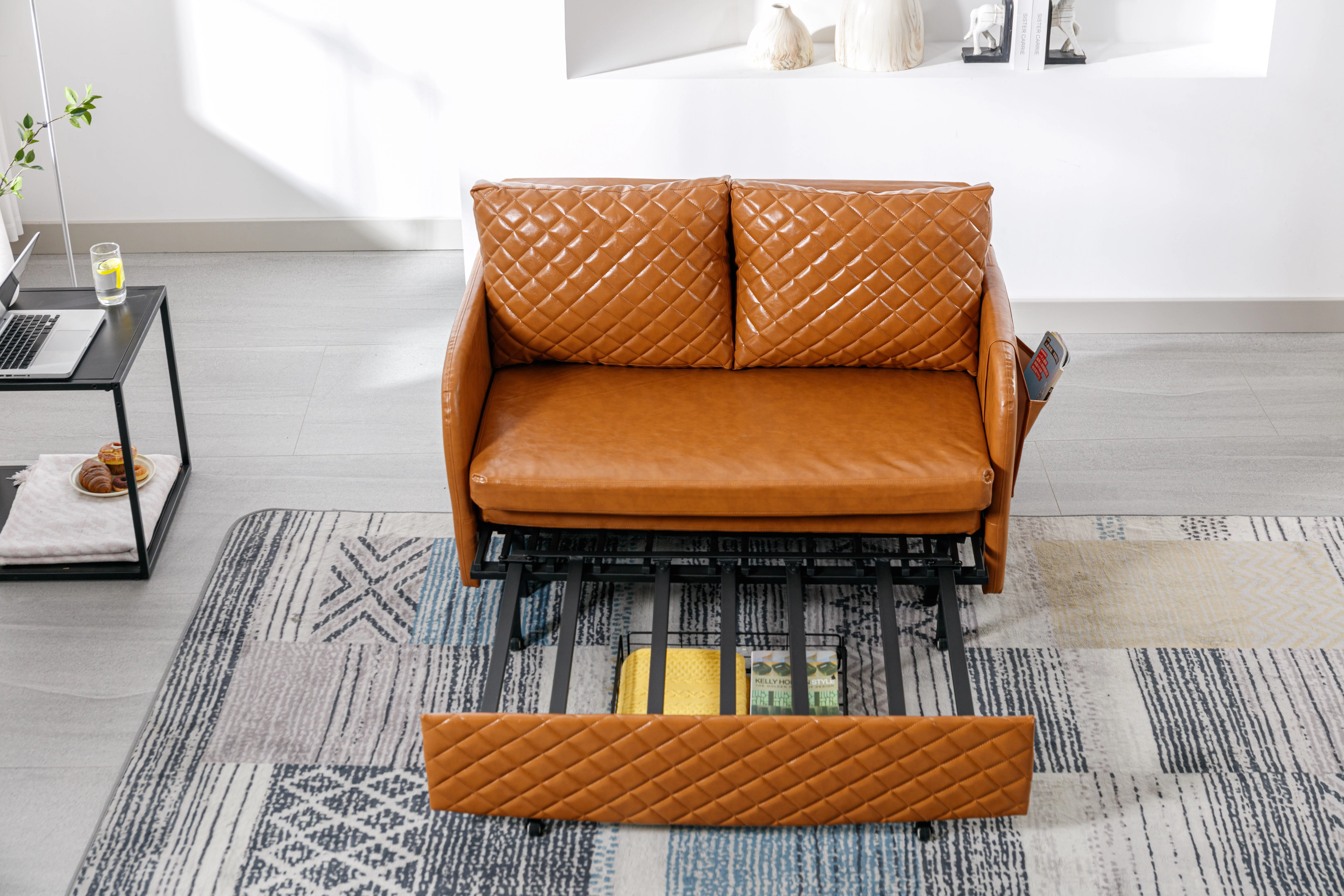 Smiaoer Faux Leather Futon Sofa Convertible Couch Memory Foam Sofa Bed,Brown