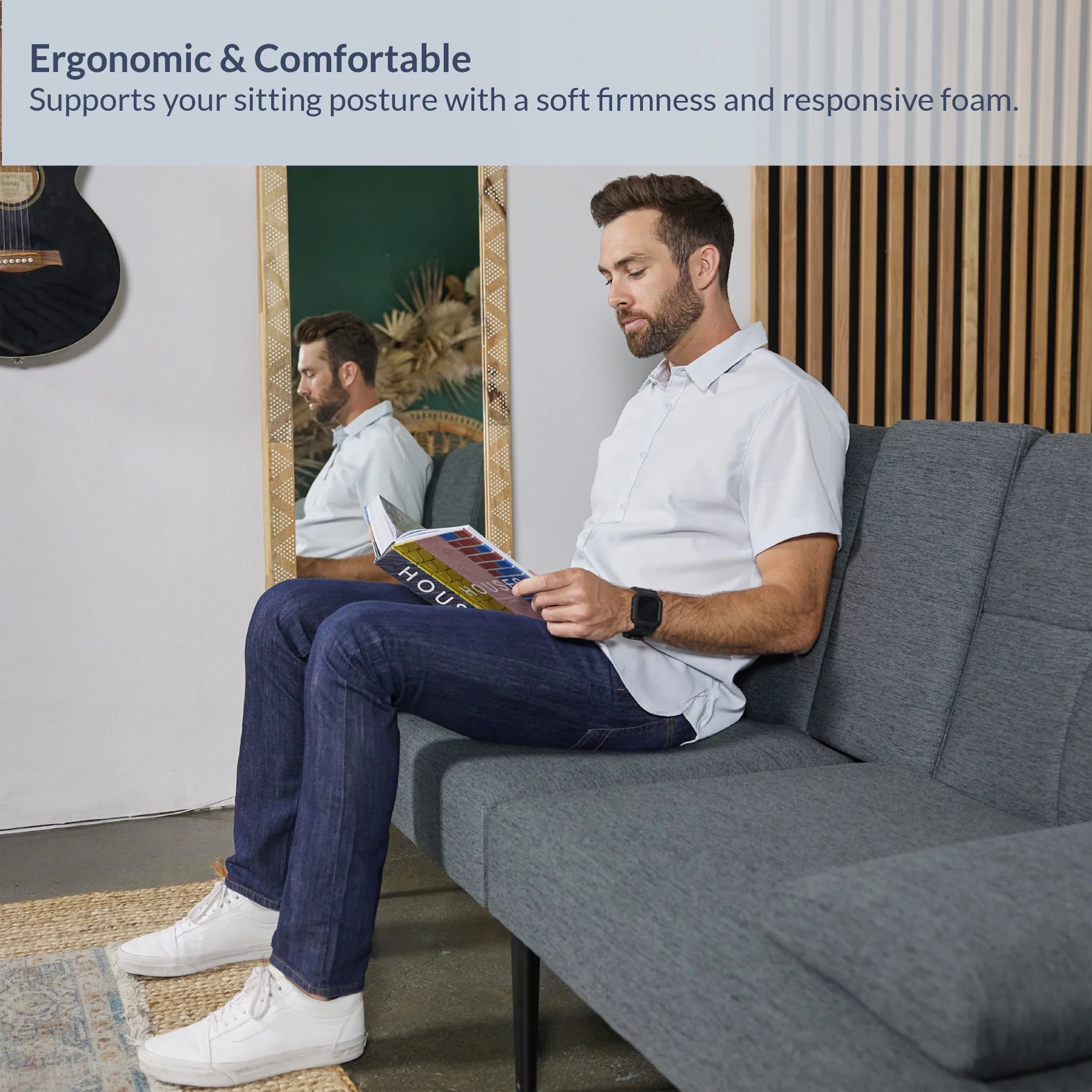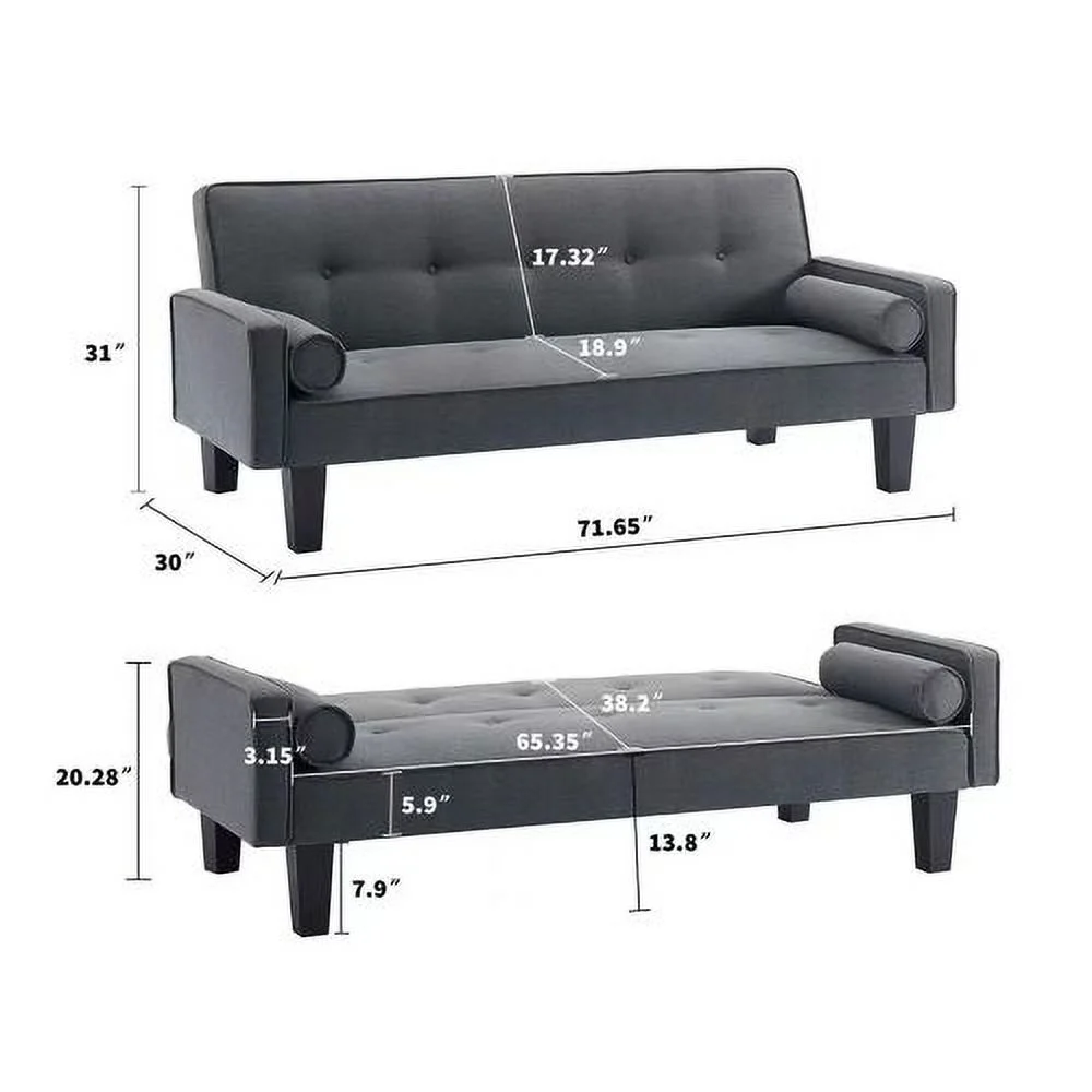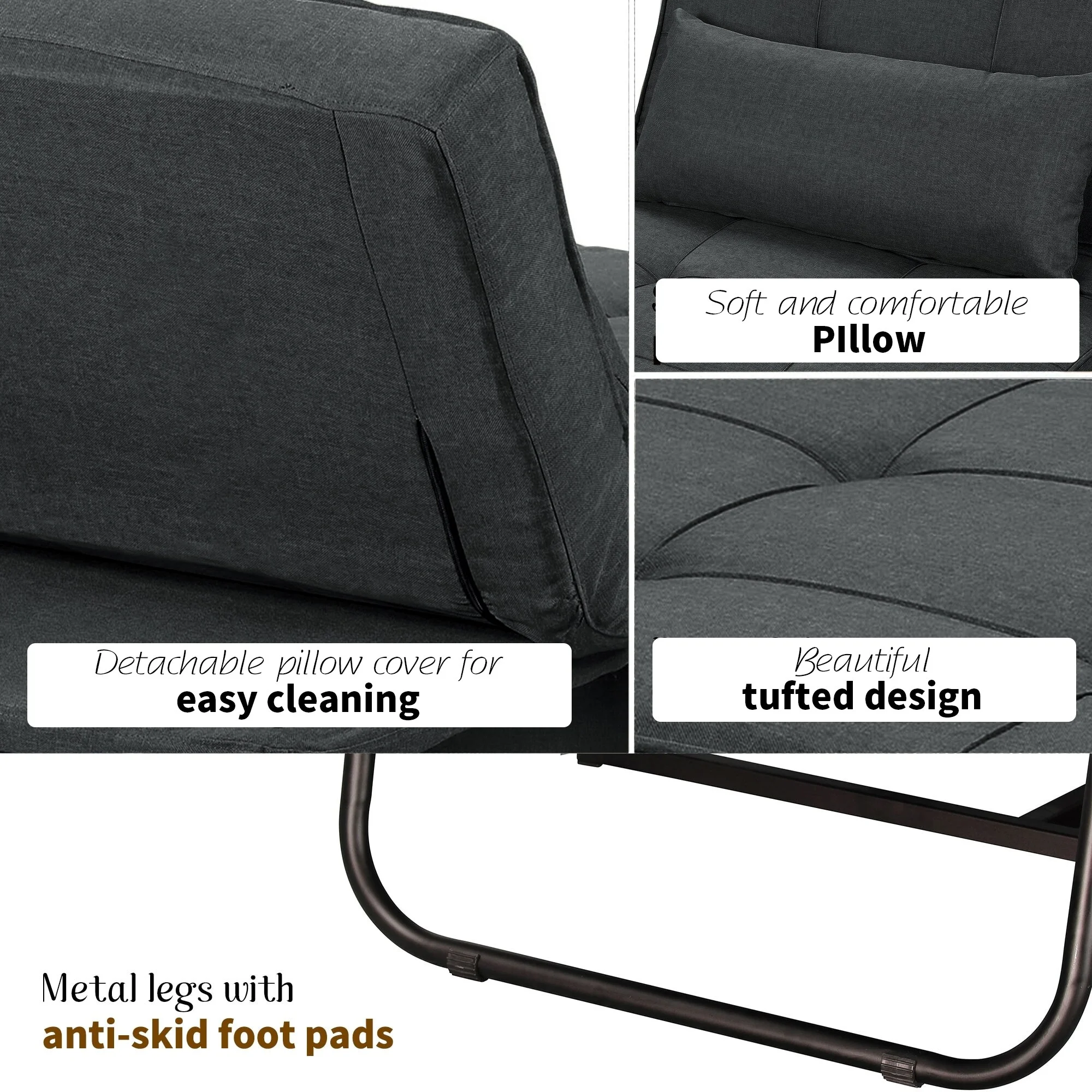 Ainfox Convertible Futon Sofa Bed Sleeper Sofa Chair Couch Folding Ottoman Back Adjustable for Living Room Dark Grey
