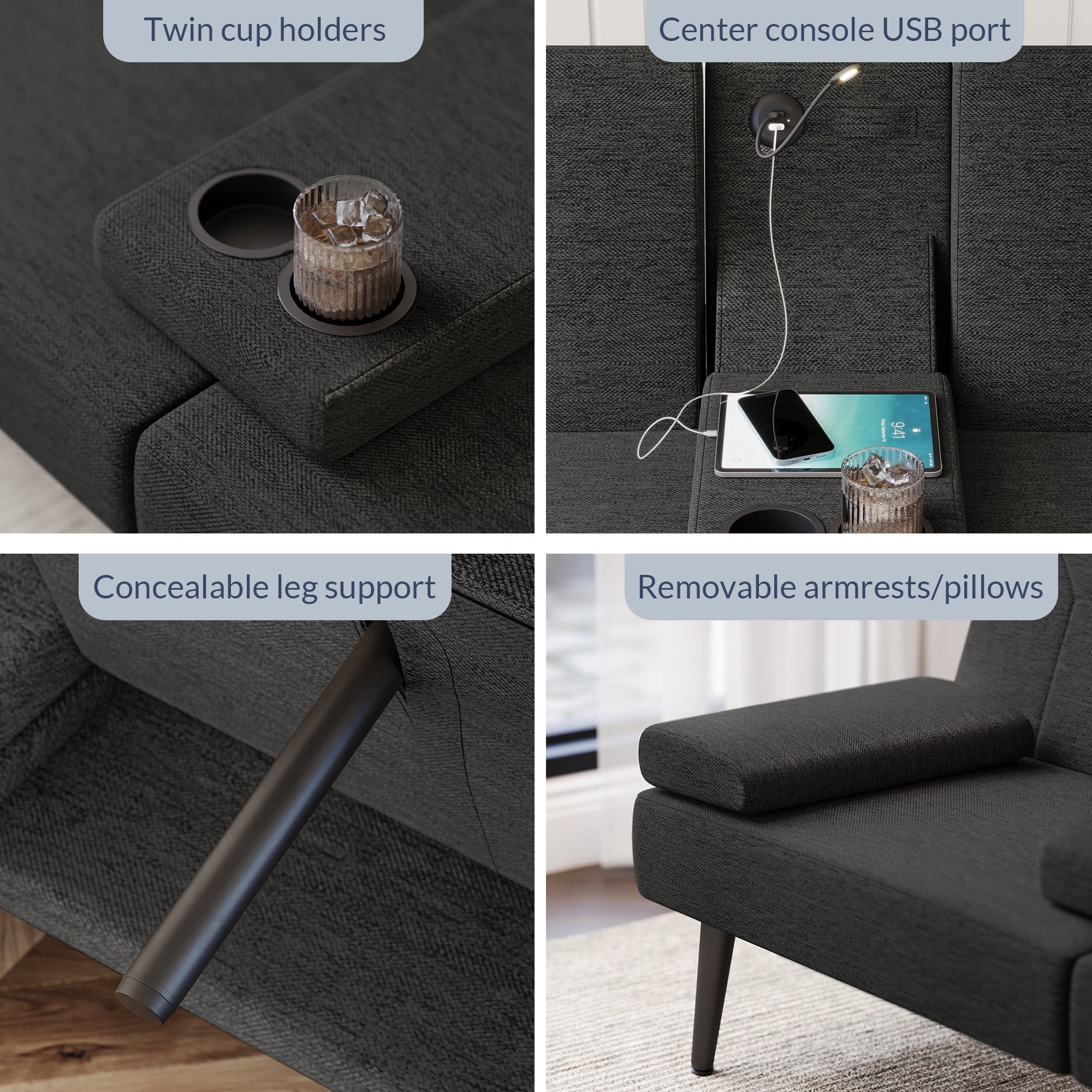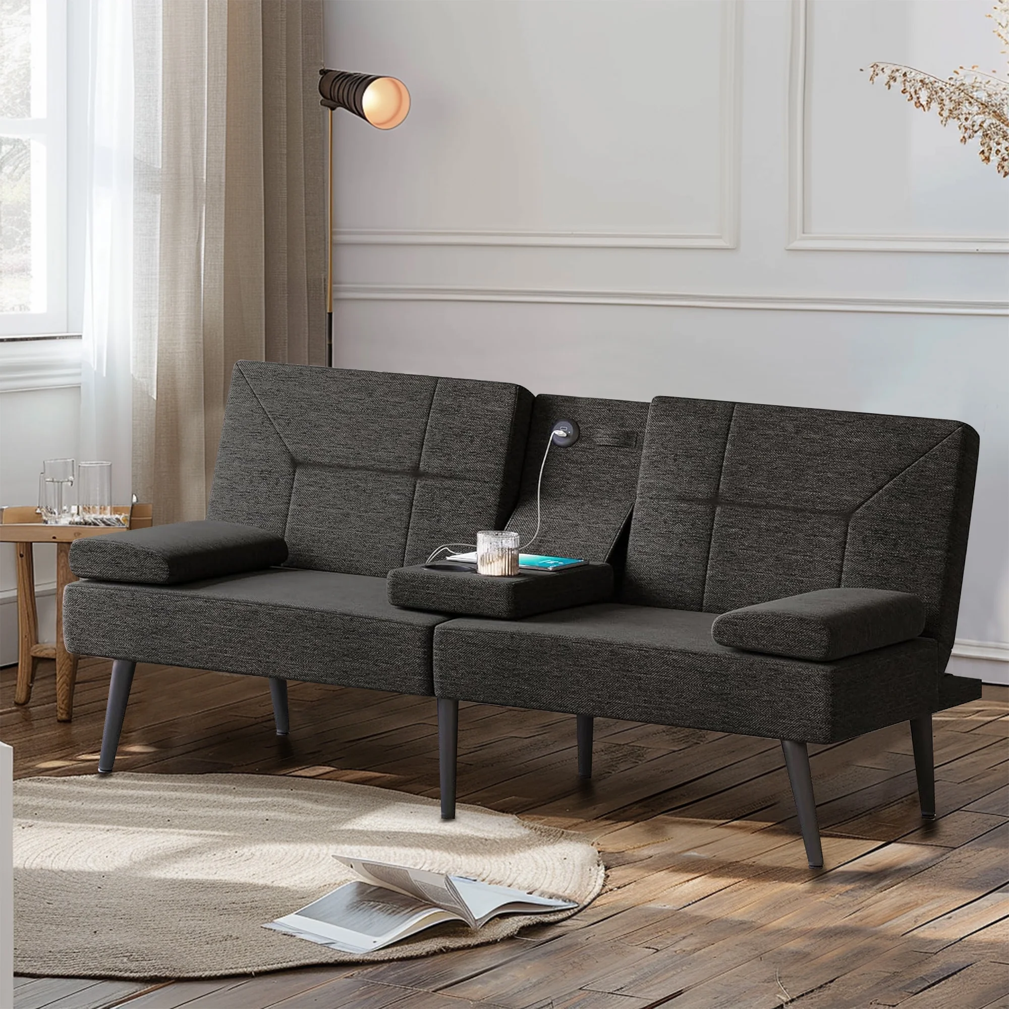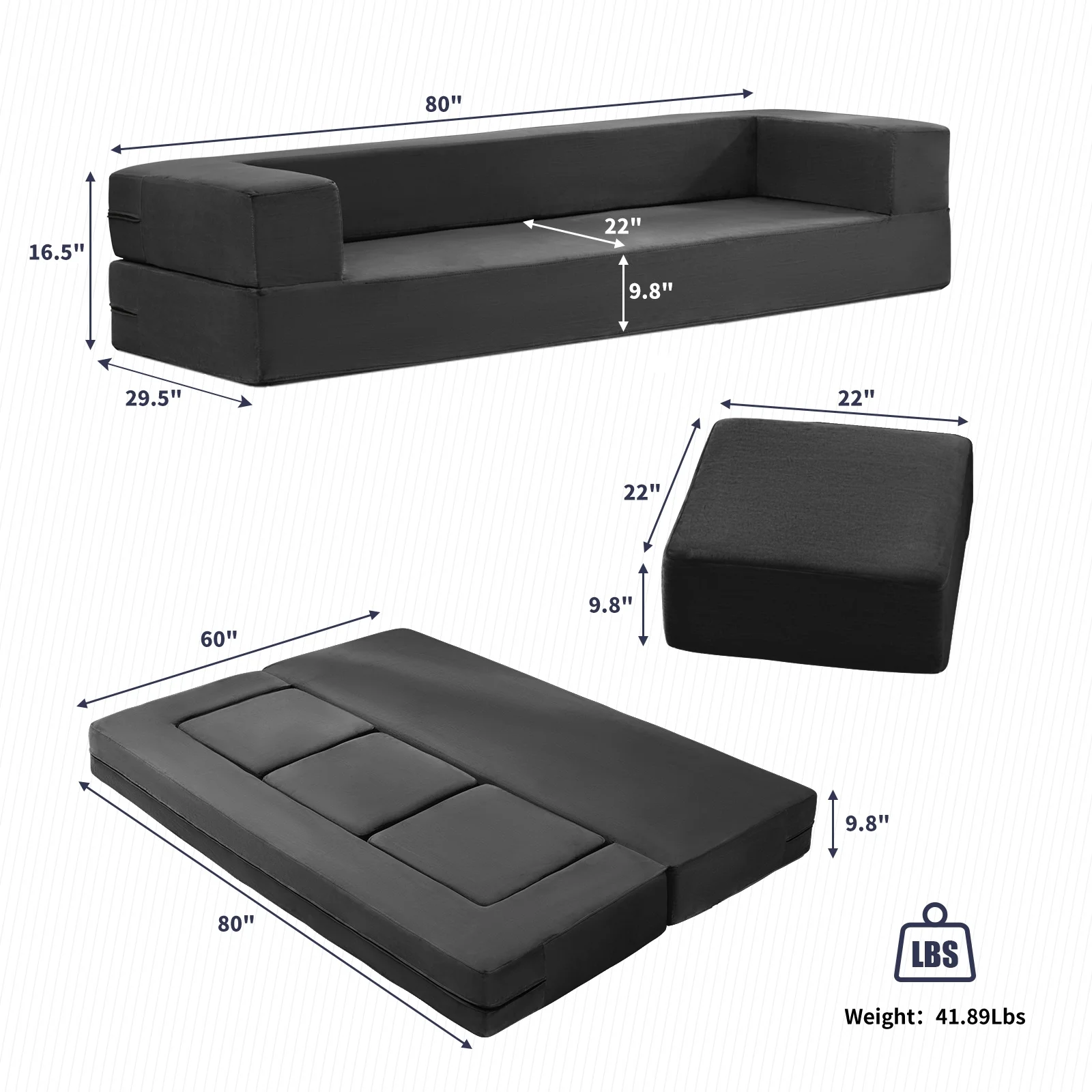 Ainfox Convertible Futon Sofa Bed Sleeper Sofa Chair Couch Folding Ottoman Back Adjustable for Living Room Dark Grey