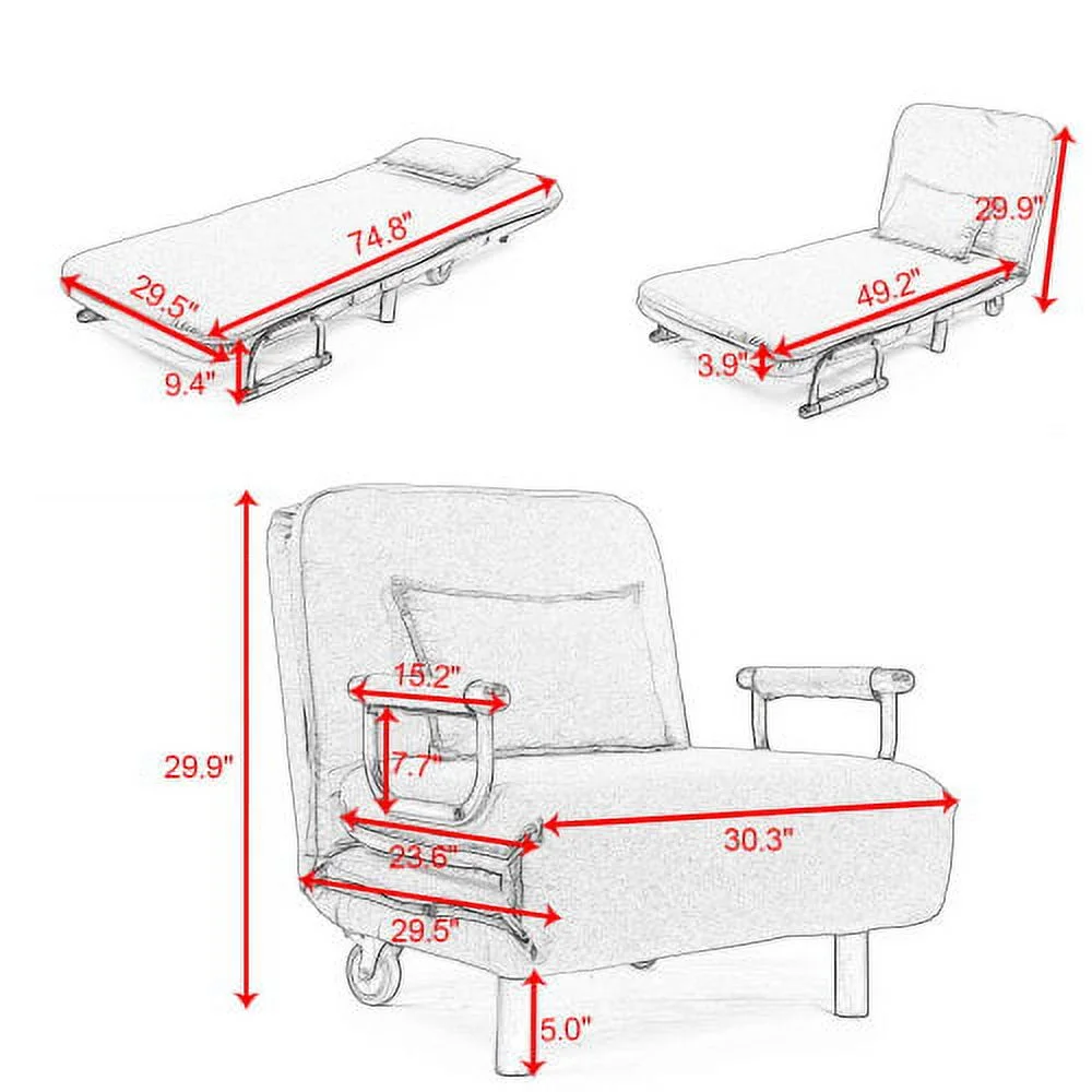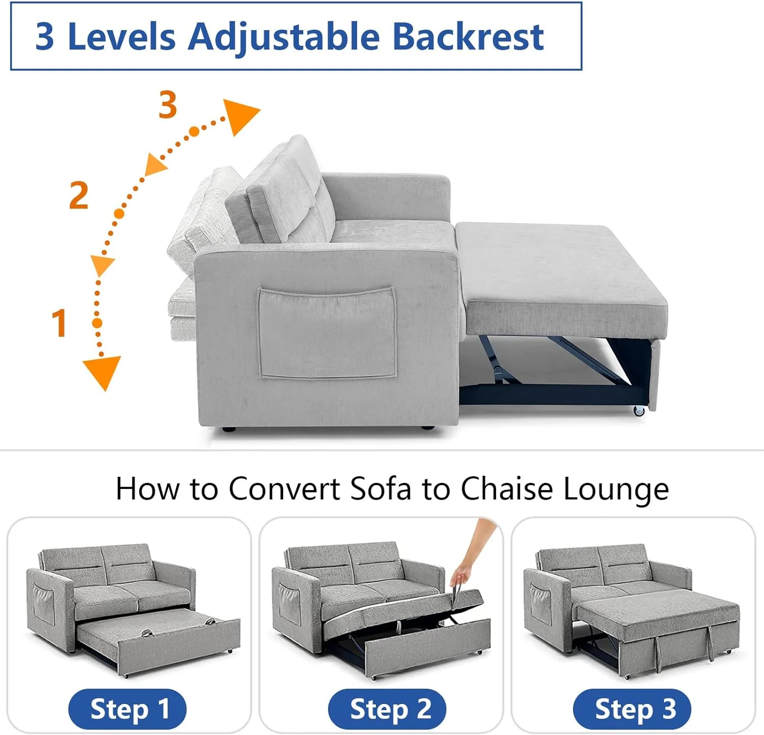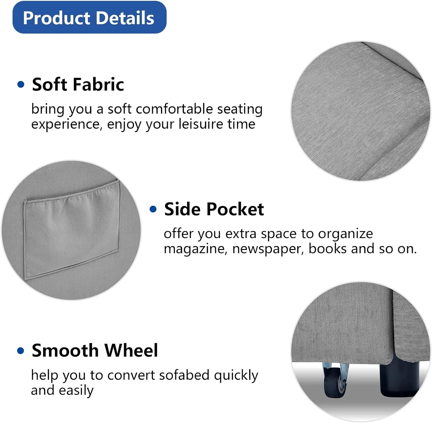 Lofka Sofa Bed, Convertible Chair Bed 3 in 1 Couch Recliner for Home Furniture or Office, Gray