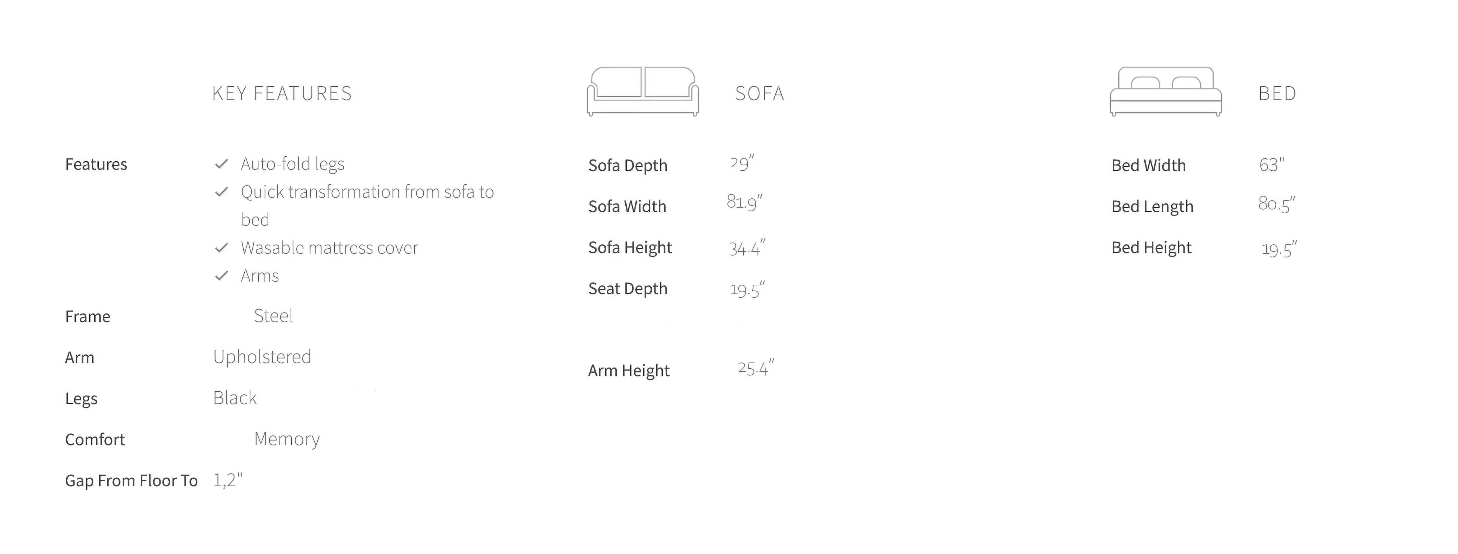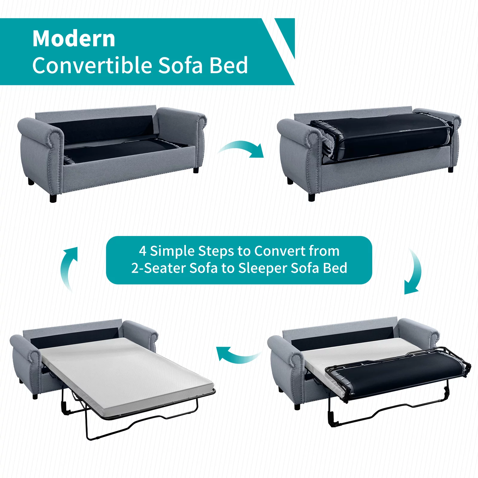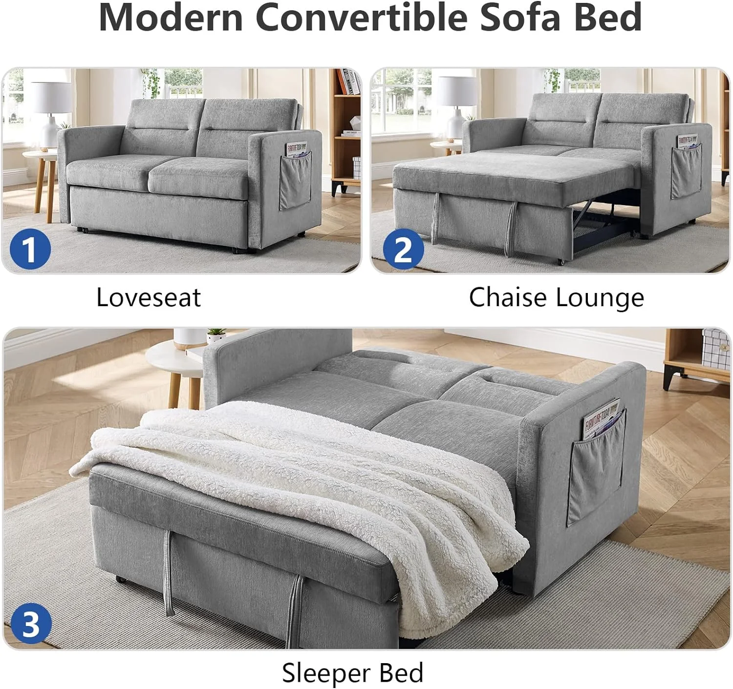 Lofka Sofa Bed, Convertible Chair Bed 3 in 1 Couch Recliner for Home Furniture or Office, Gray