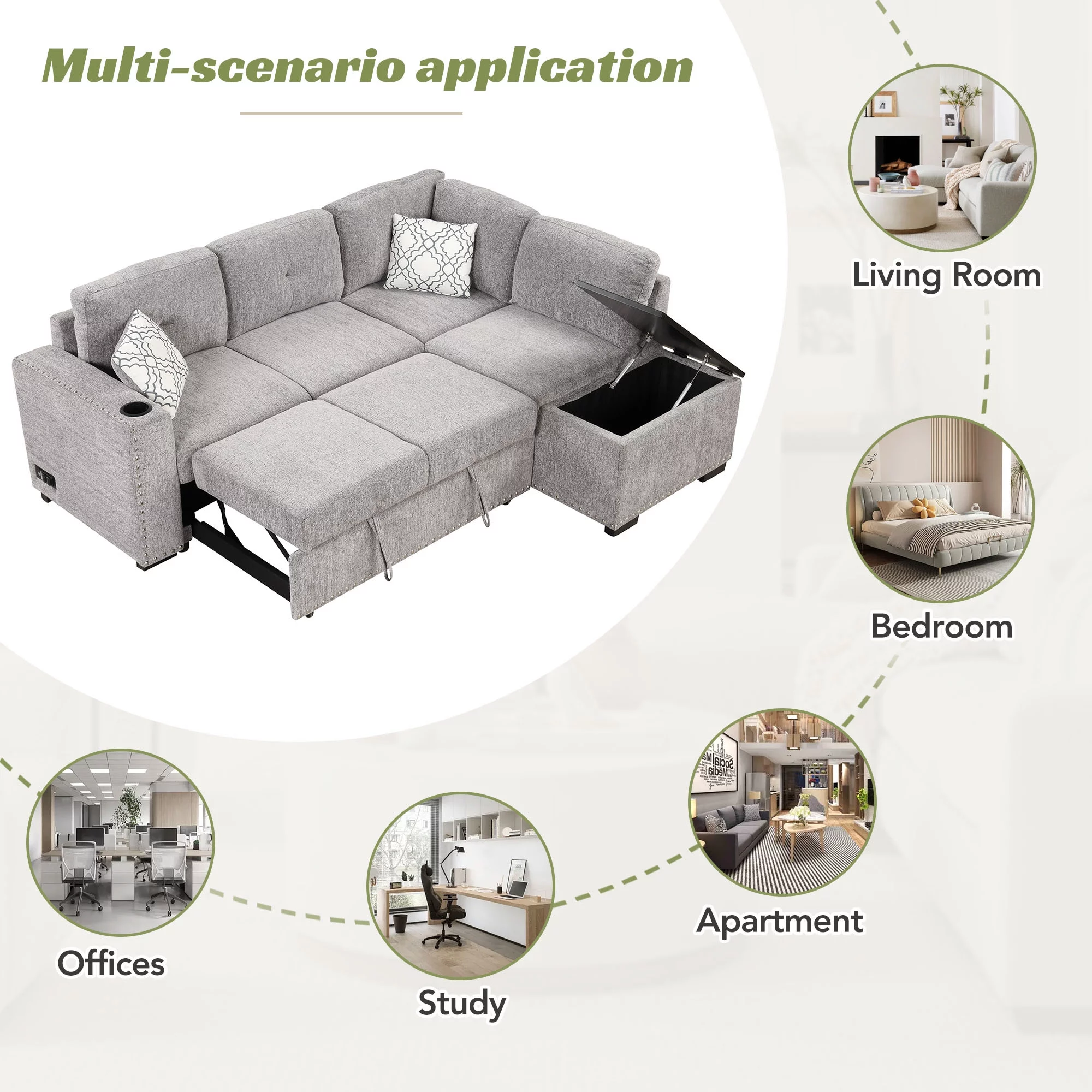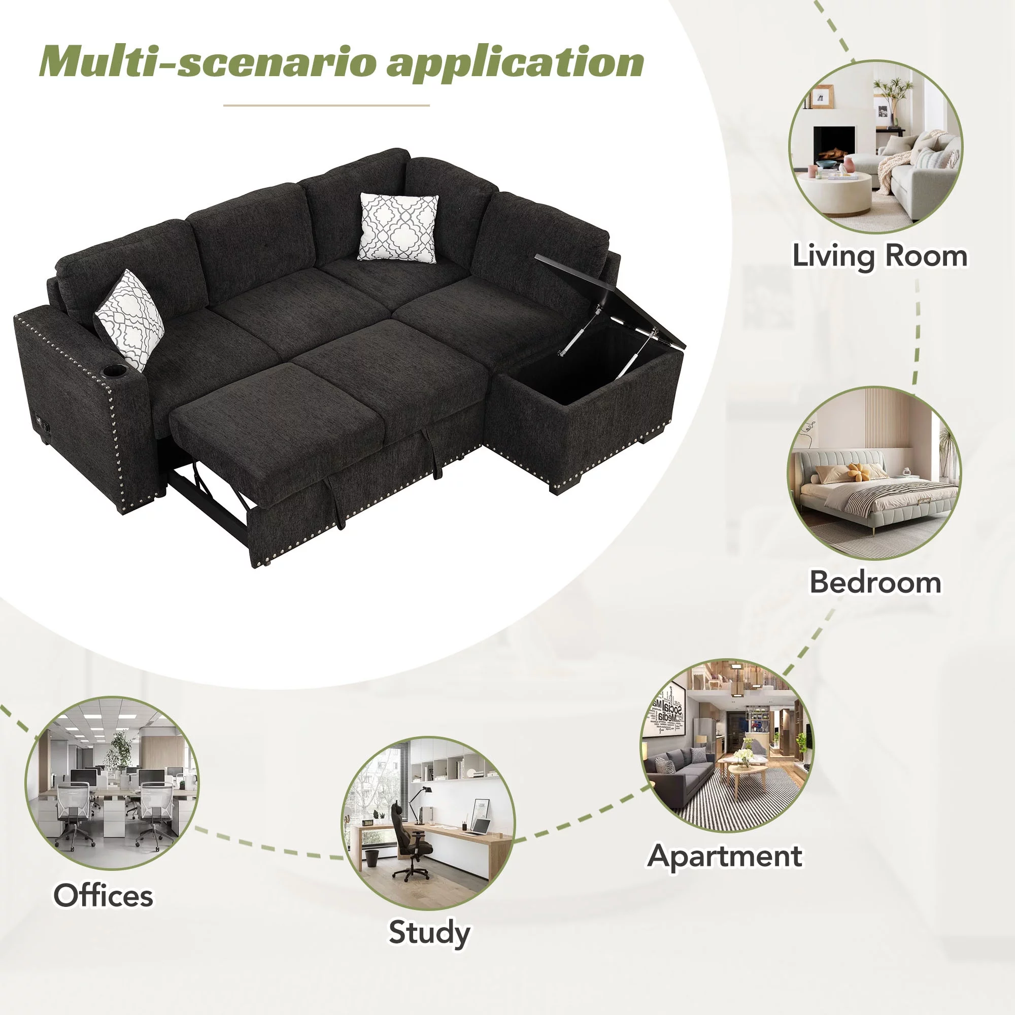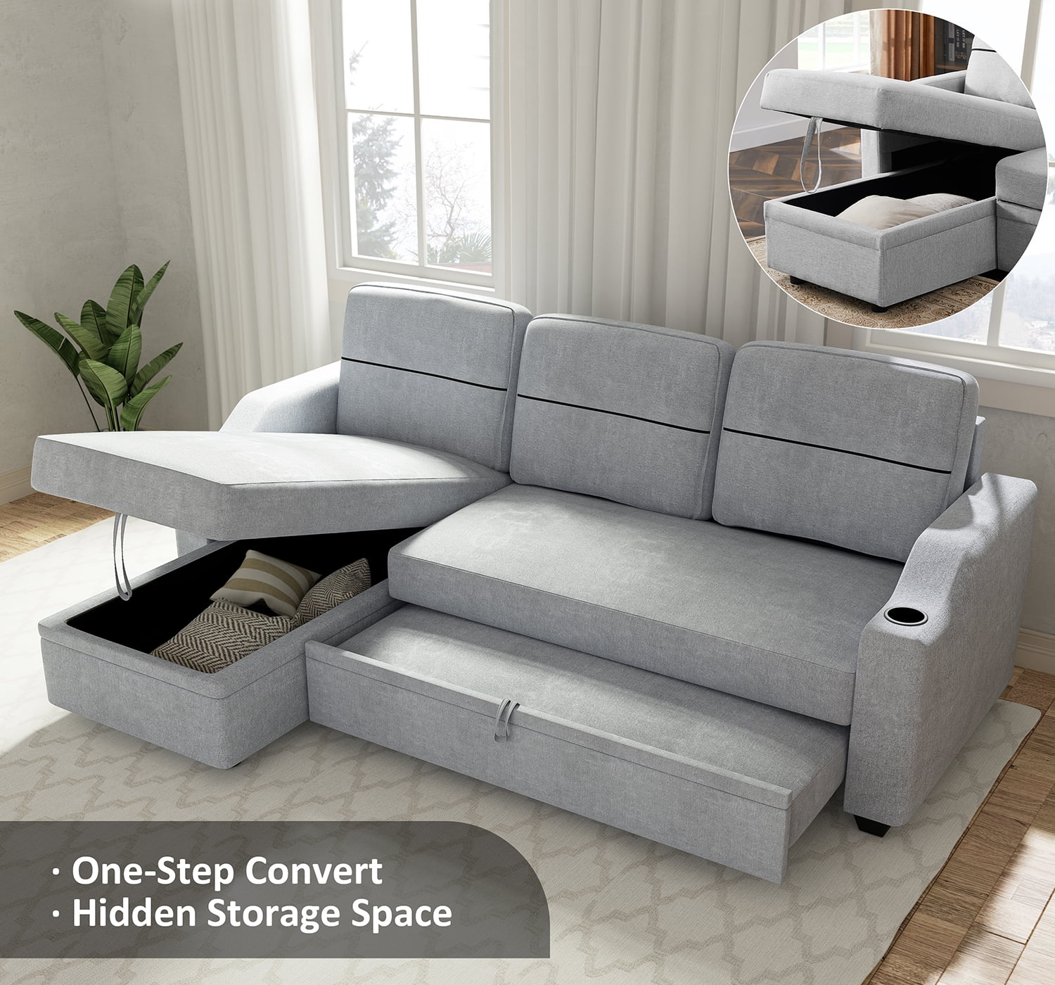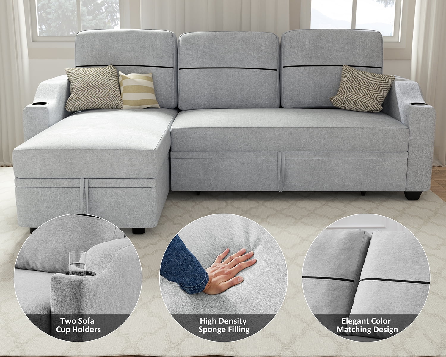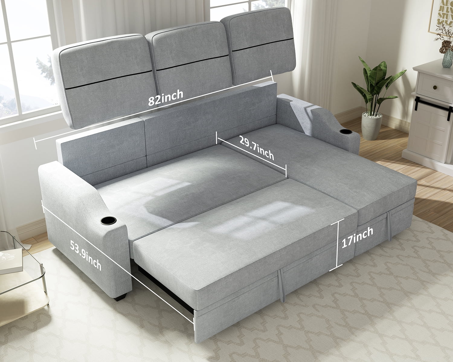 Ucloveria Pull Out Sectional Sofa Bed with Storage Chasie, Cup Holder. 82'' Modern L-Shape Living Room Couch Sofa
