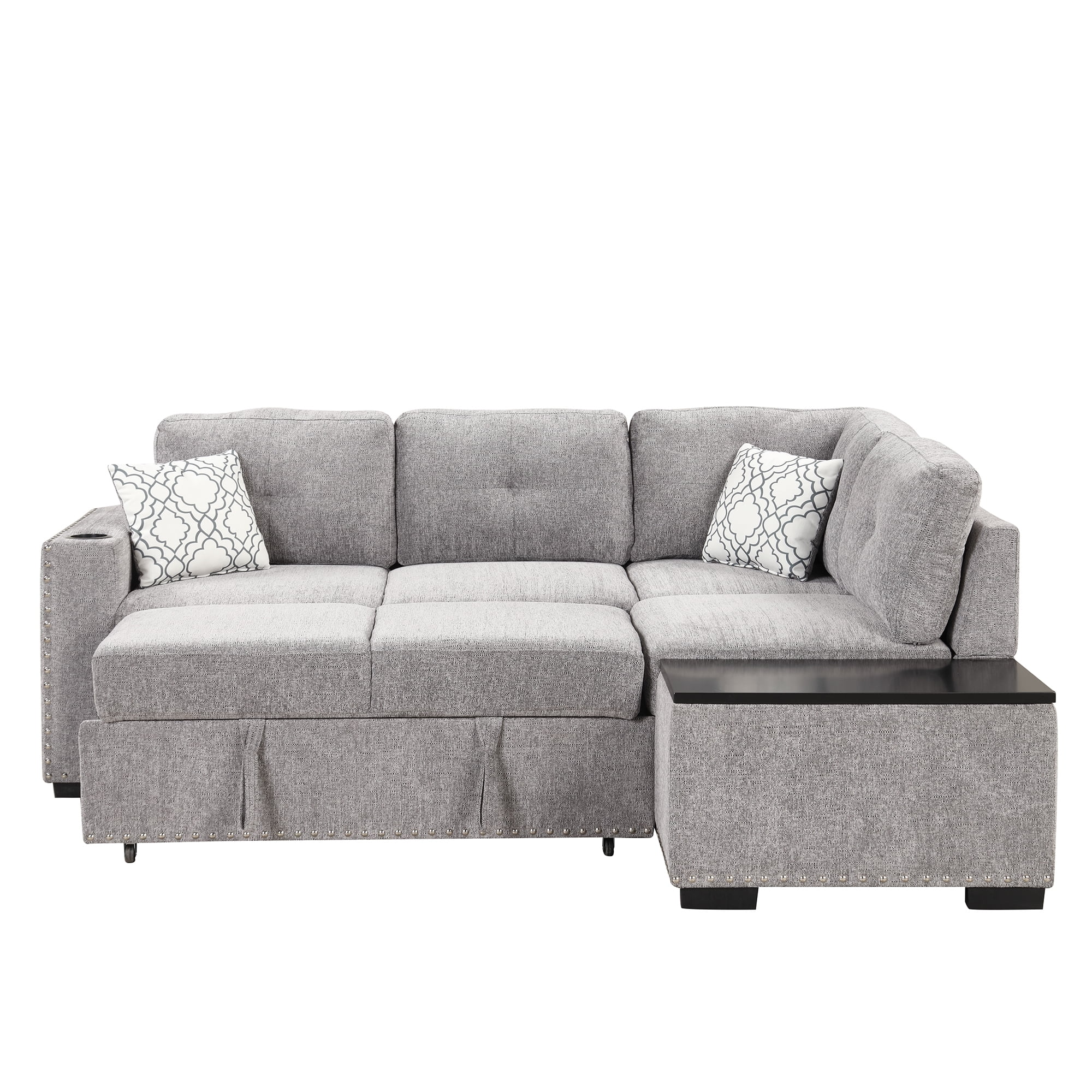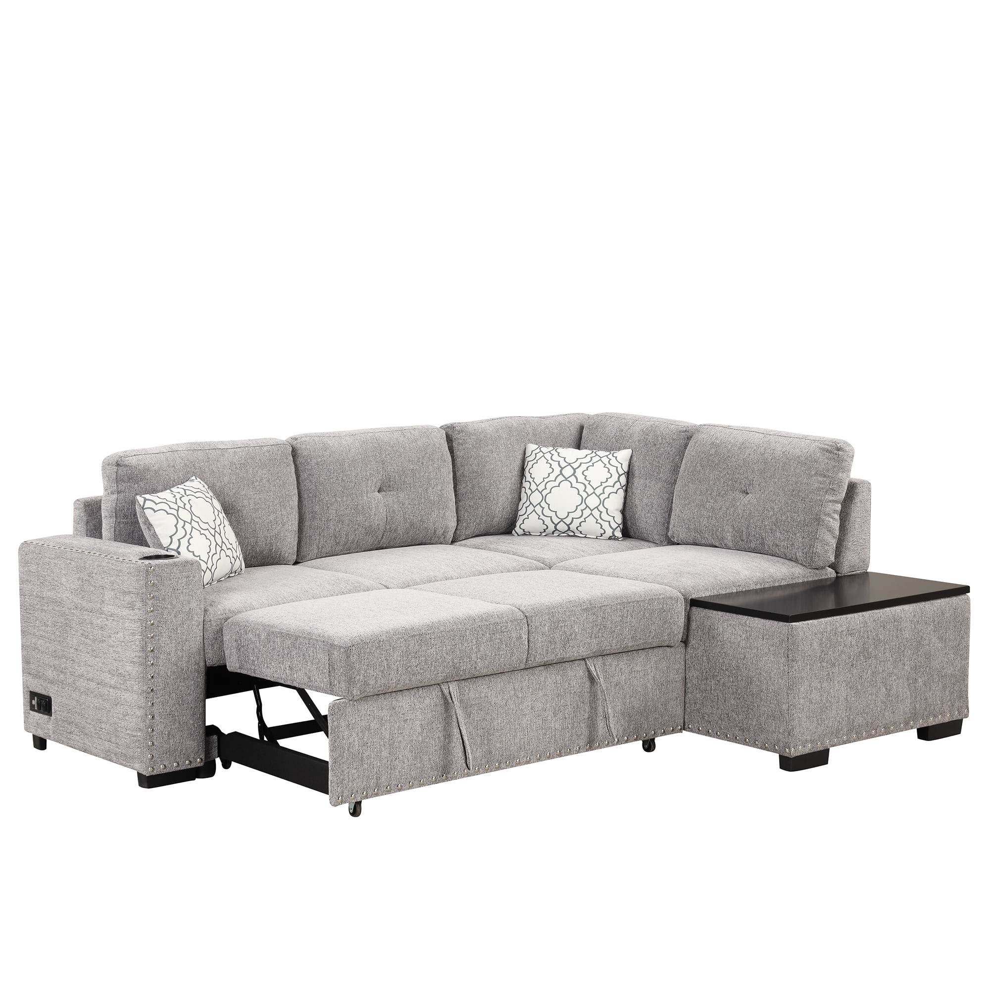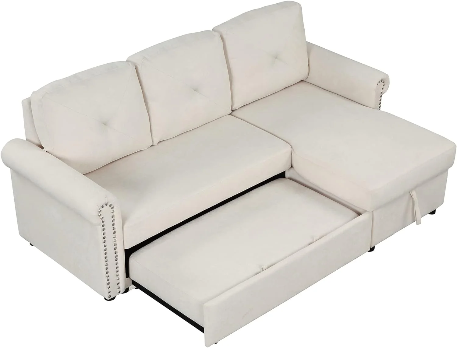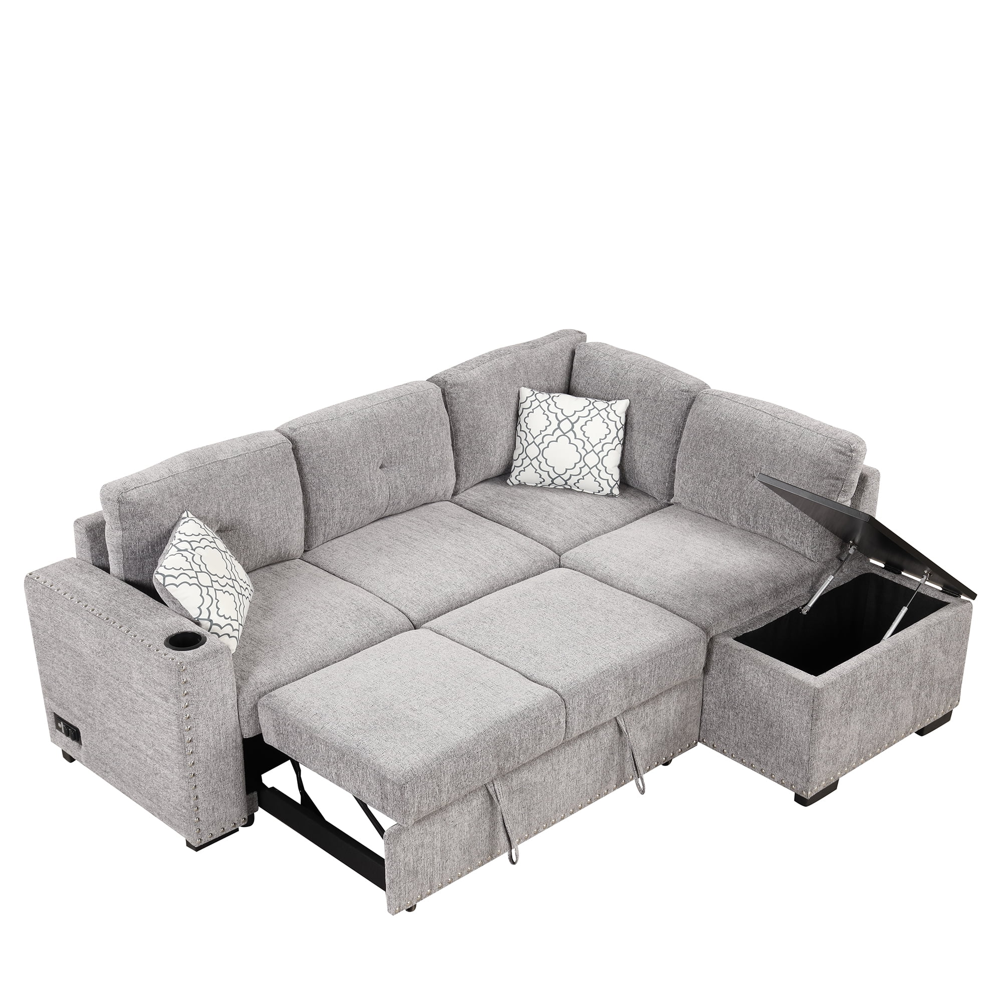 Ucloveria Pull Out Sectional Sofa Bed with Storage Chasie, Cup Holder. 82'' Modern L-Shape Living Room Couch Sofa