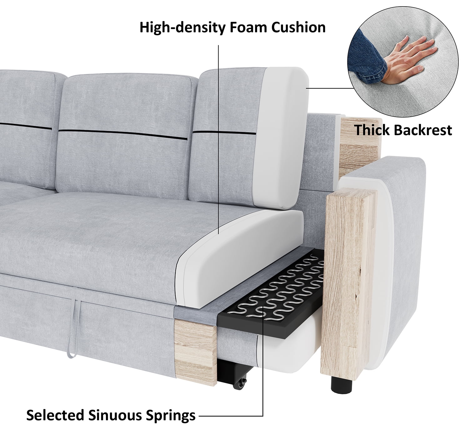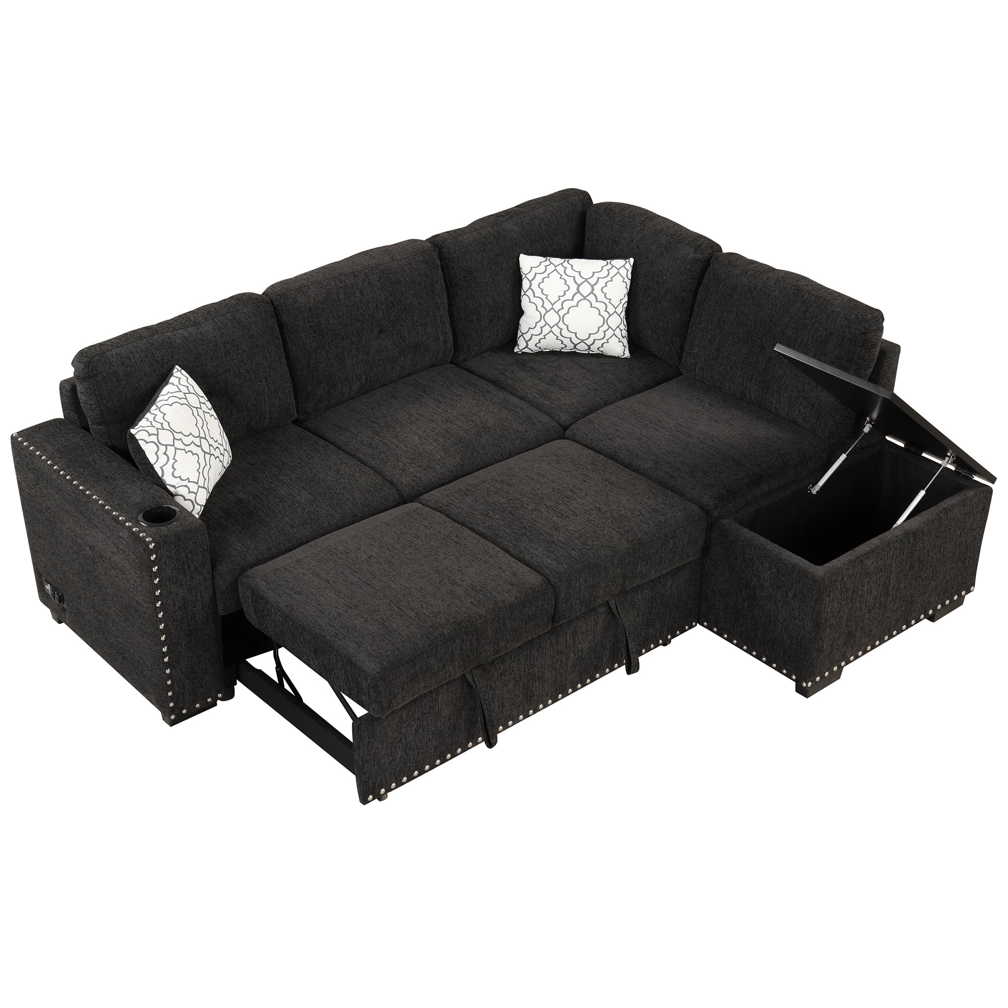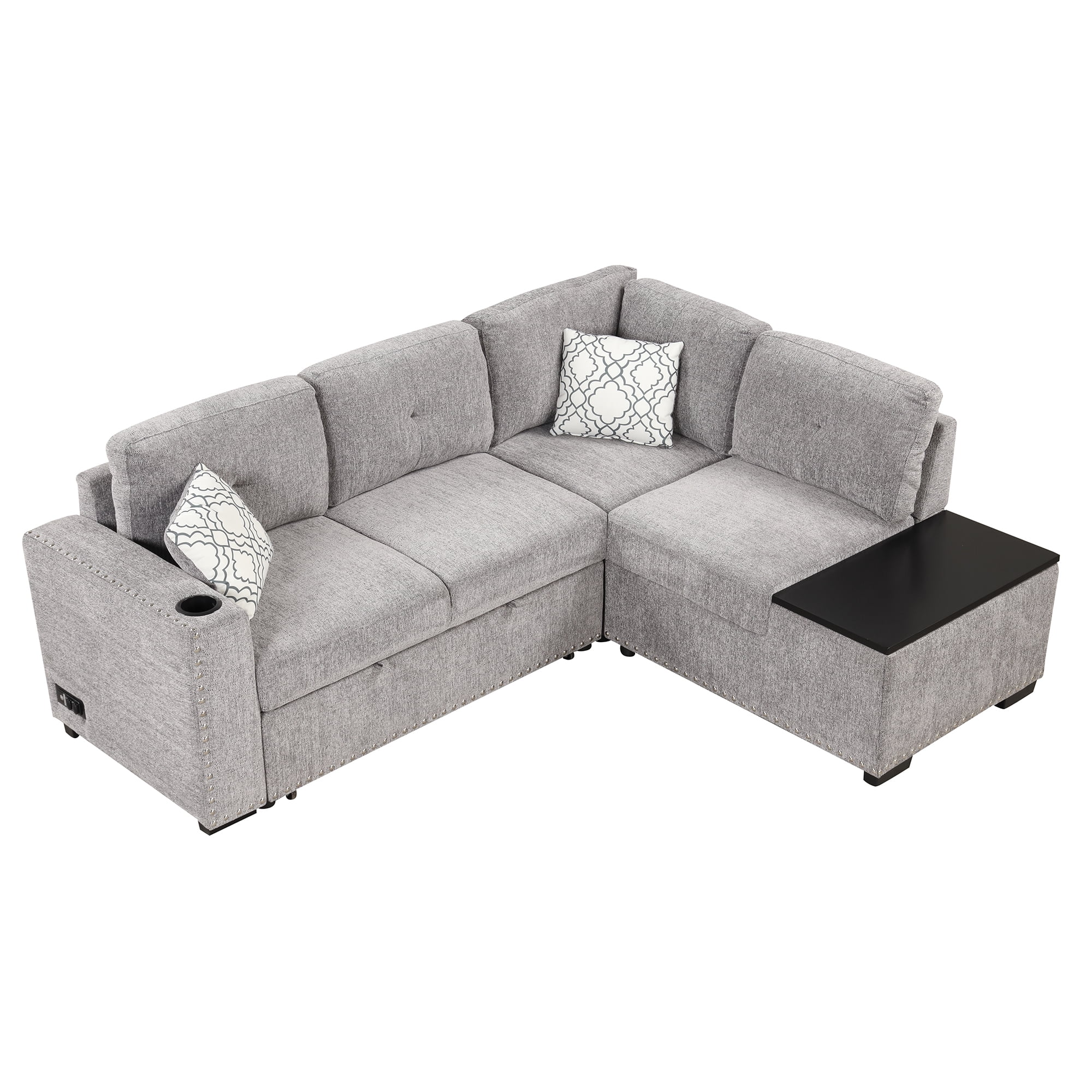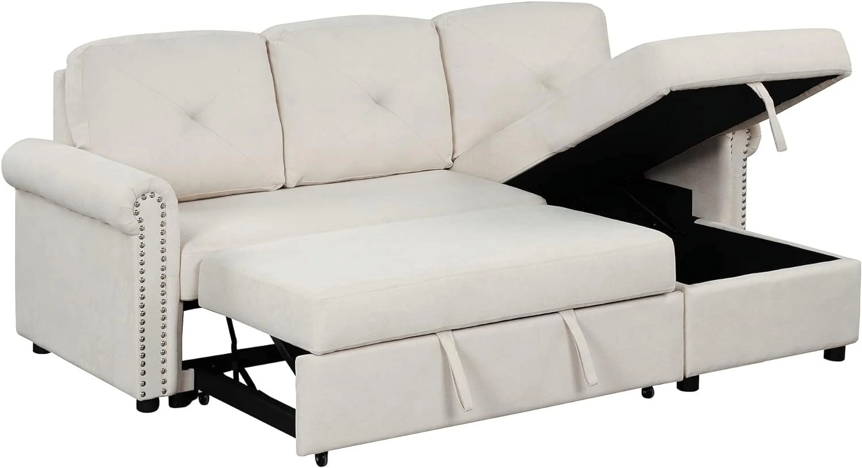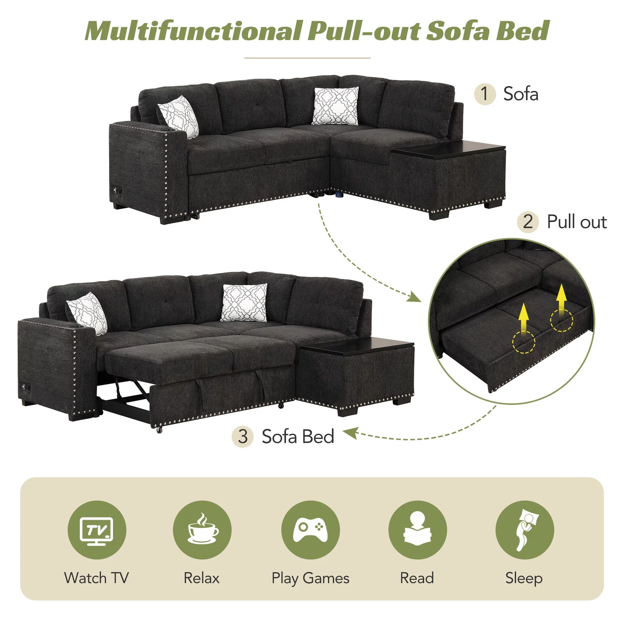 Ucloveria Pull Out Sectional Sofa Bed with Storage Chasie, Cup Holder. 82'' Modern L-Shape Living Room Couch Sofa