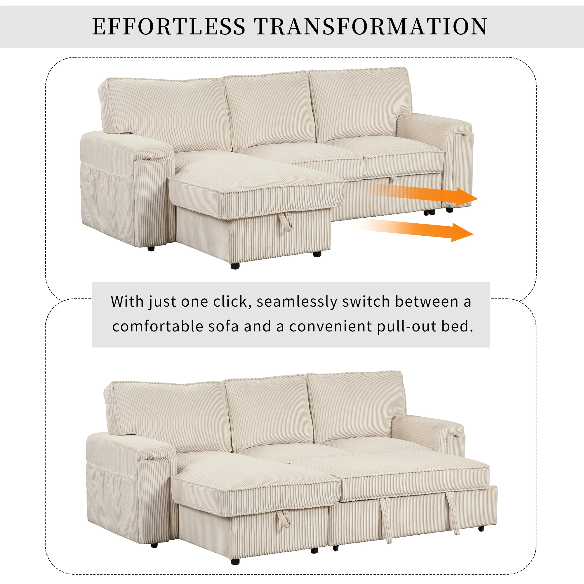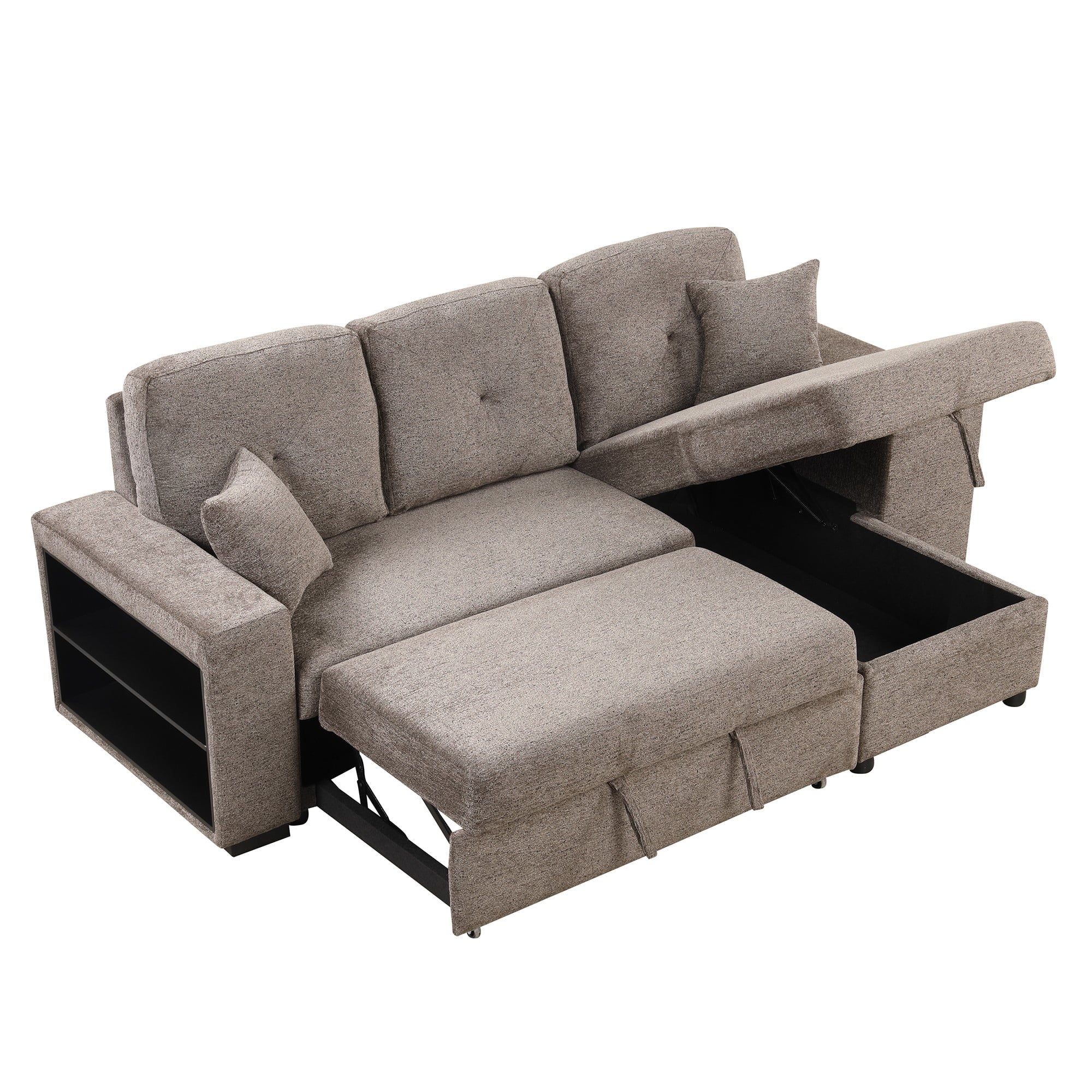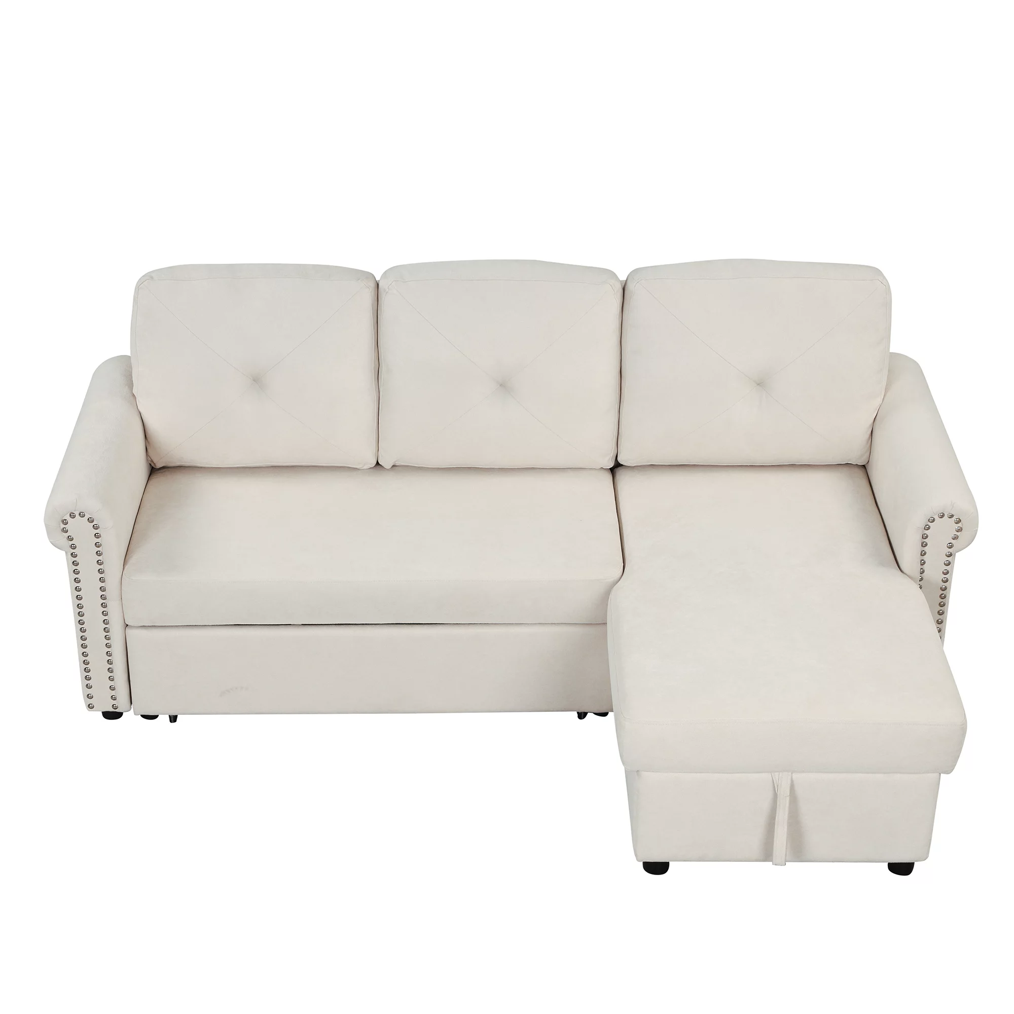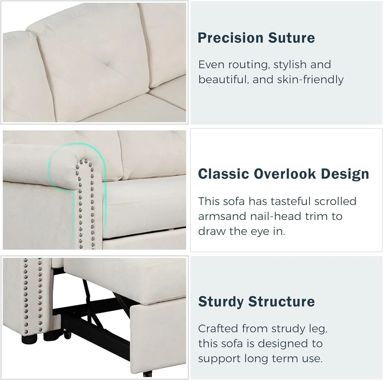 Ucloveria Pull Out Sectional Sofa Bed with Storage Chasie, Cup Holder. 82'' Modern L-Shape Living Room Couch Sofa
