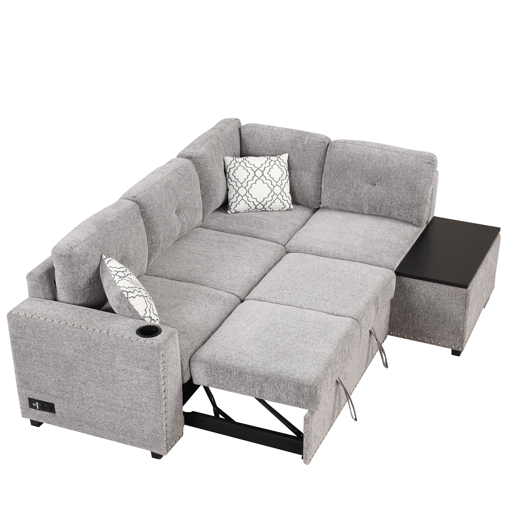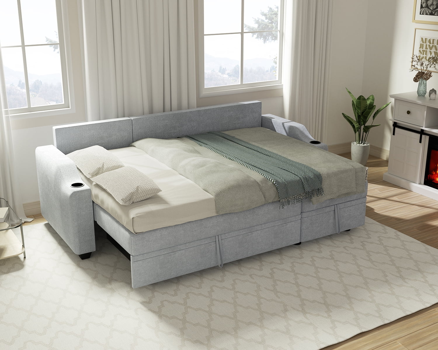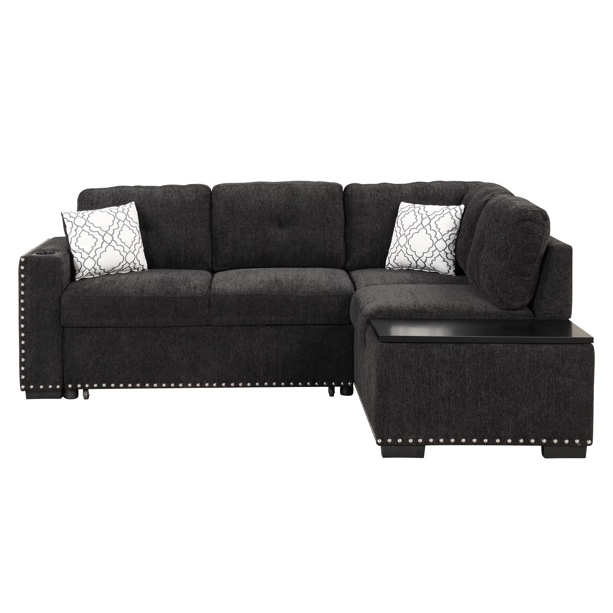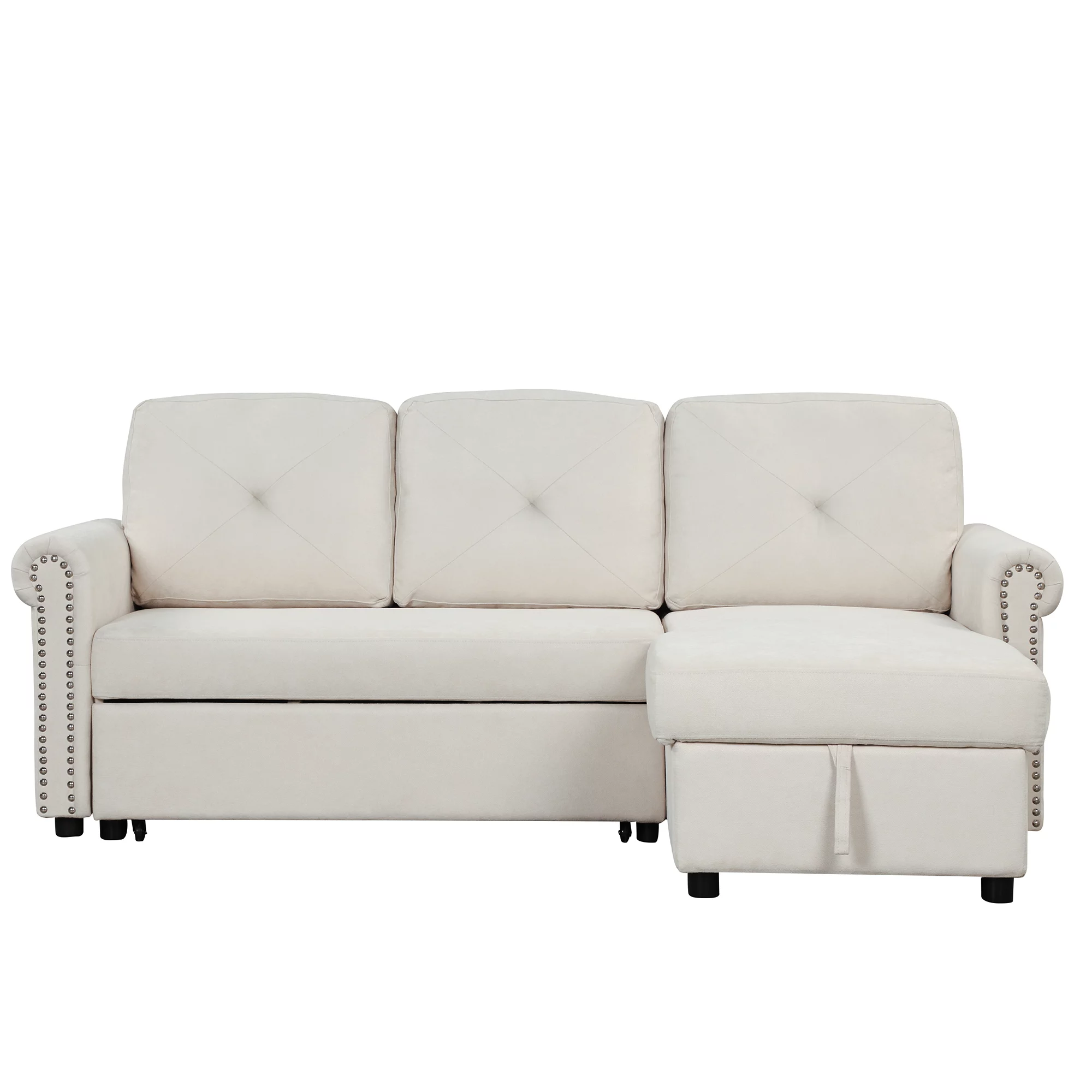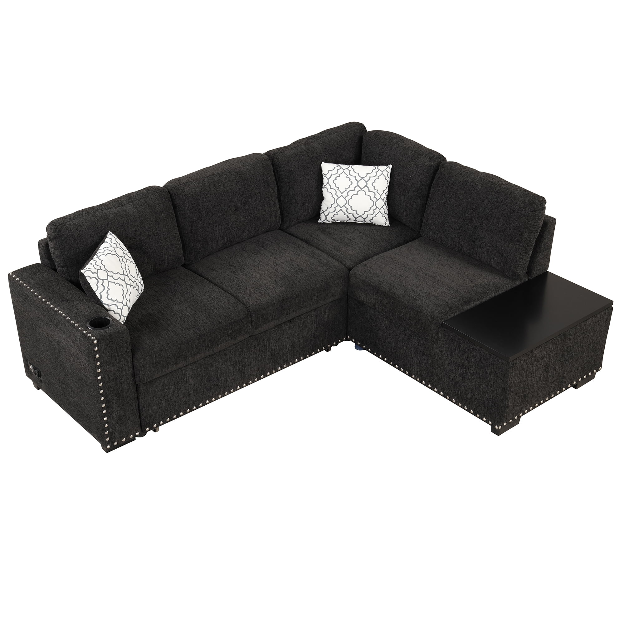 Ucloveria Pull Out Sectional Sofa Bed with Storage Chasie, Cup Holder. 82'' Modern L-Shape Living Room Couch Sofa
