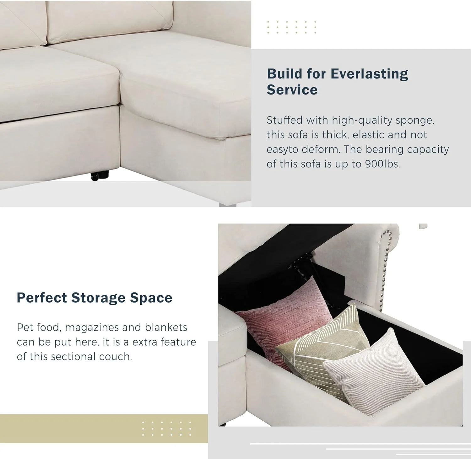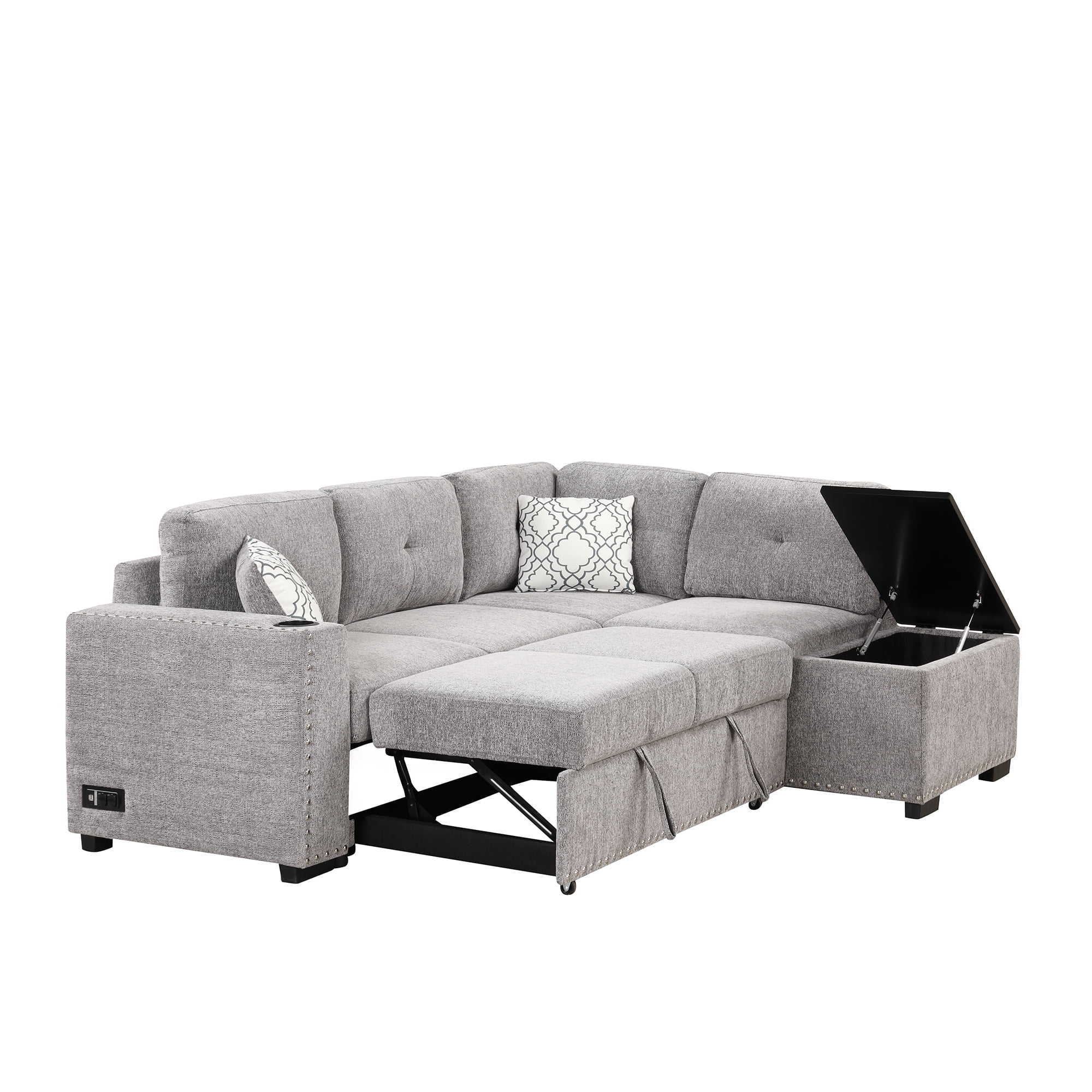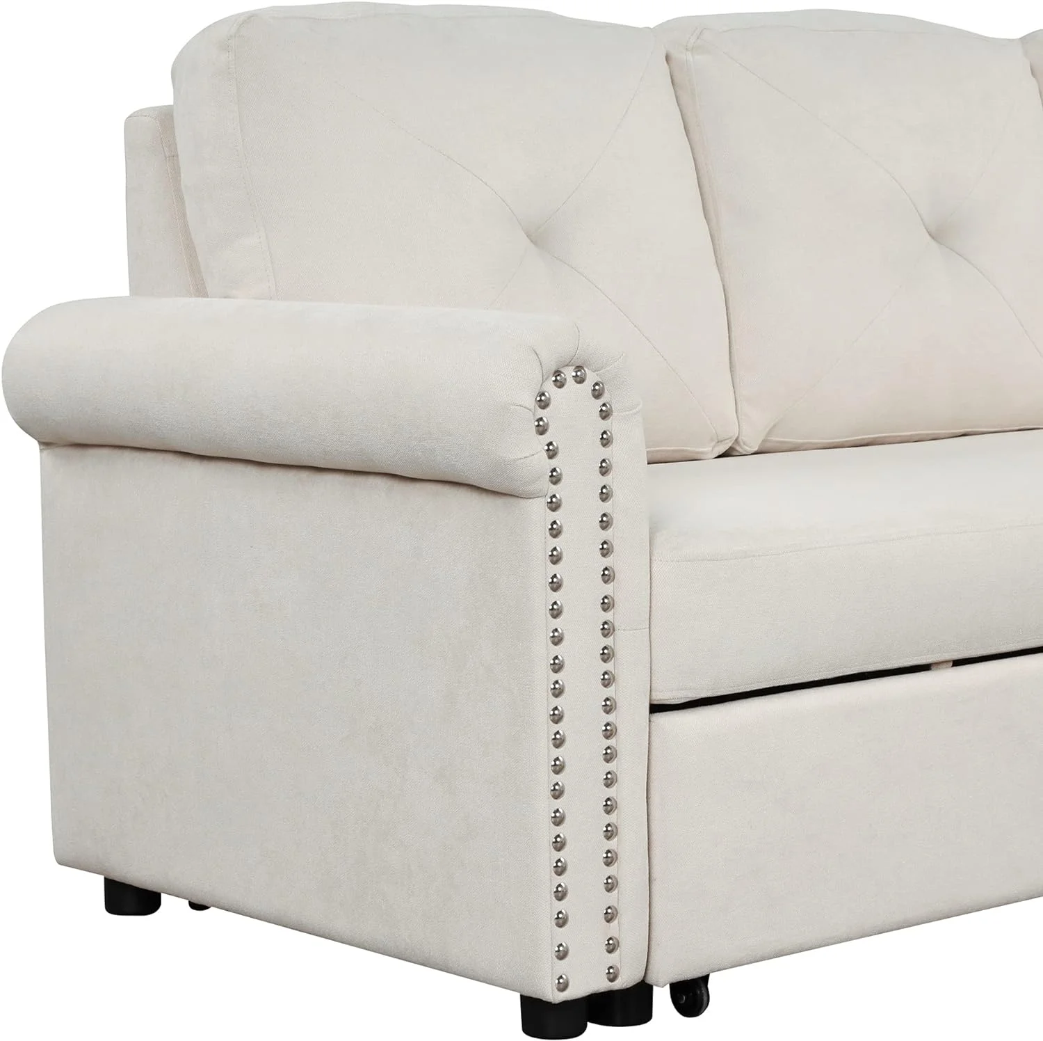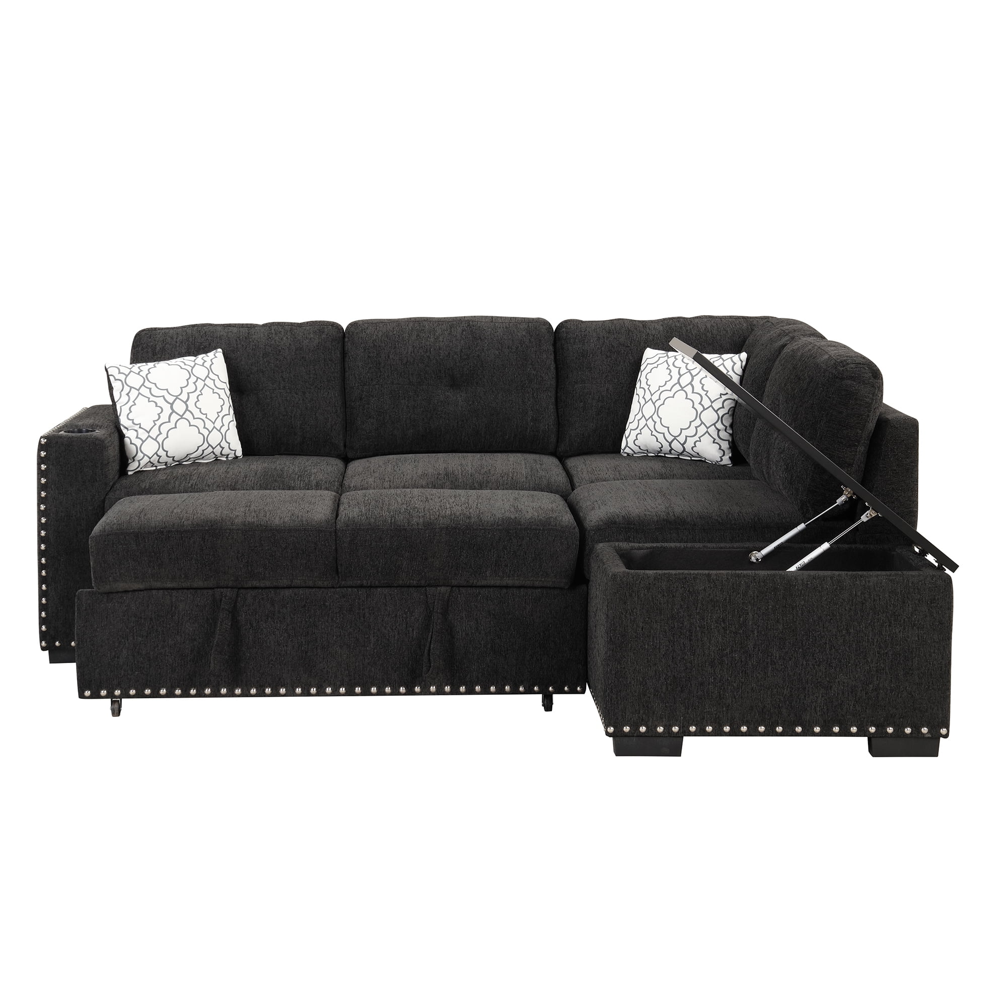 Ucloveria Pull Out Sectional Sofa Bed with Storage Chasie, Cup Holder. 82'' Modern L-Shape Living Room Couch Sofa