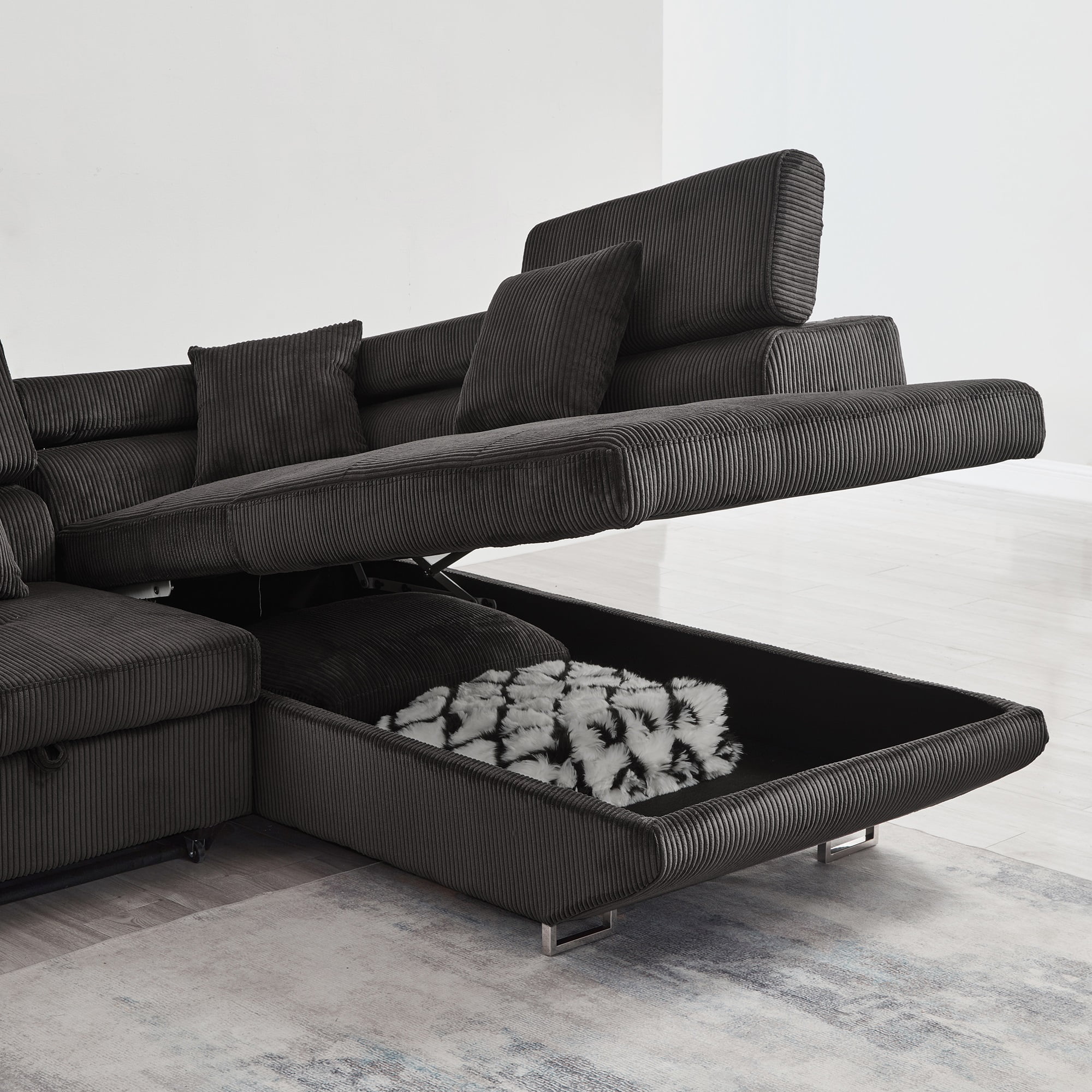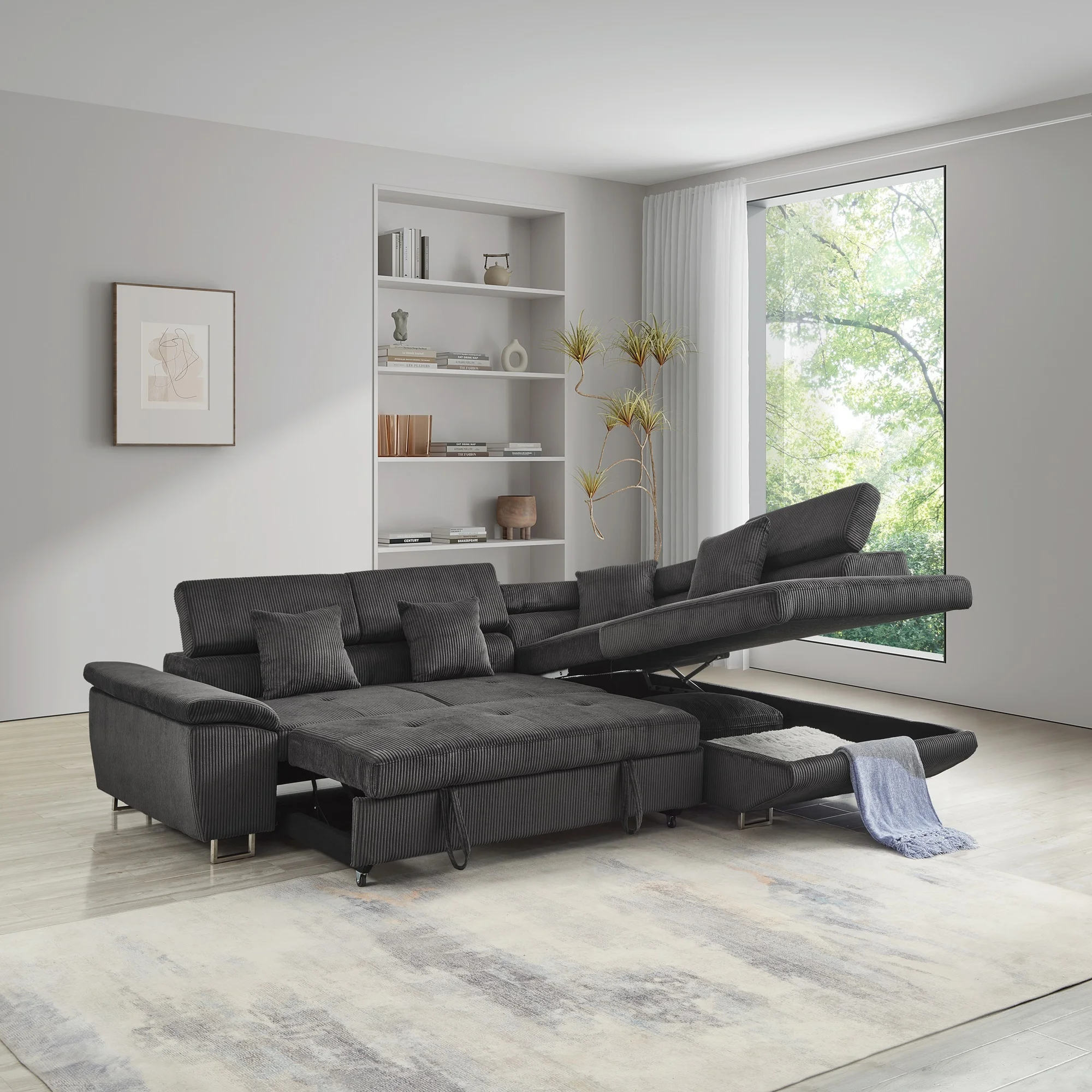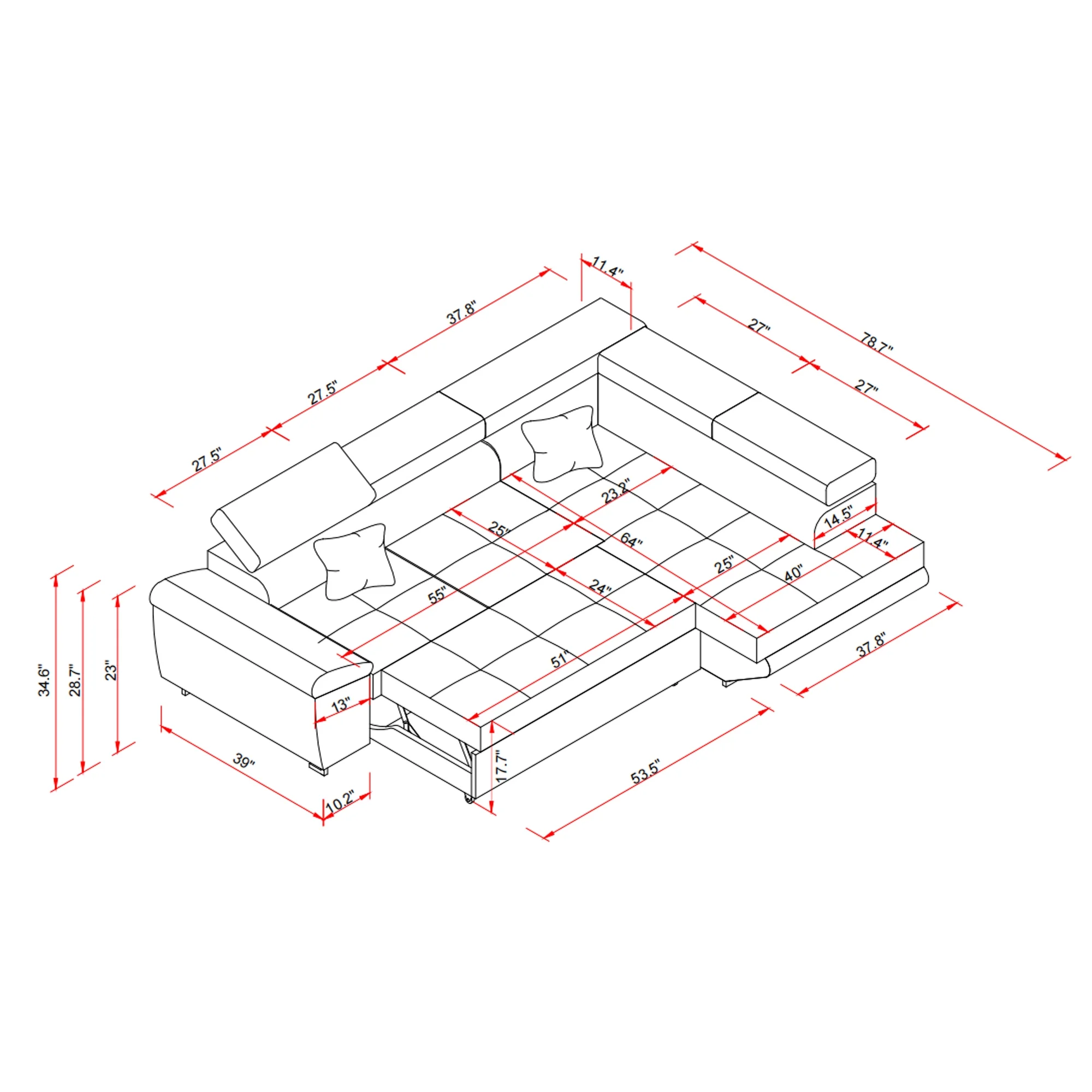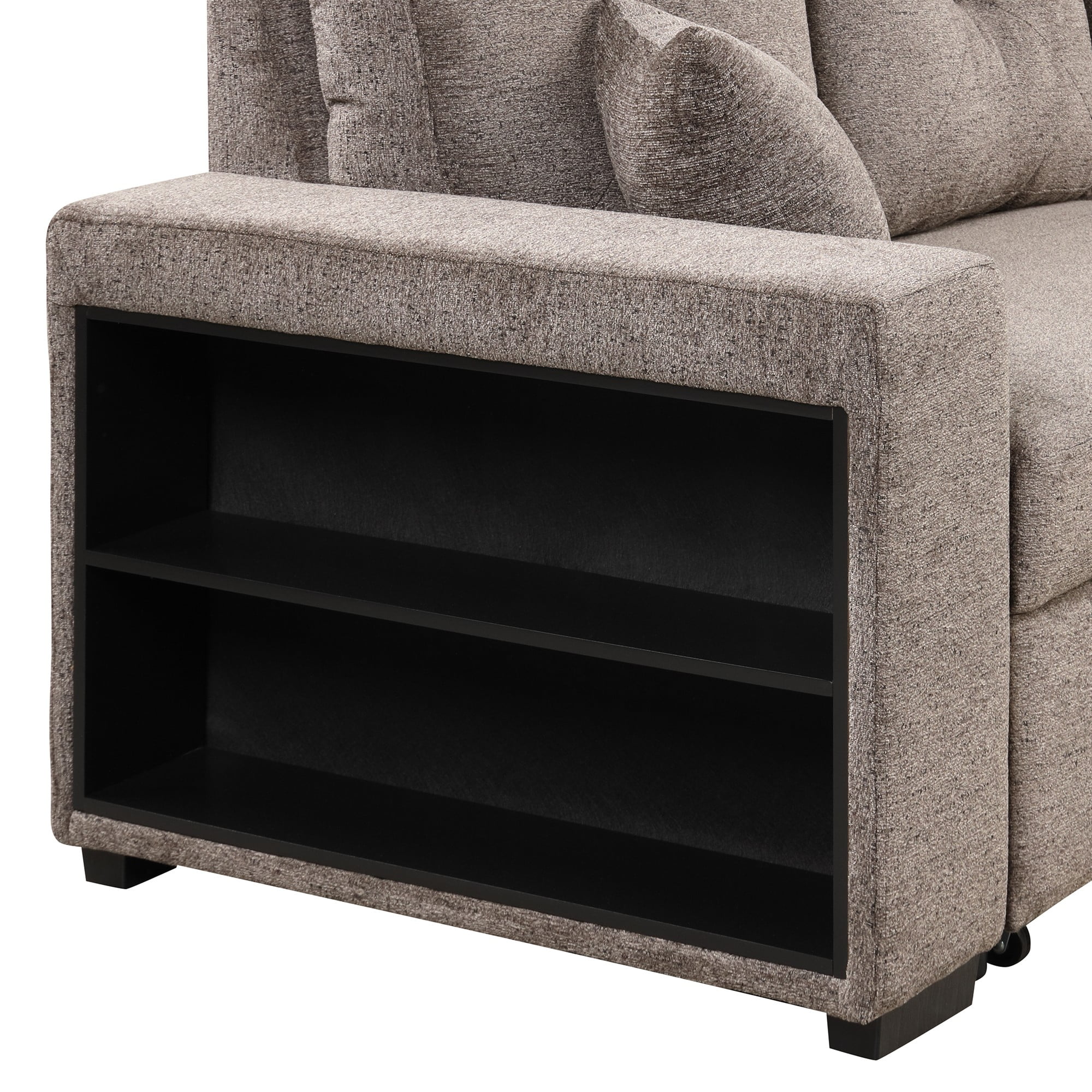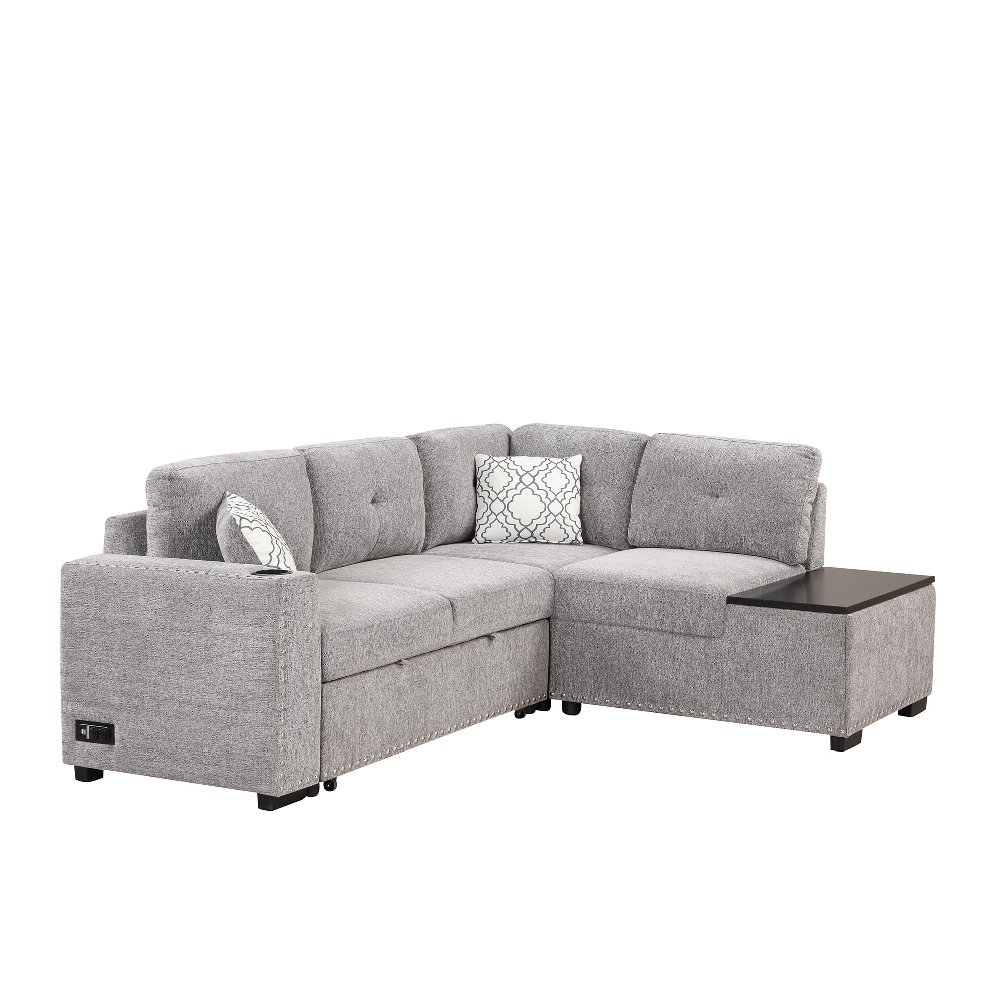 Ucloveria Pull Out Sectional Sofa Bed with Storage Chasie, Cup Holder. 82'' Modern L-Shape Living Room Couch Sofa