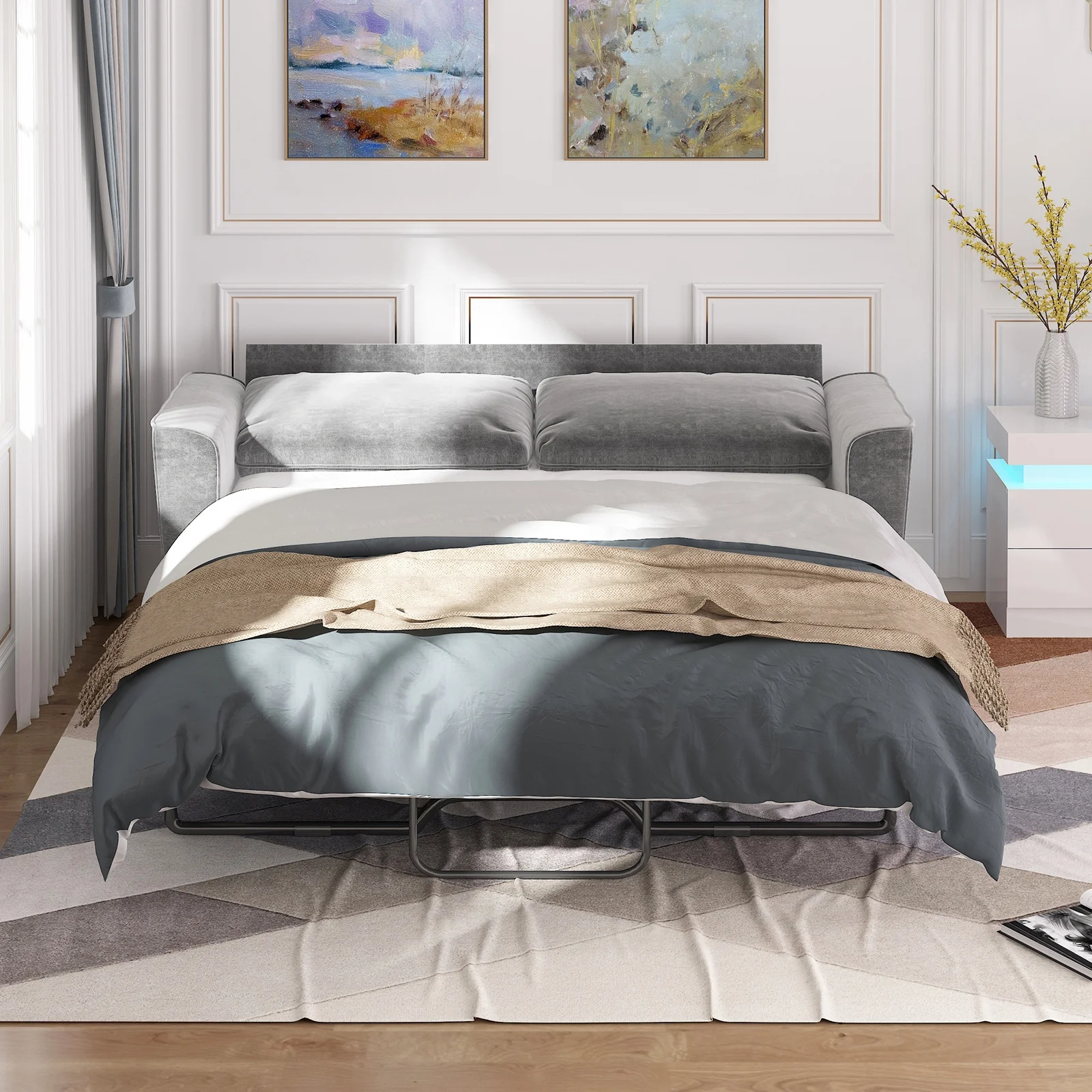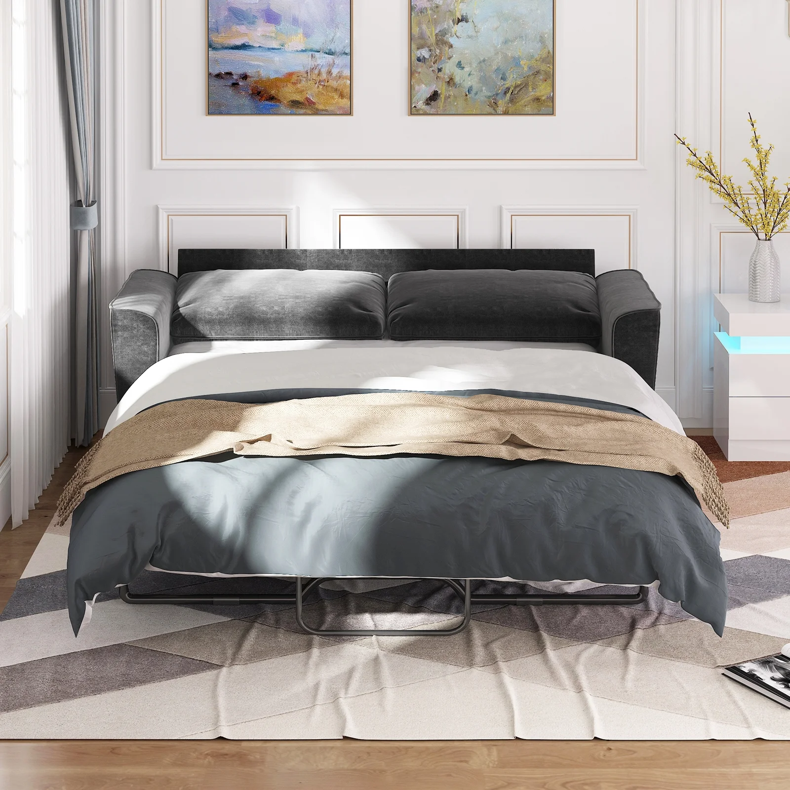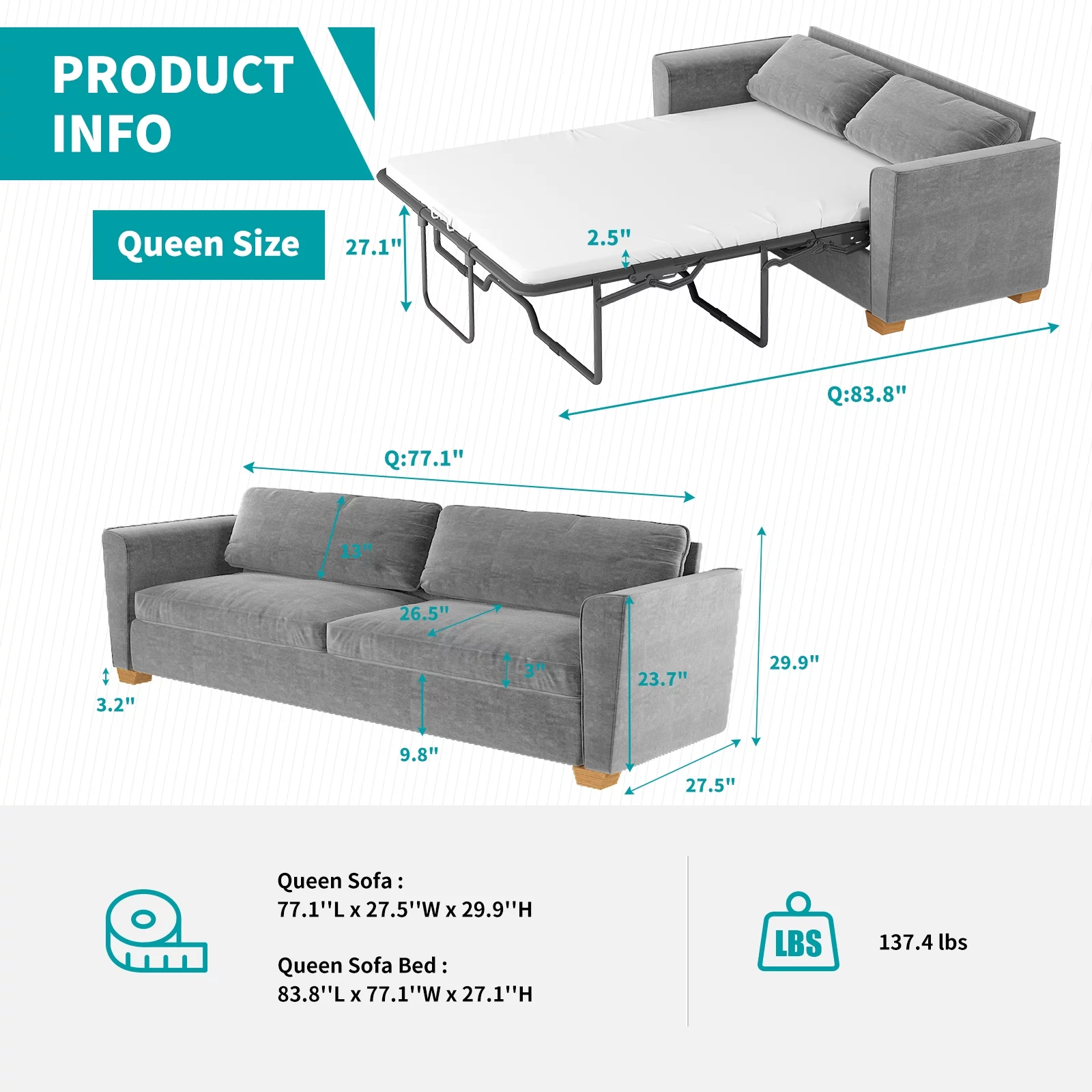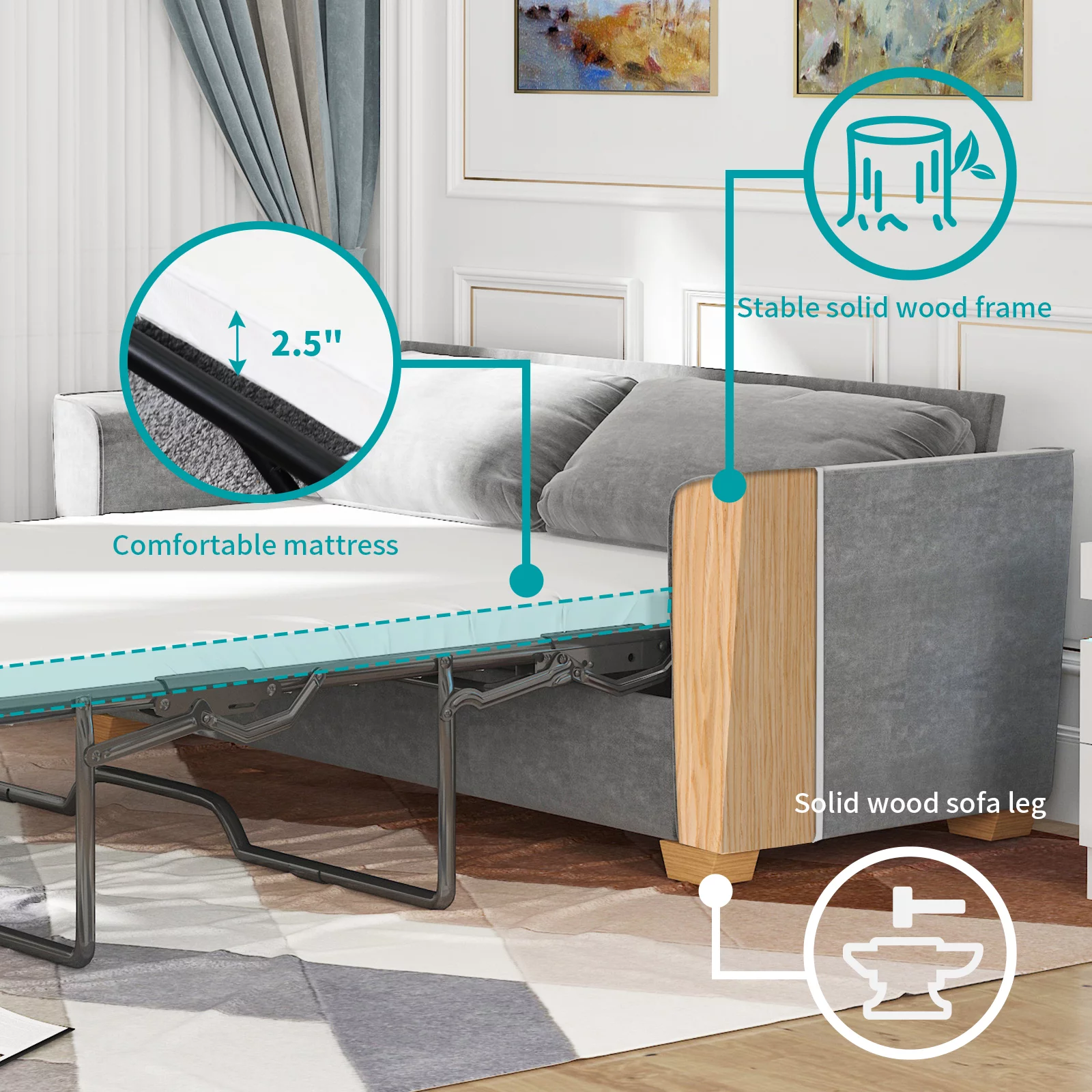 BALUS Pull-Out Sofa Bed, Convertible Sleeper Linen Bed, 2-in-1 Pull Out Couch Bed, Grey/77"W