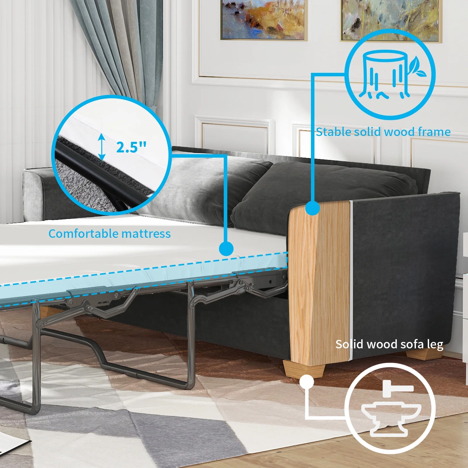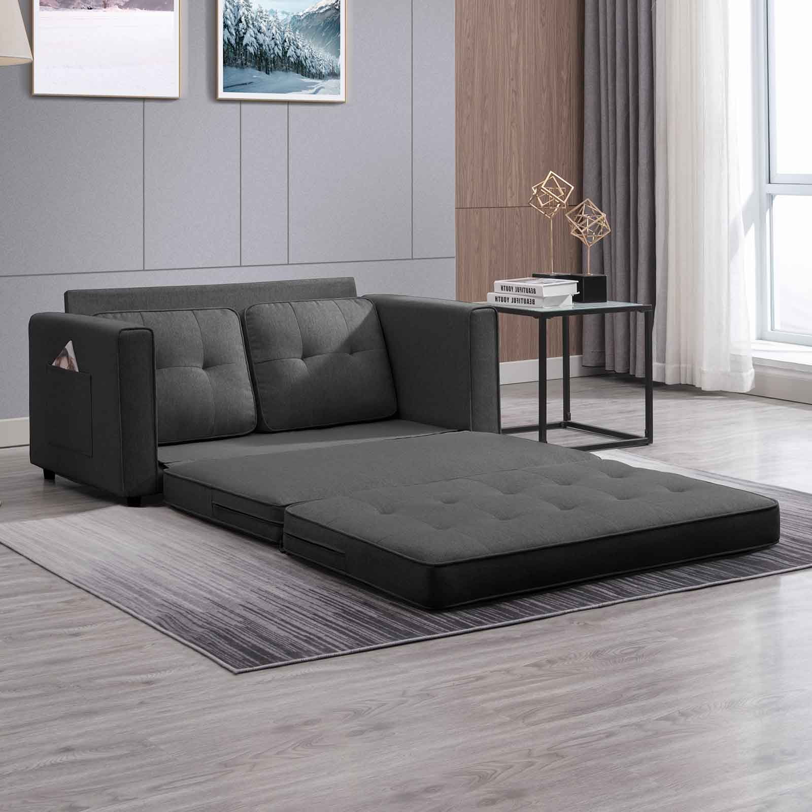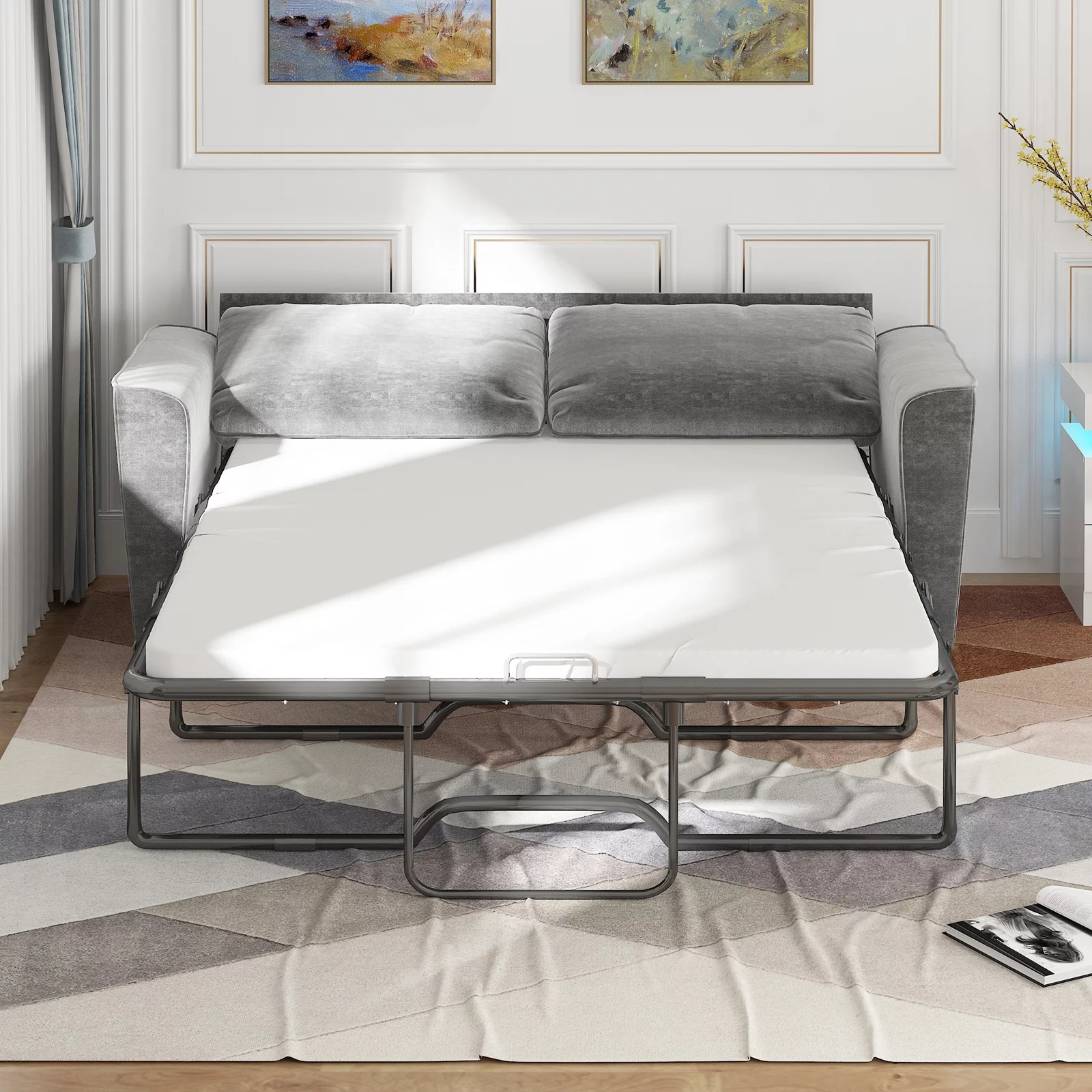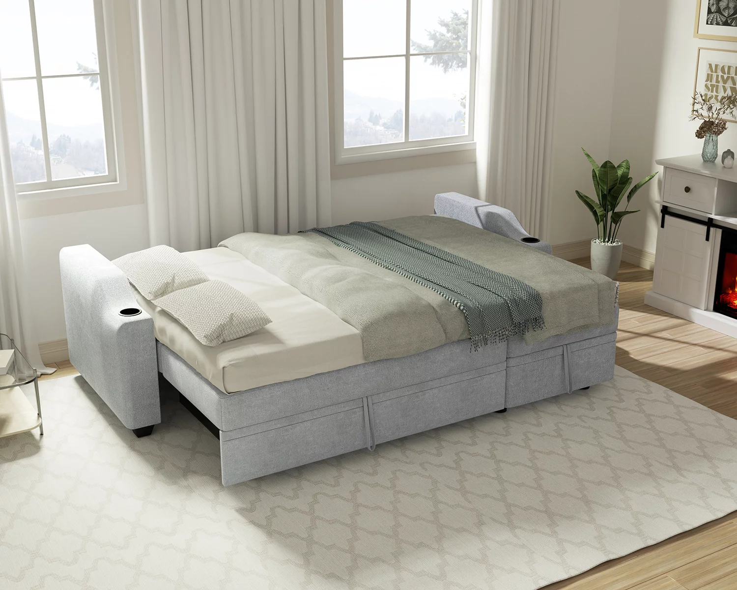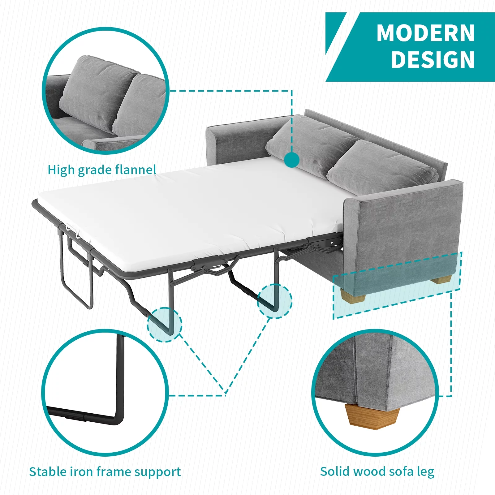 BALUS Pull-Out Sofa Bed, Convertible Sleeper Linen Bed, 2-in-1 Pull Out Couch Bed, Grey/77"W