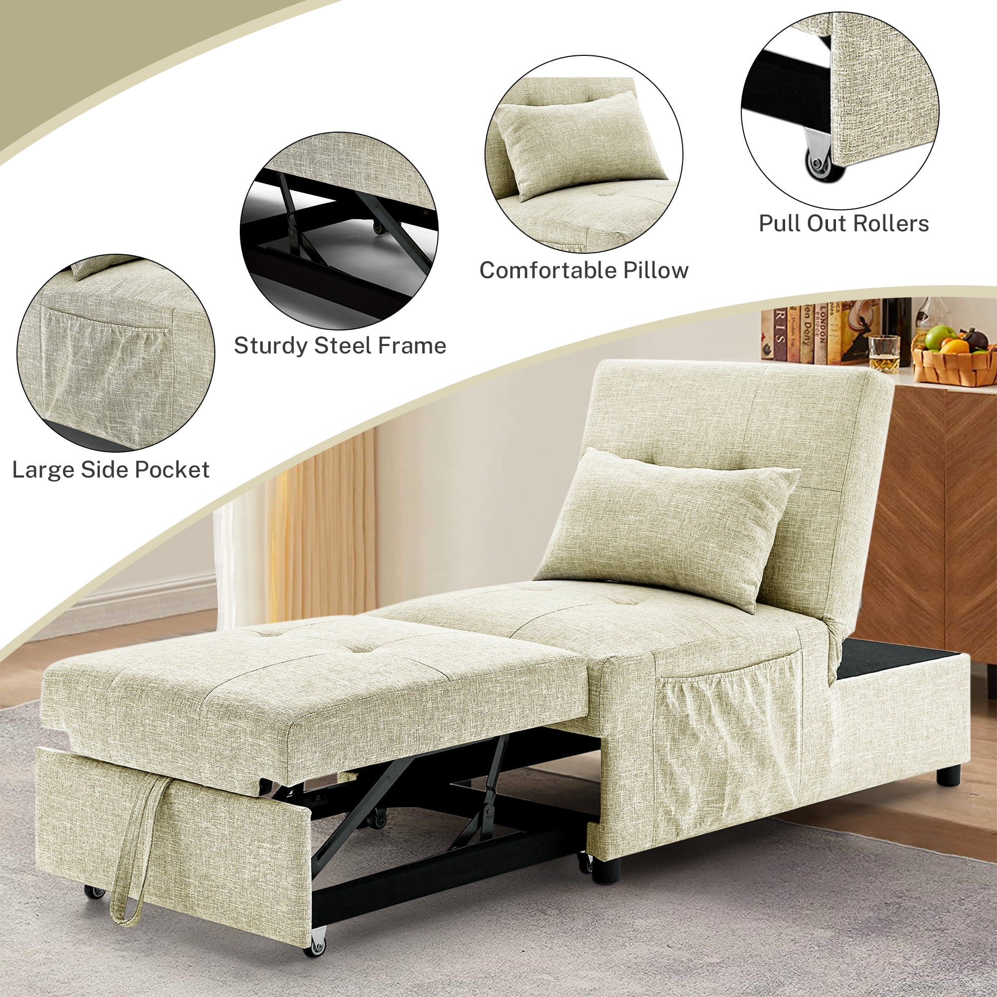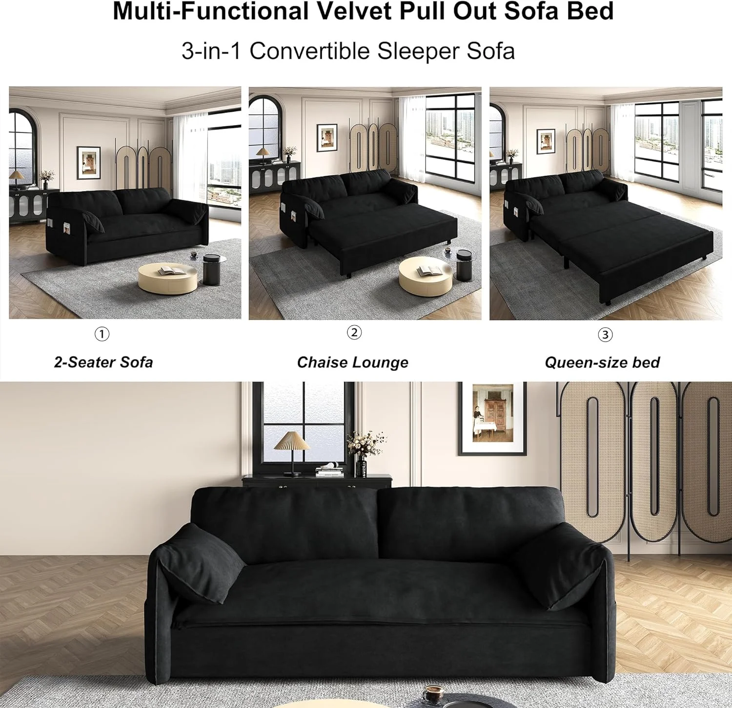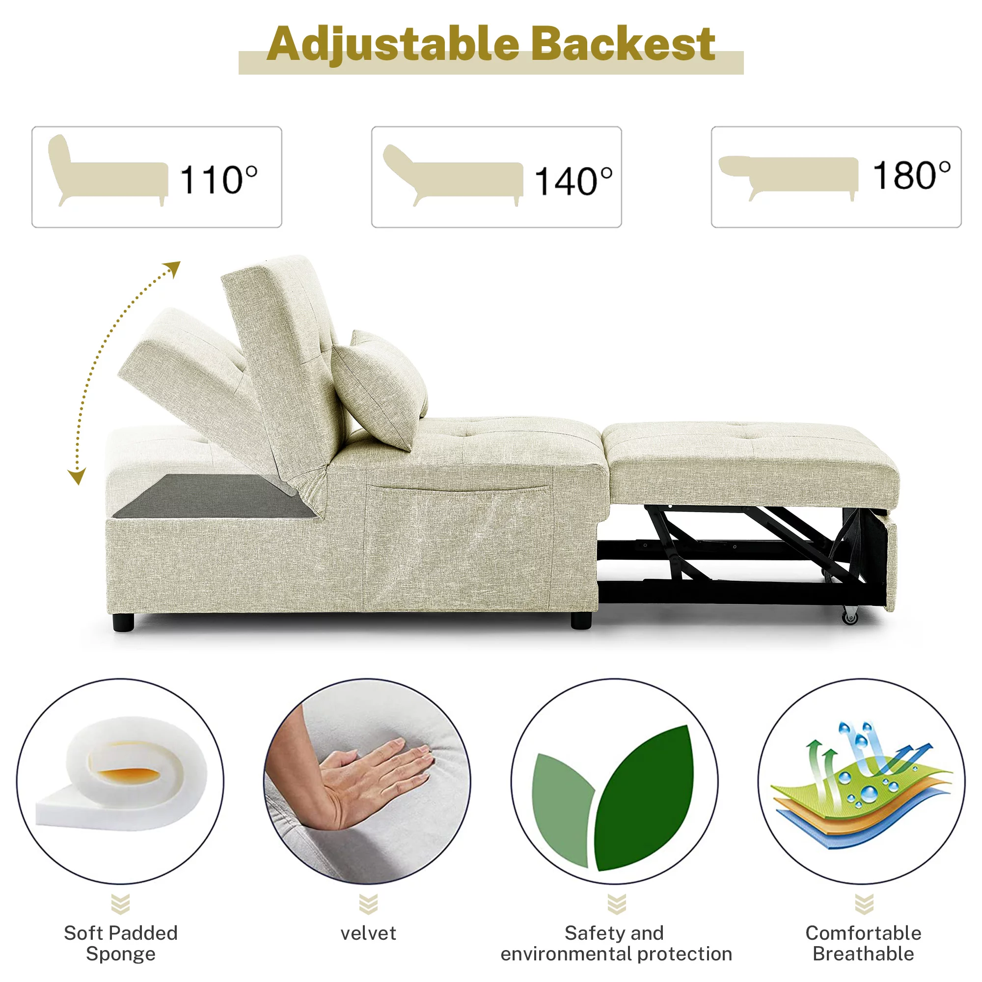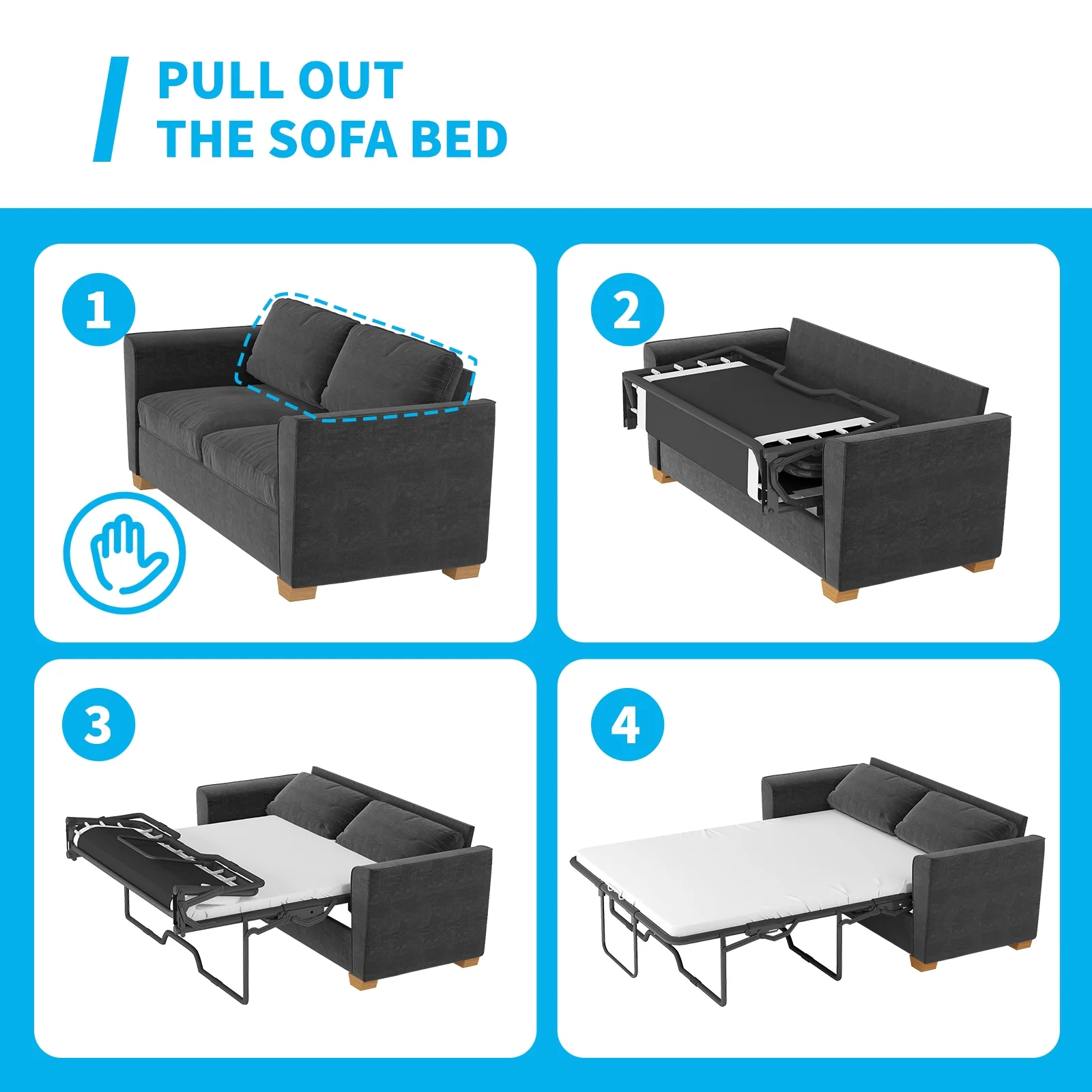 BALUS Pull-Out Sofa Bed, Convertible Sleeper Linen Bed, 2-in-1 Pull Out Couch Bed, Grey/77"W