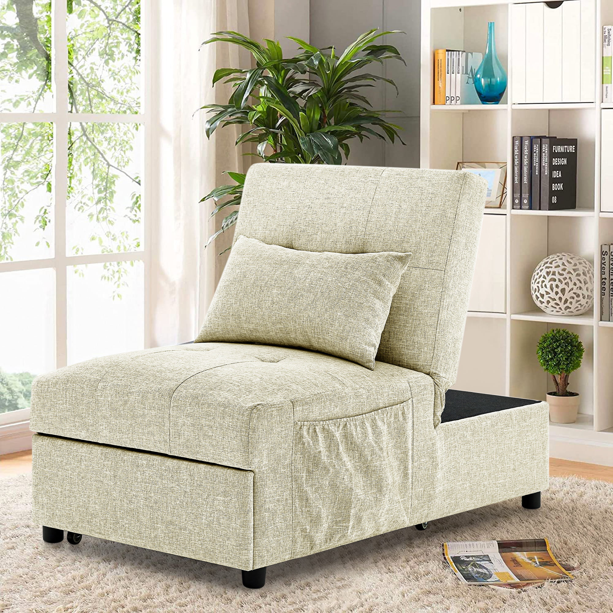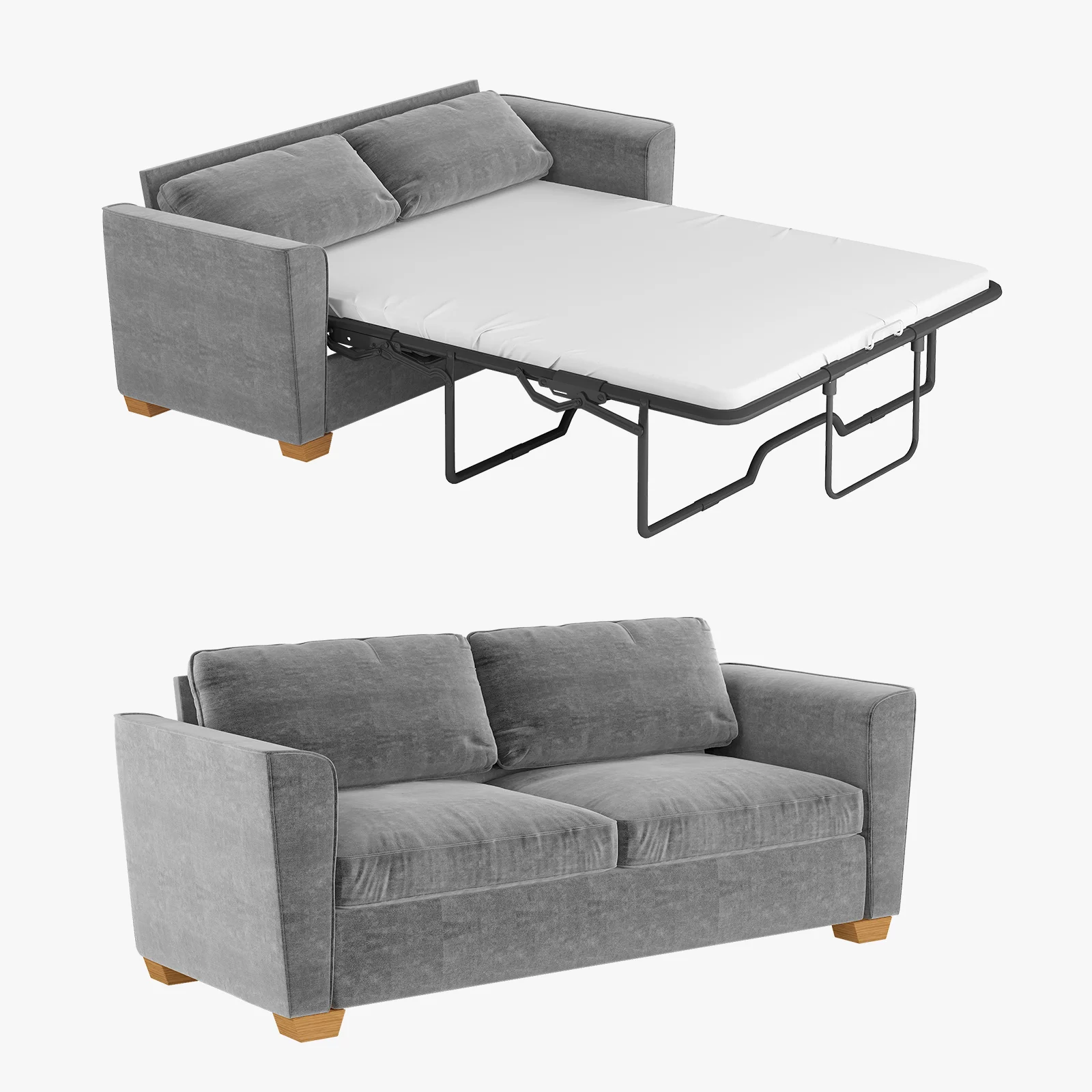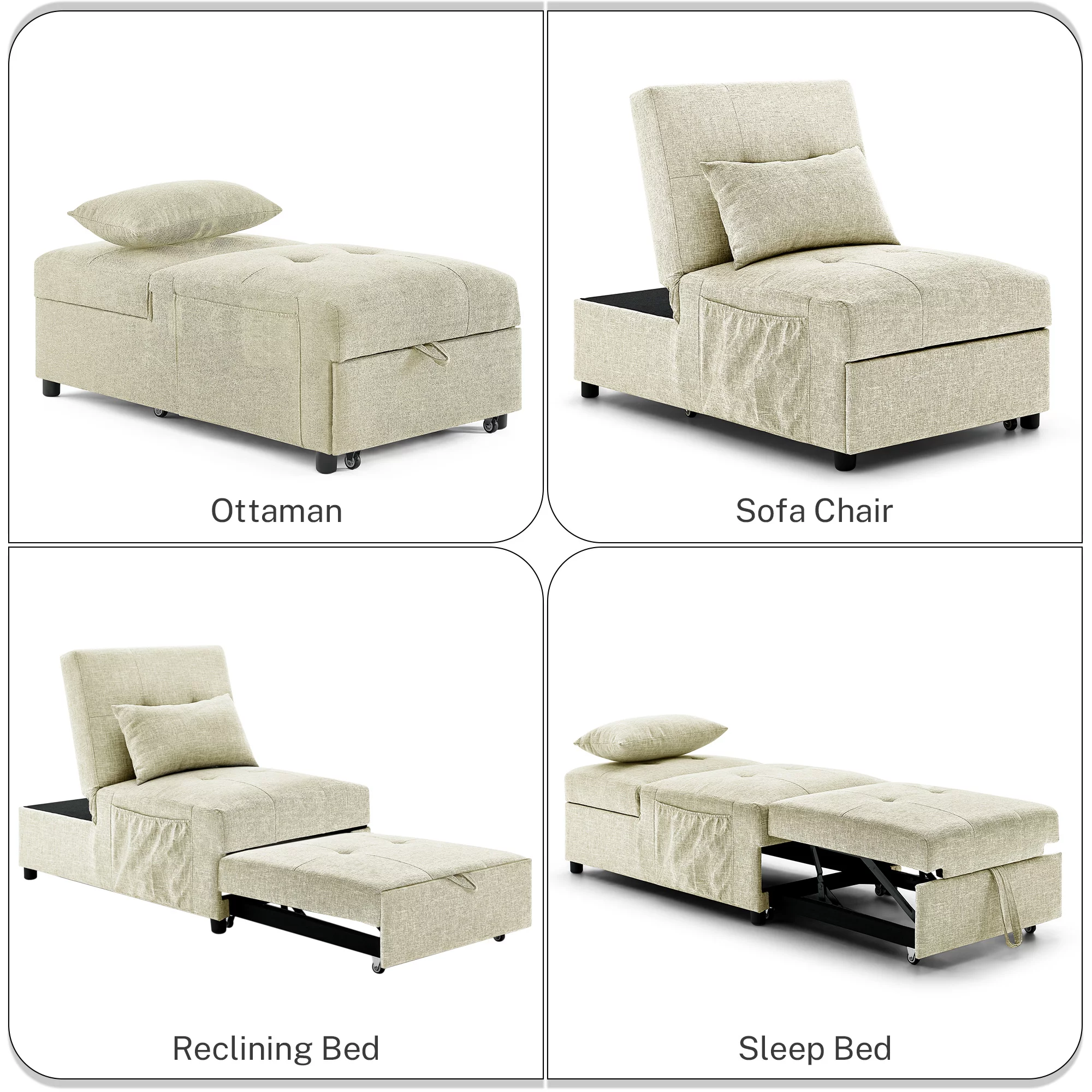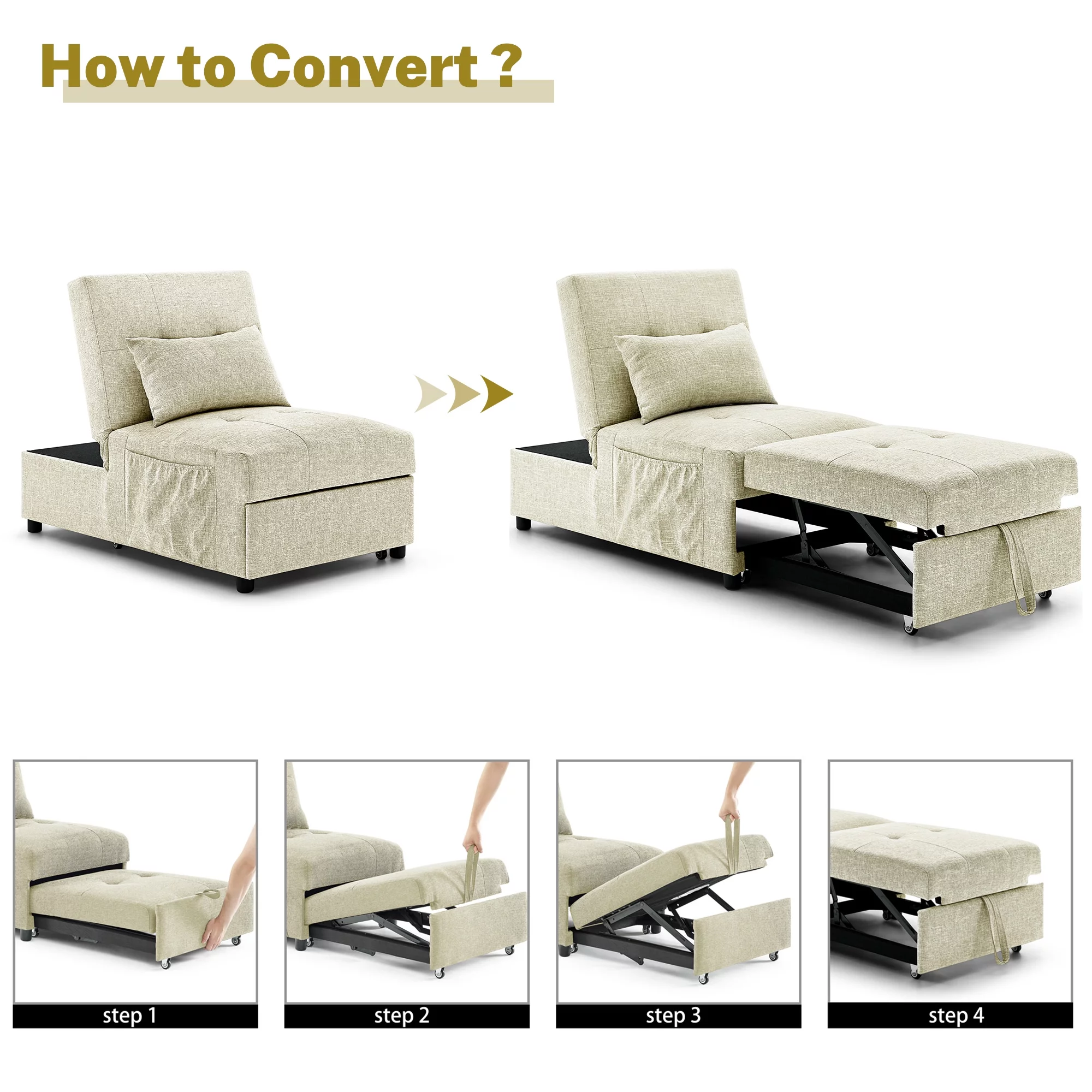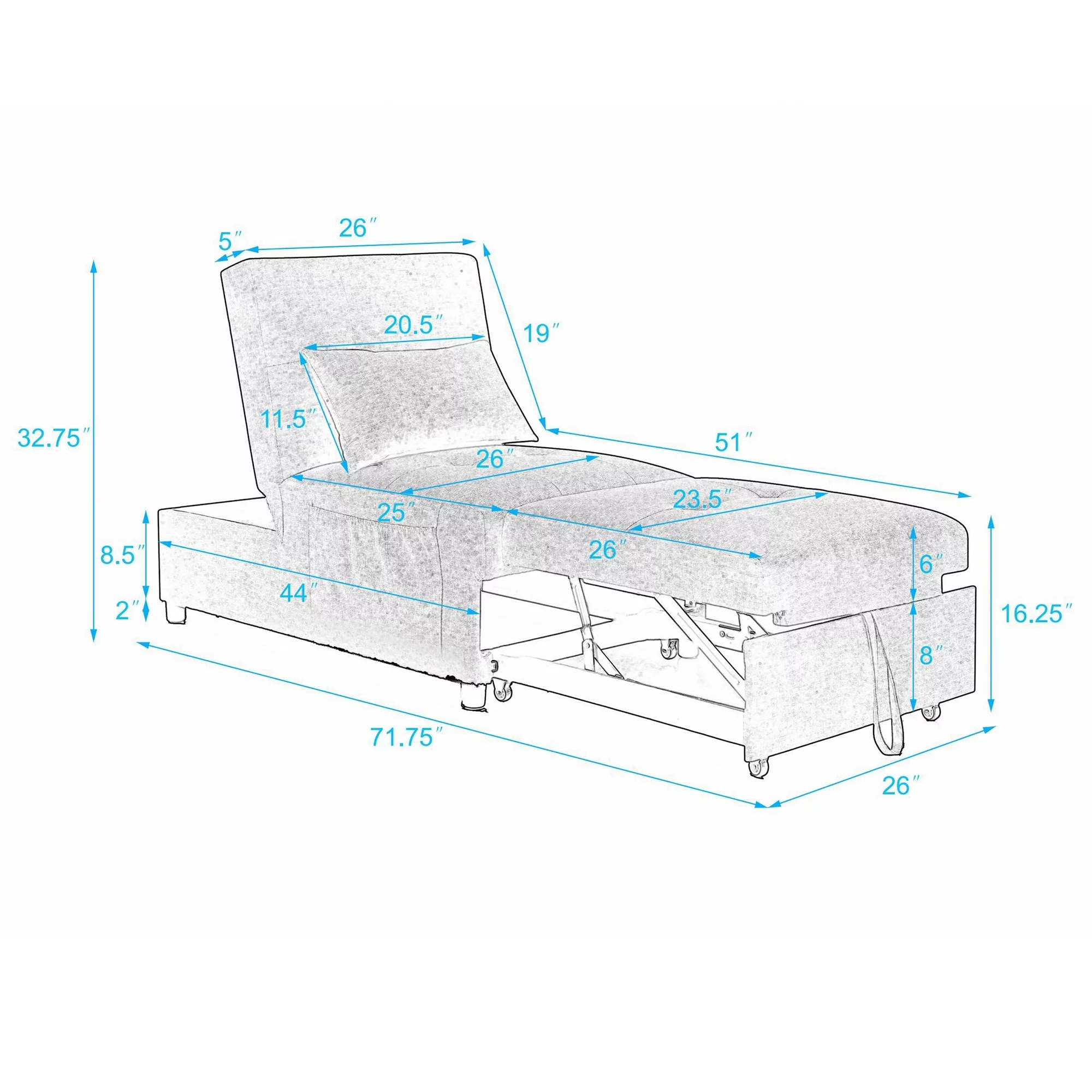 BALUS Pull-Out Sofa Bed, Convertible Sleeper Linen Bed, 2-in-1 Pull Out Couch Bed, Grey/77"W
