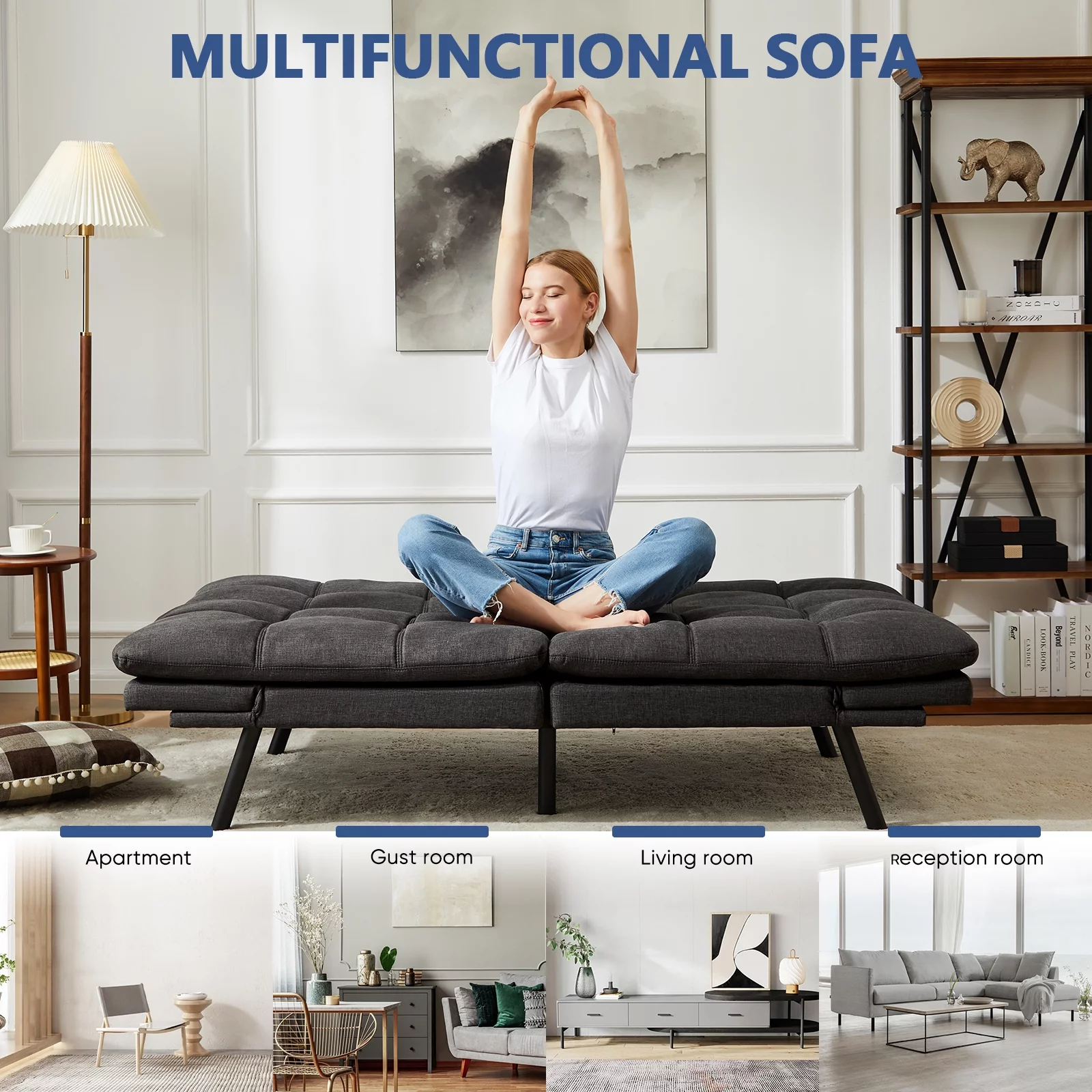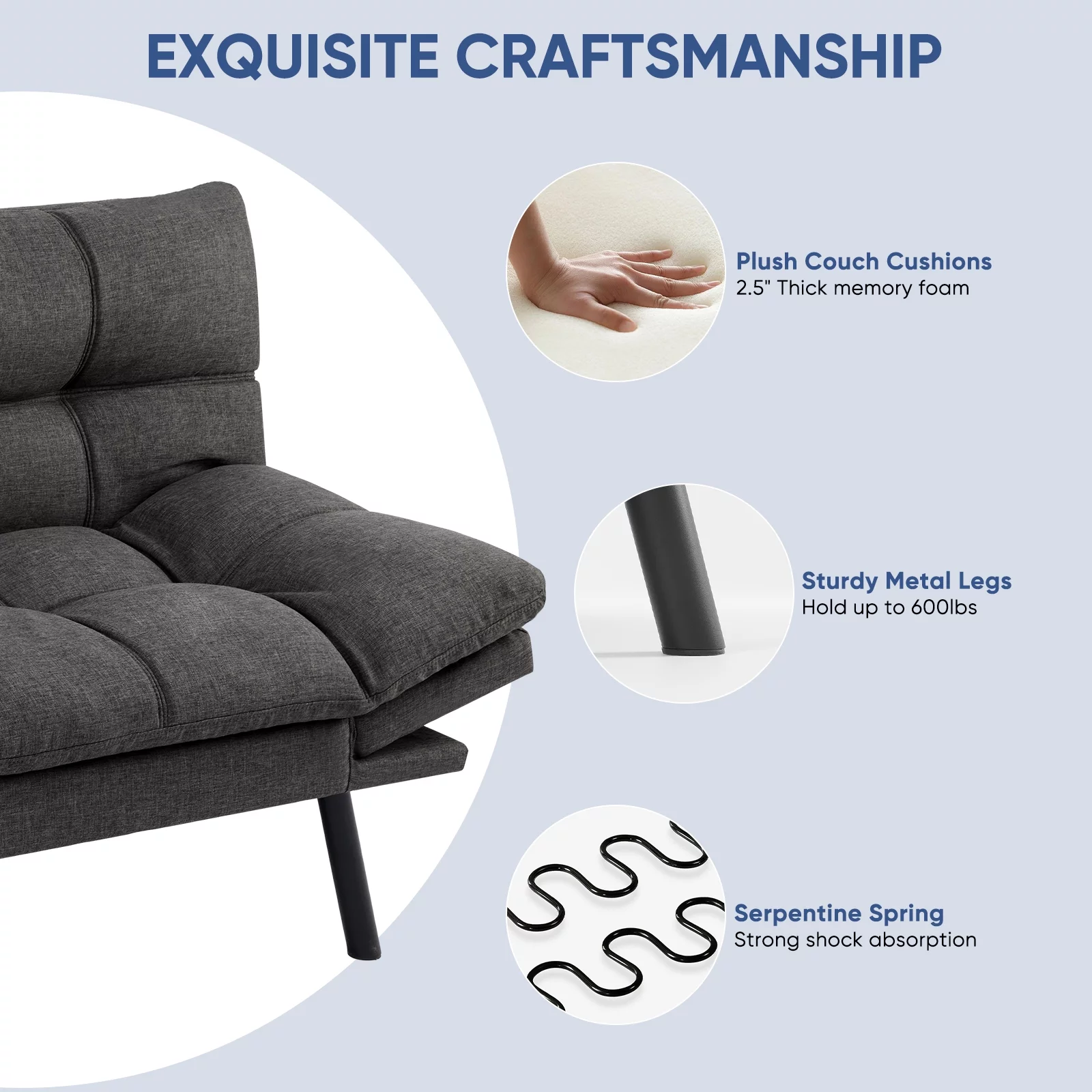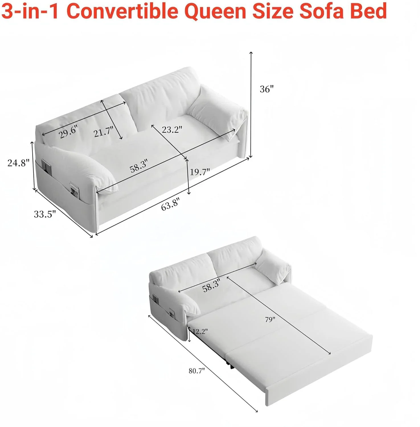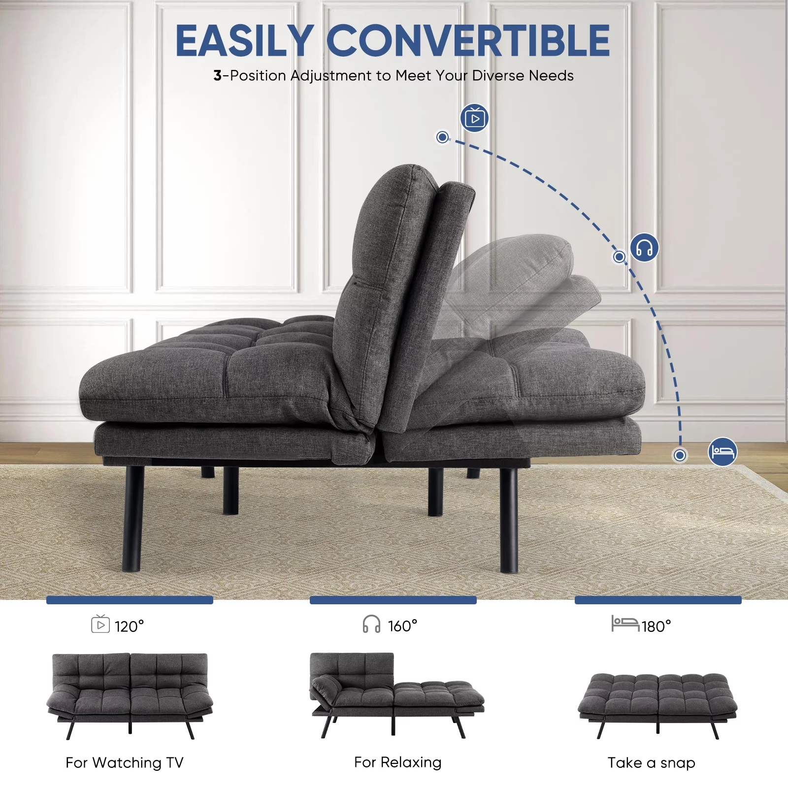 BALUS 61"W Convertible Sofa Bed, Queen Daybed, Linen Fabric Couch, Upholstered Loveseat Sleeper, Light Gray