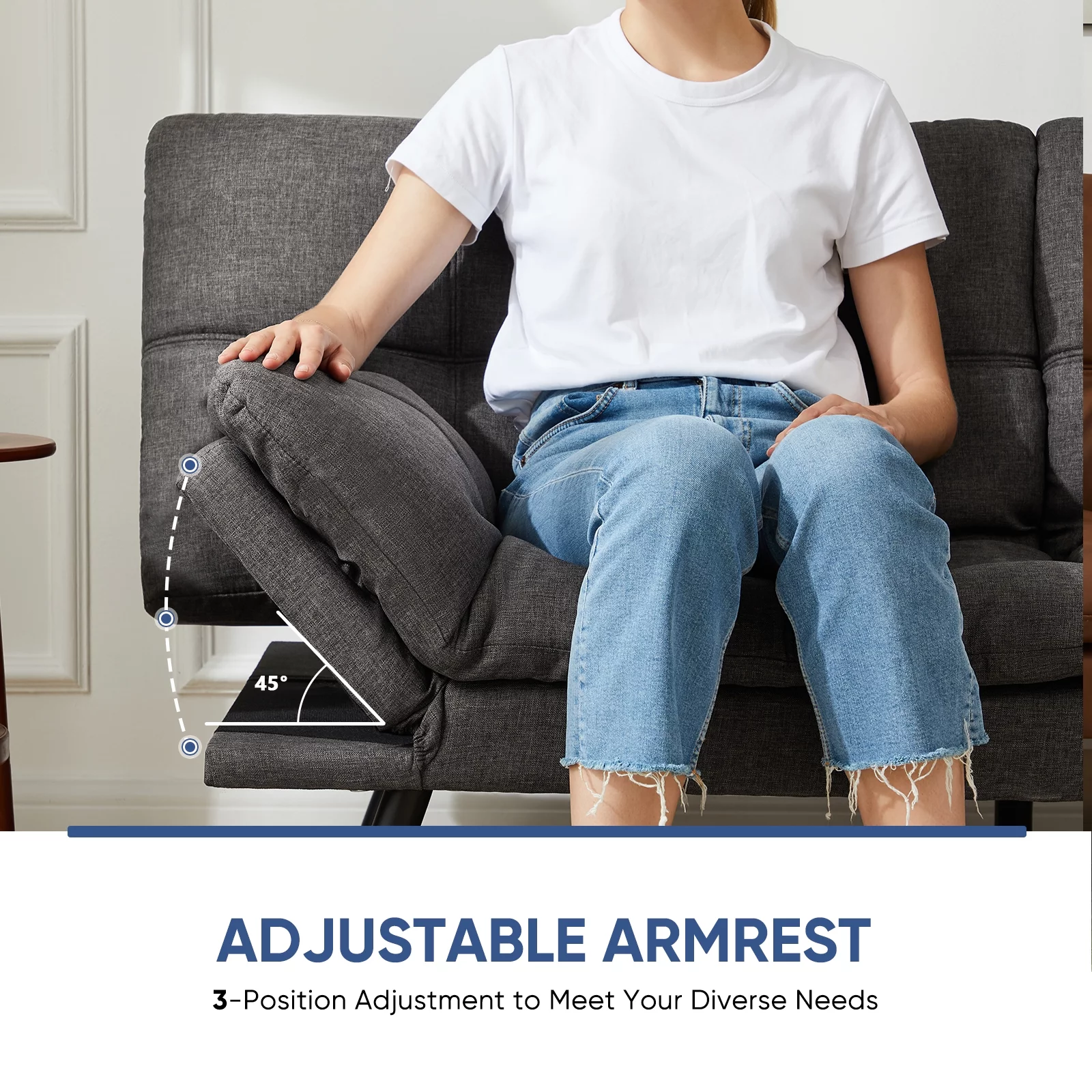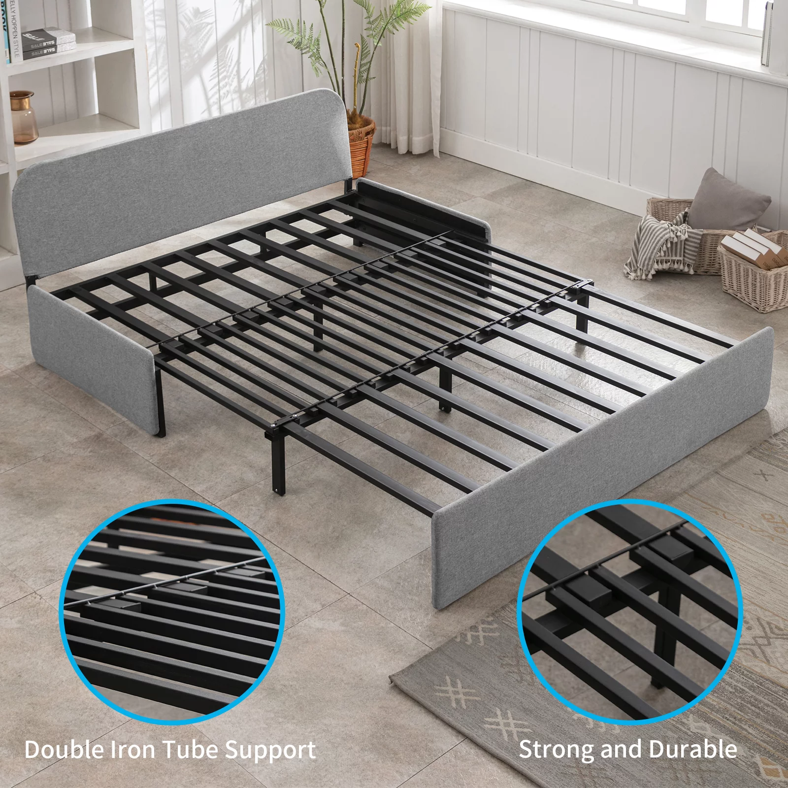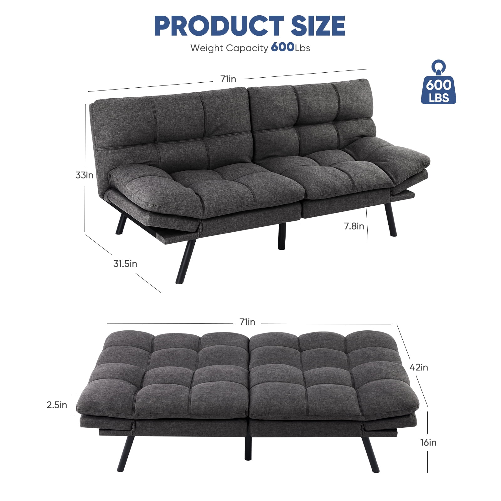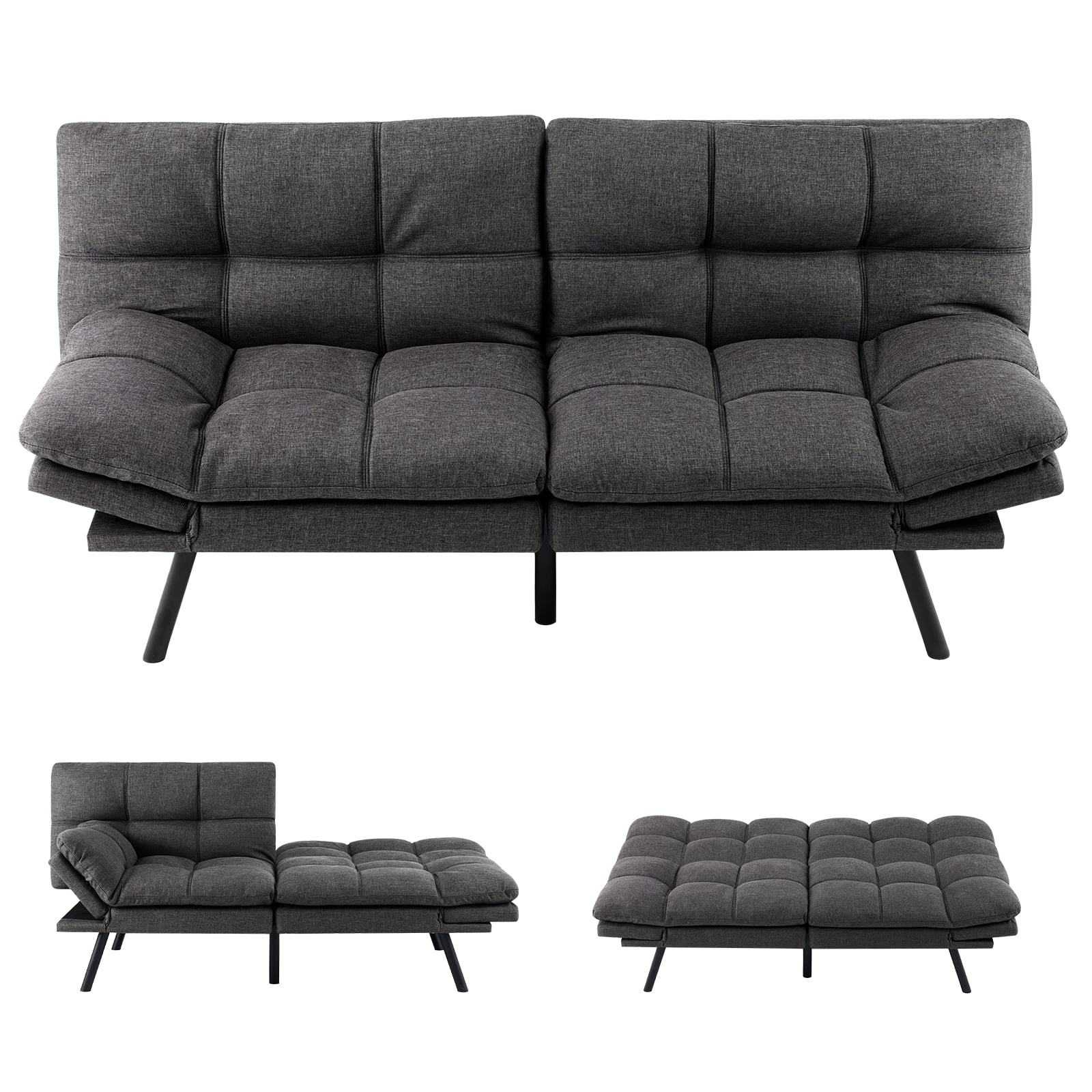 BALUS 61"W Convertible Sofa Bed, Queen Daybed, Linen Fabric Couch, Upholstered Loveseat Sleeper, Light Gray