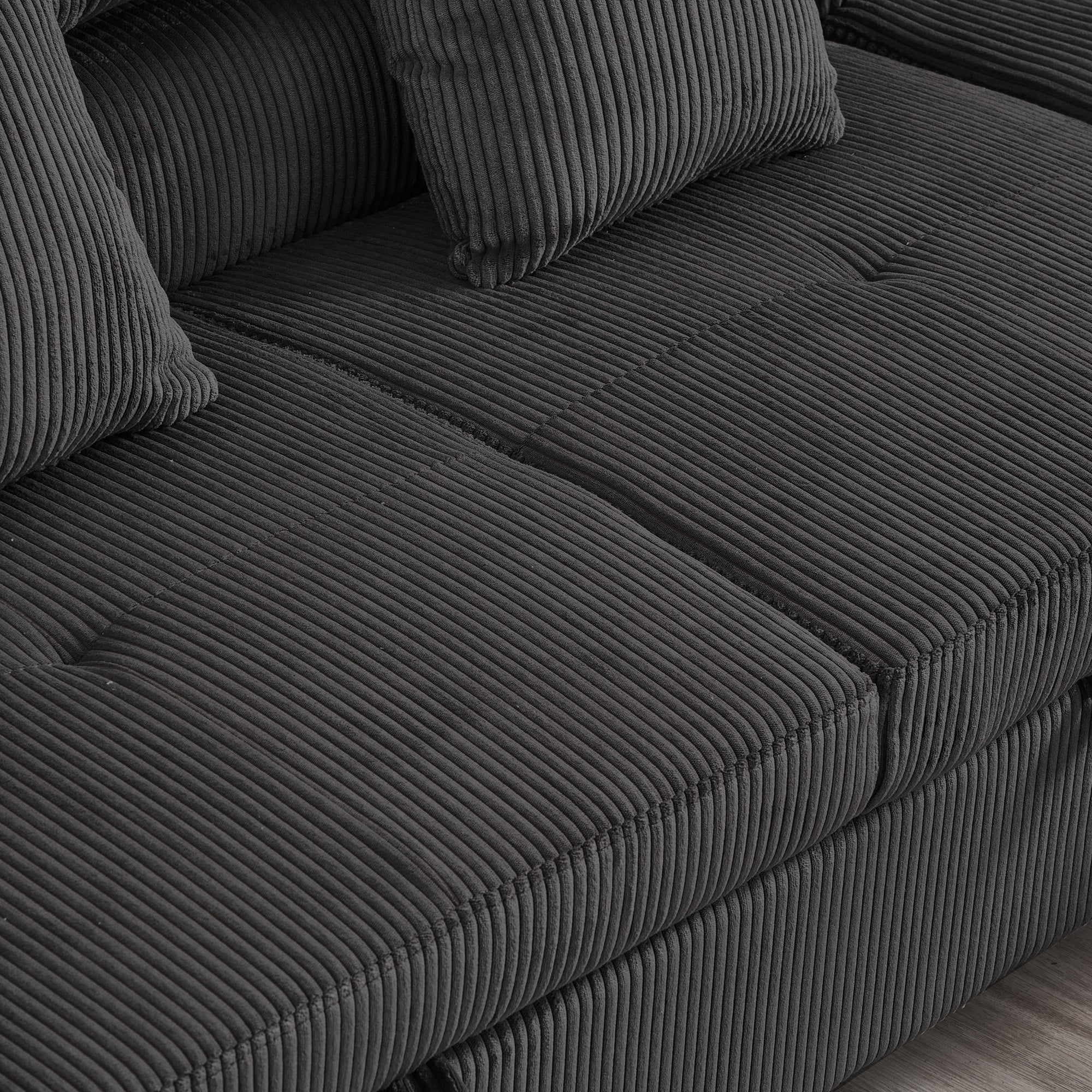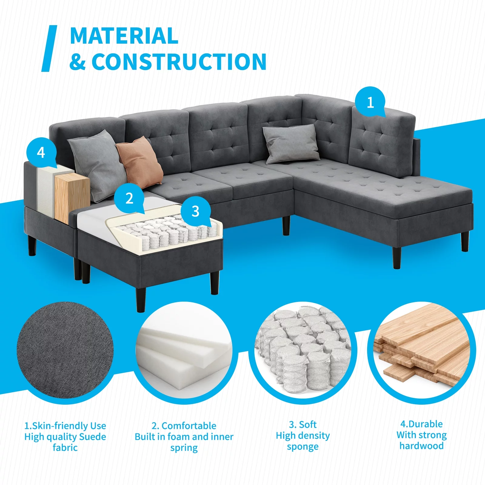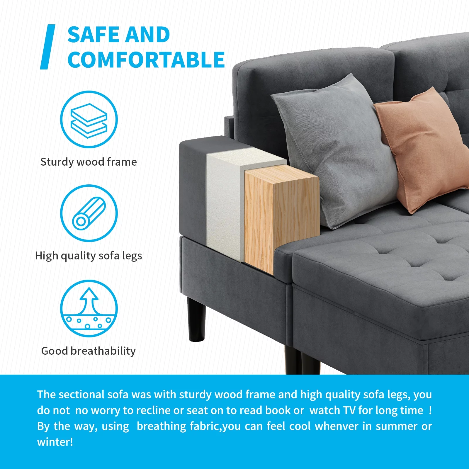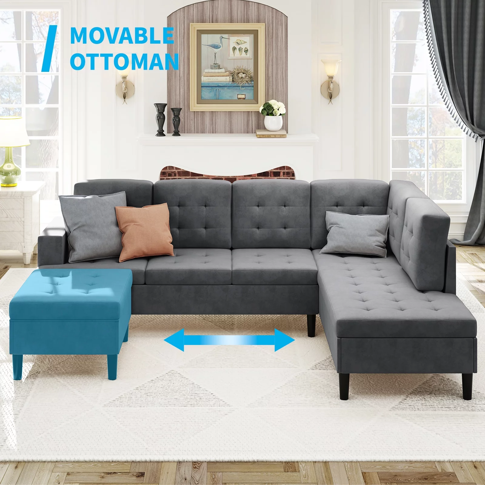 MUZZ Upholstered L-Shape Sectional Sofa,Sleeper Couch with Movable Ottoman for Living Room(Dark Grey)