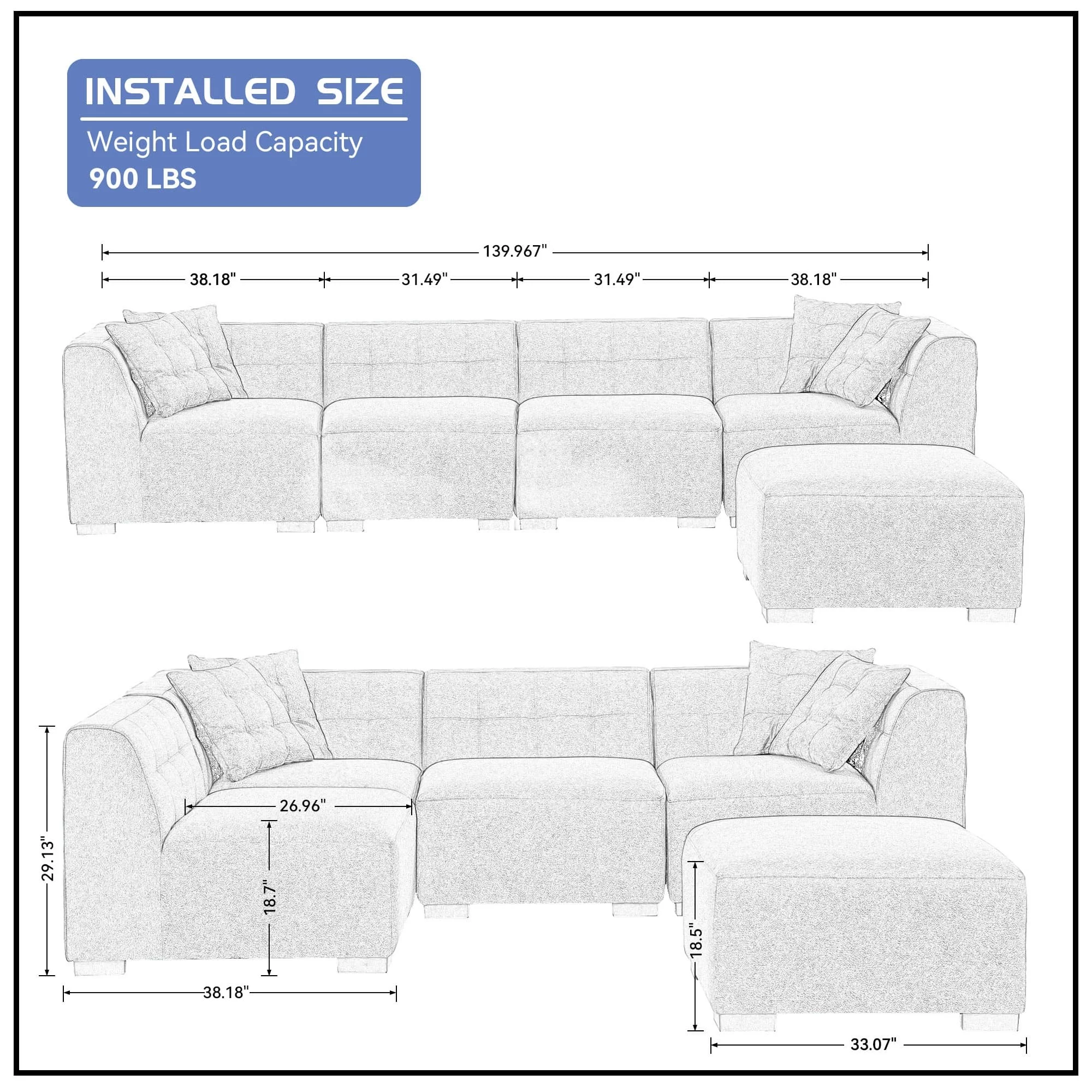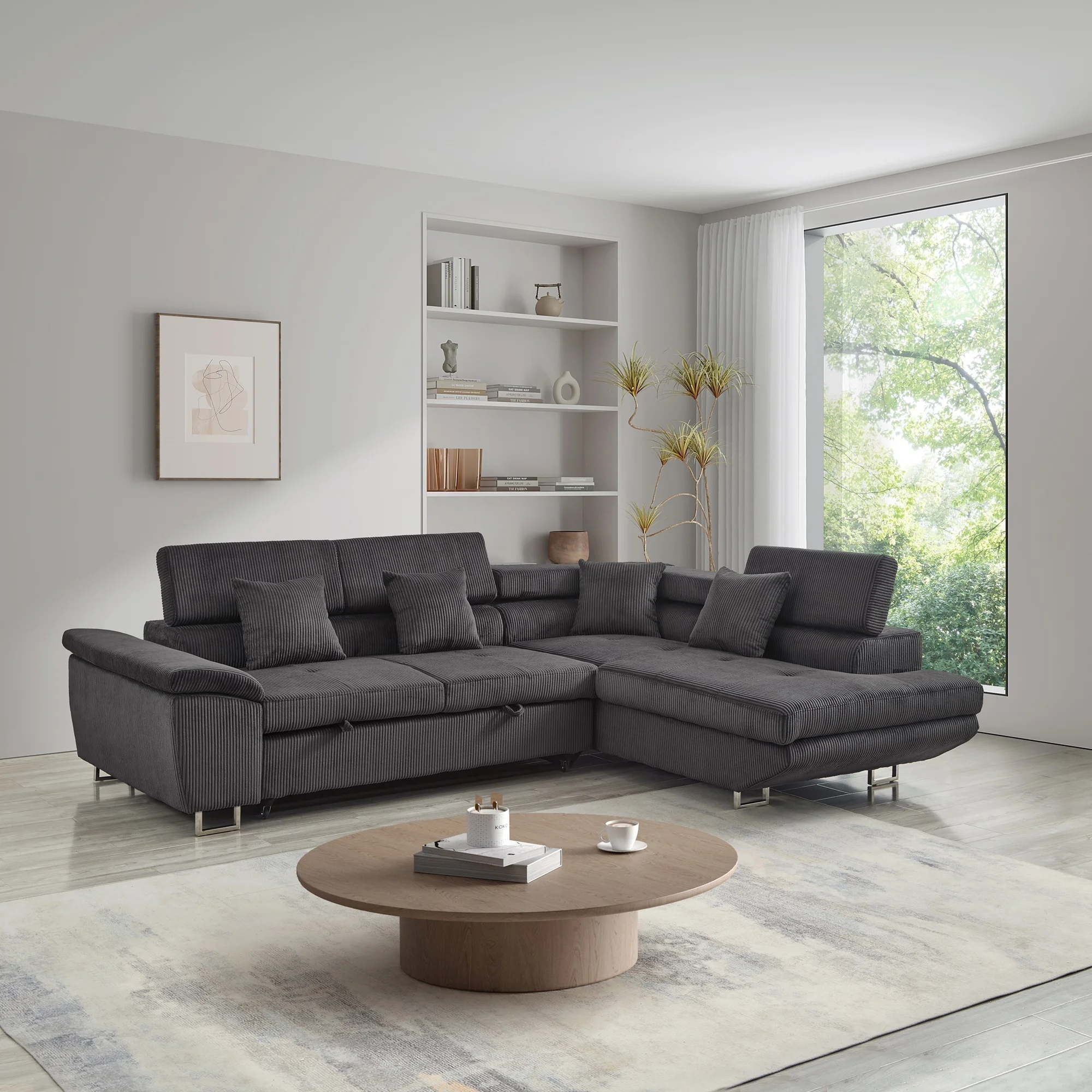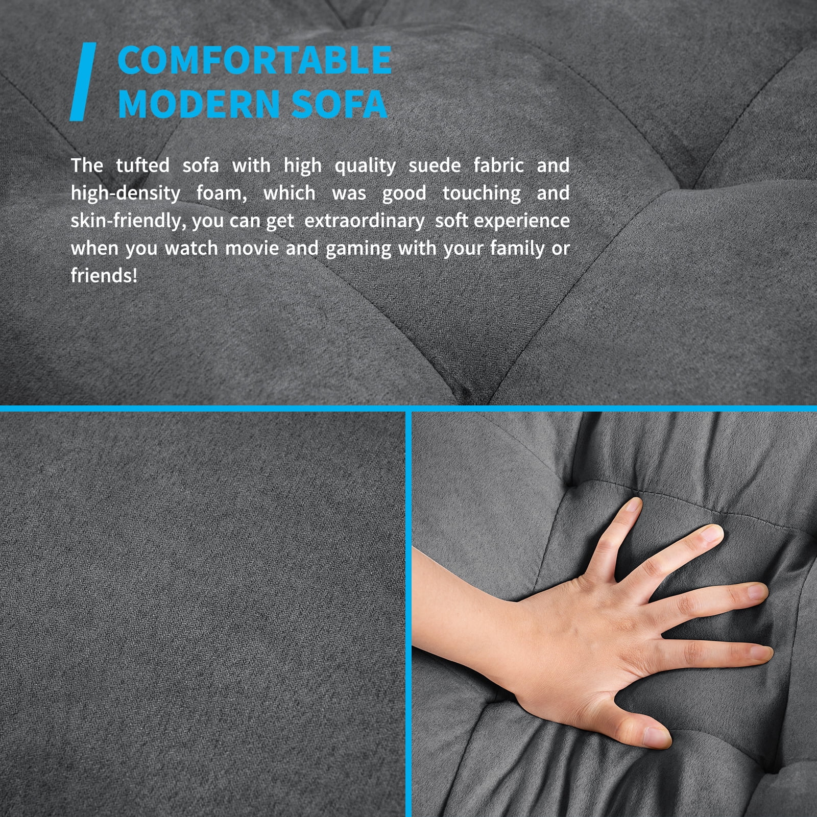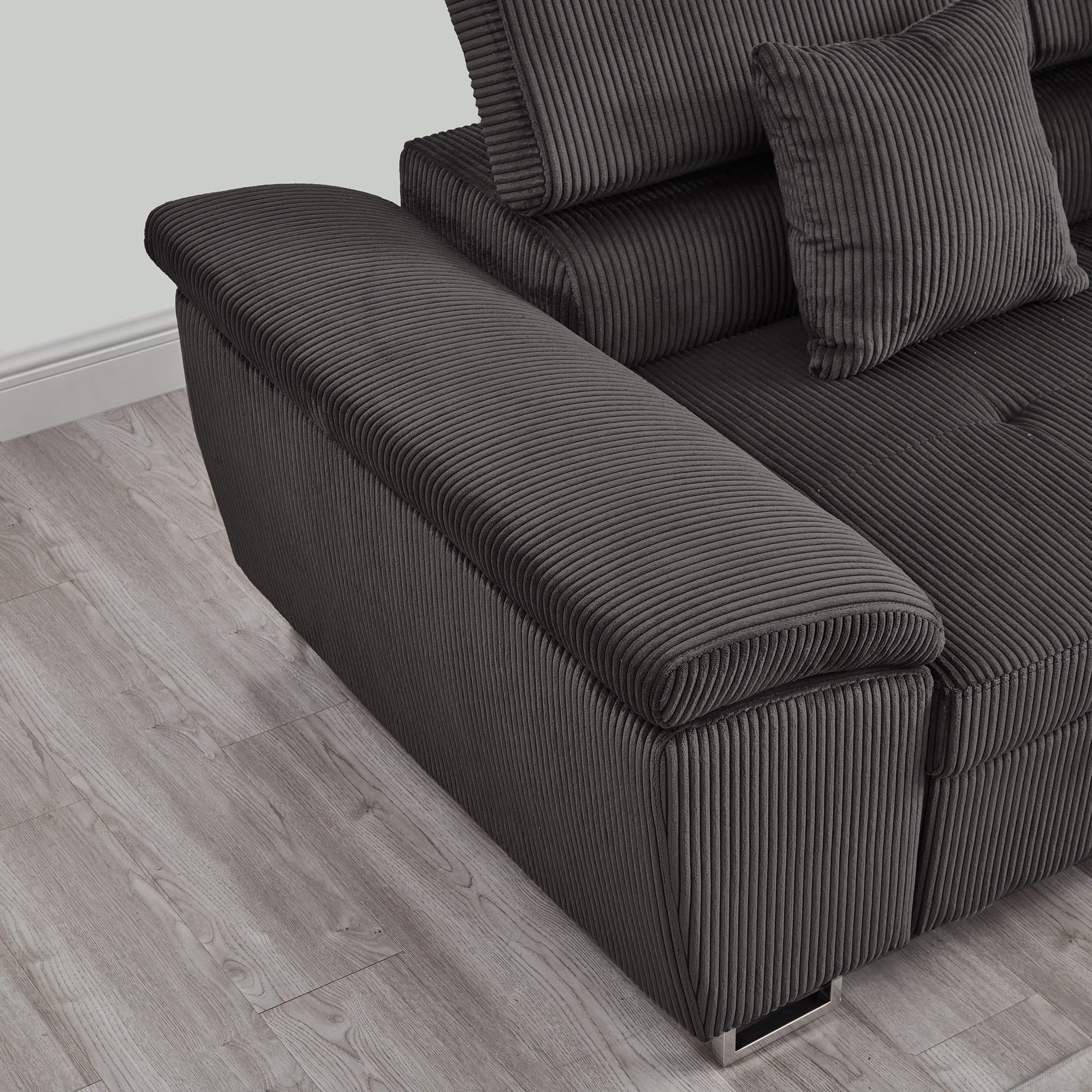 MUZZ Upholstered L-Shape Sectional Sofa,Sleeper Couch with Movable Ottoman for Living Room(Dark Grey)
