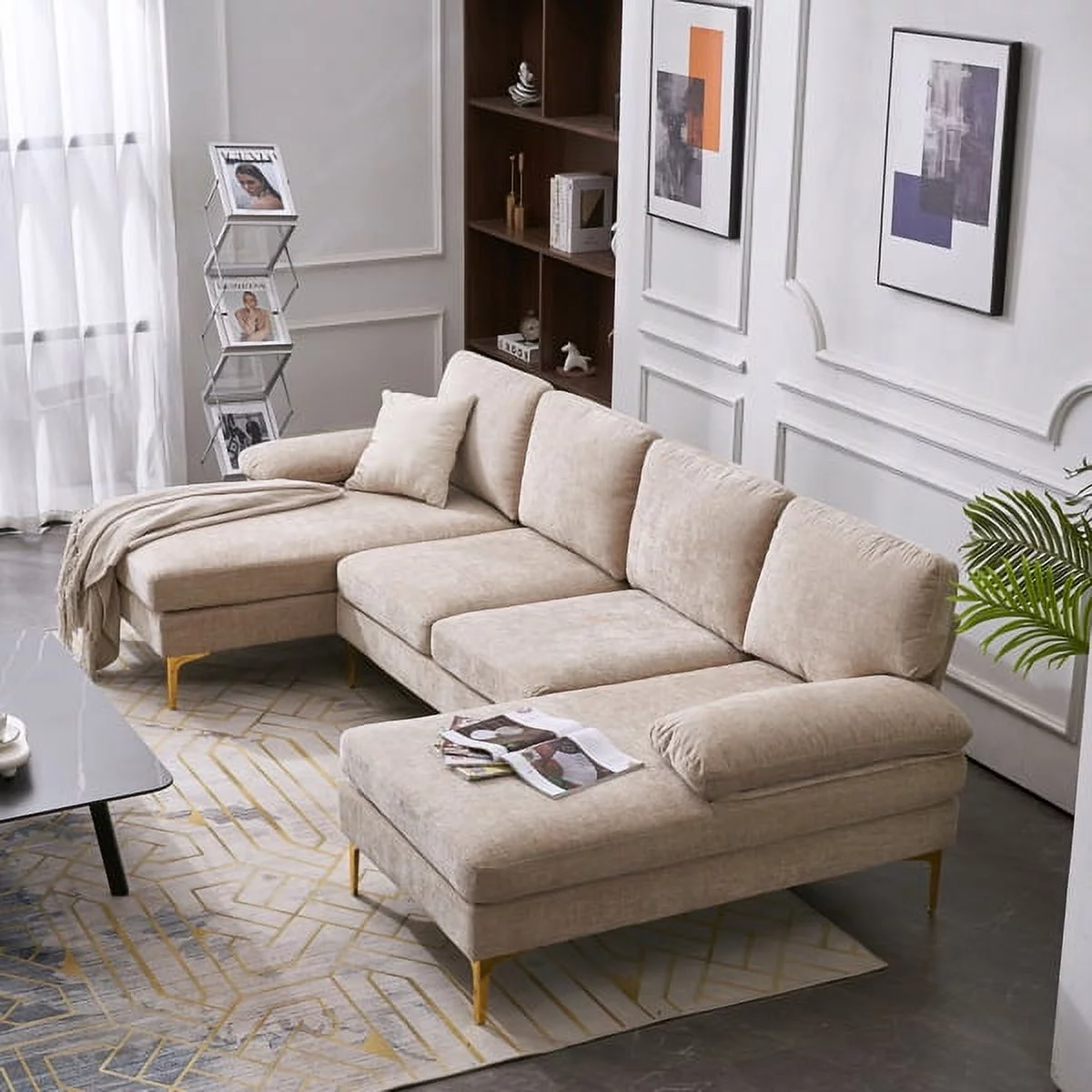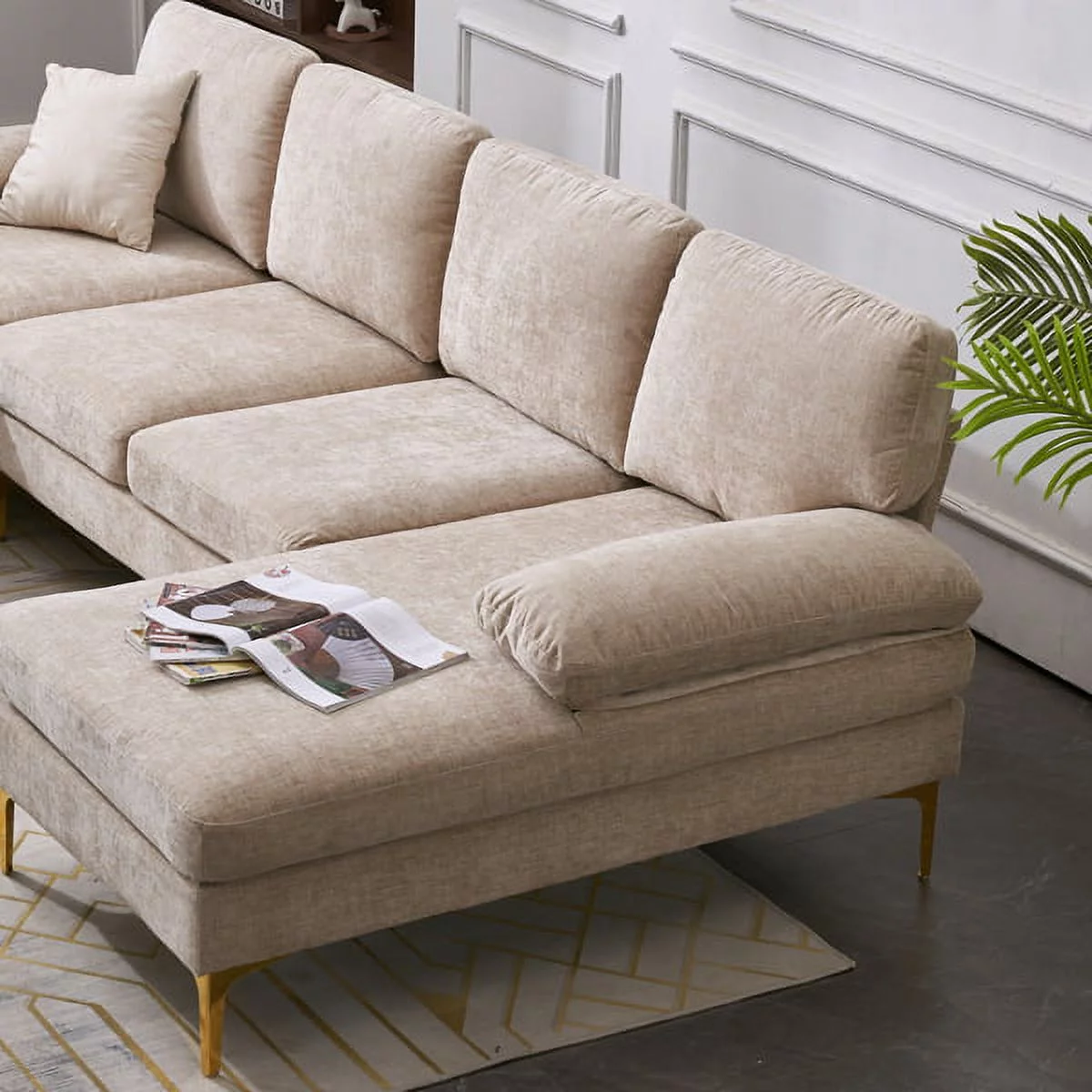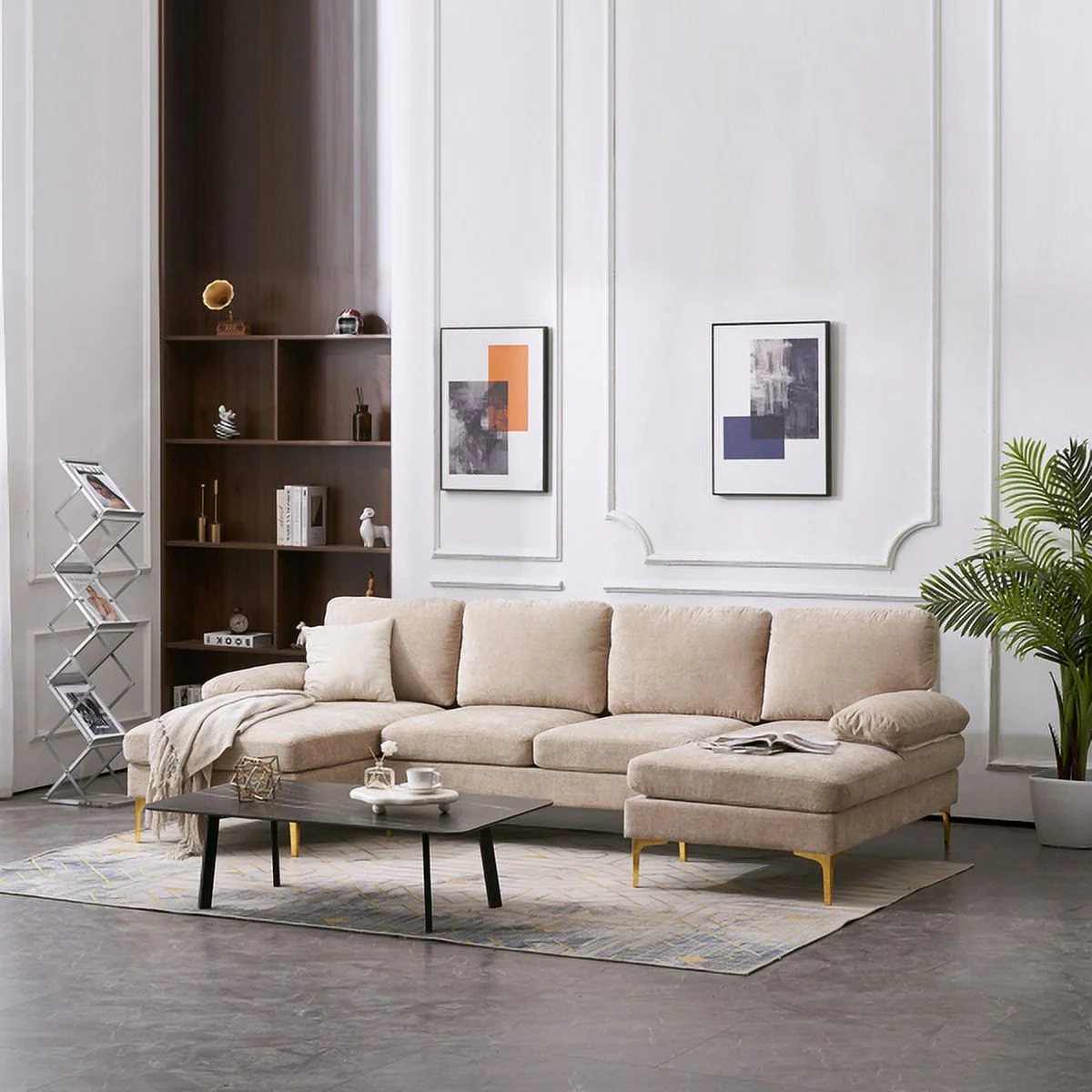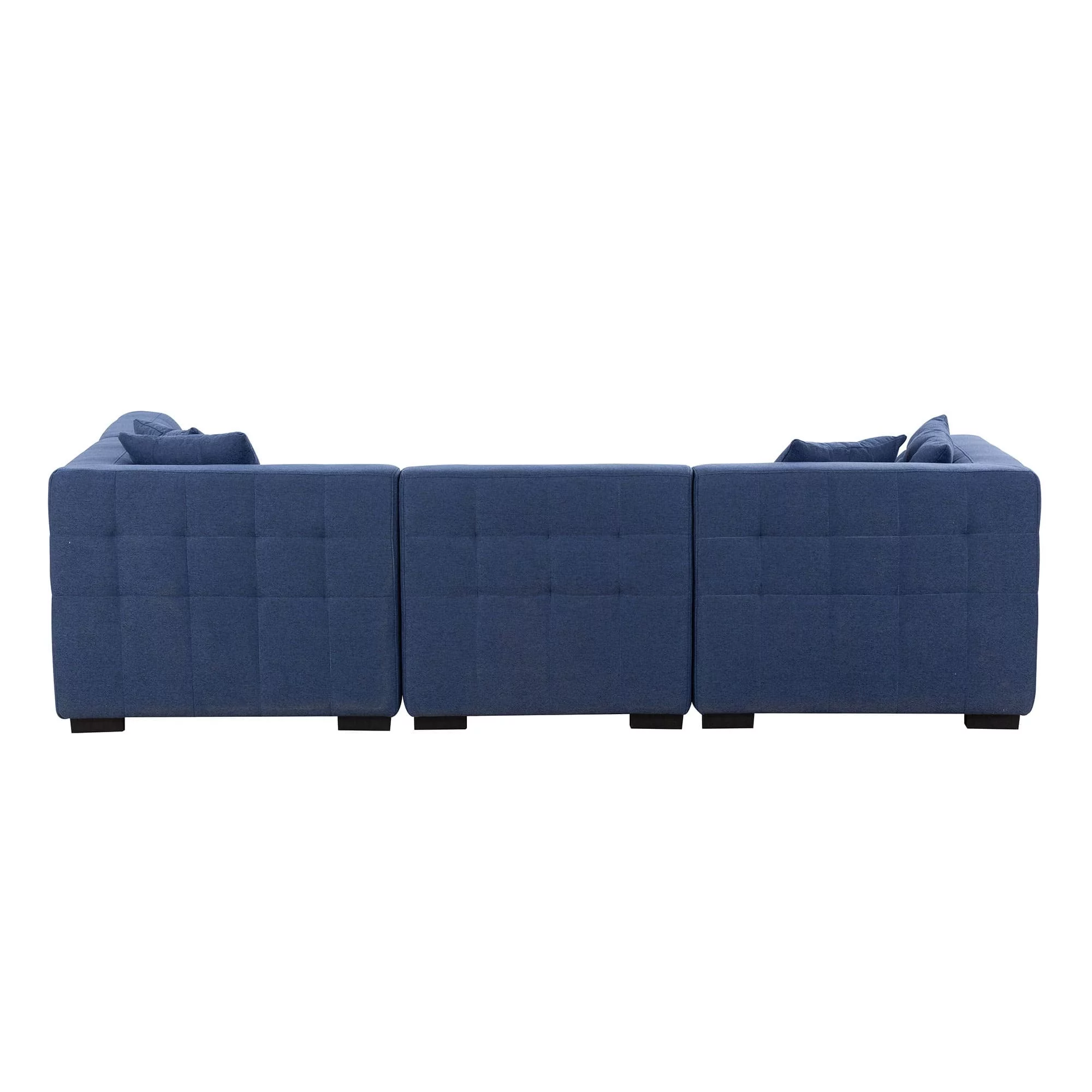 Kevinplus Convertible Sectional Sofa Fabric Couch with Chaise Reversible Corner Couch Furniture L-Shaped 5 Seater Sofas Bluish